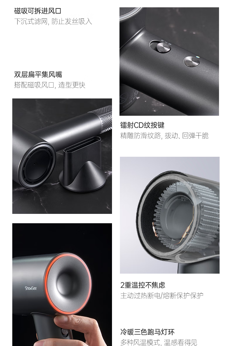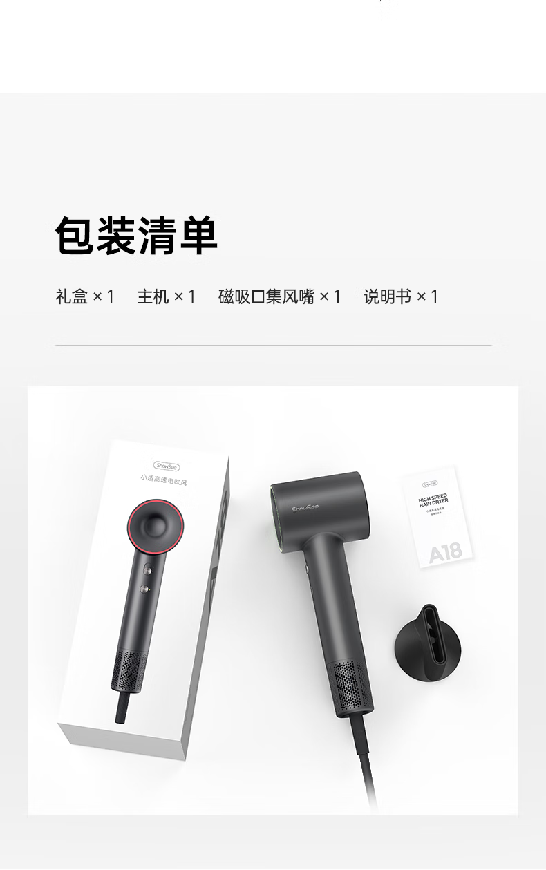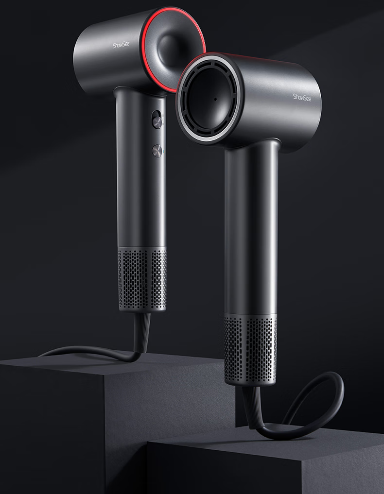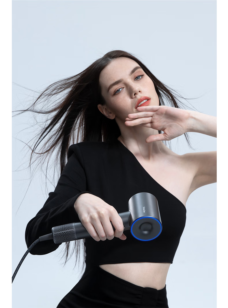 Showsee 110,000 rpm high-speed motor hair dryer household hair dryer high-power high-concentration negative ion hair care strong wind speed drying noise reduction leafless hair dryer gift for wife and girlfriend A18-GY space gray
