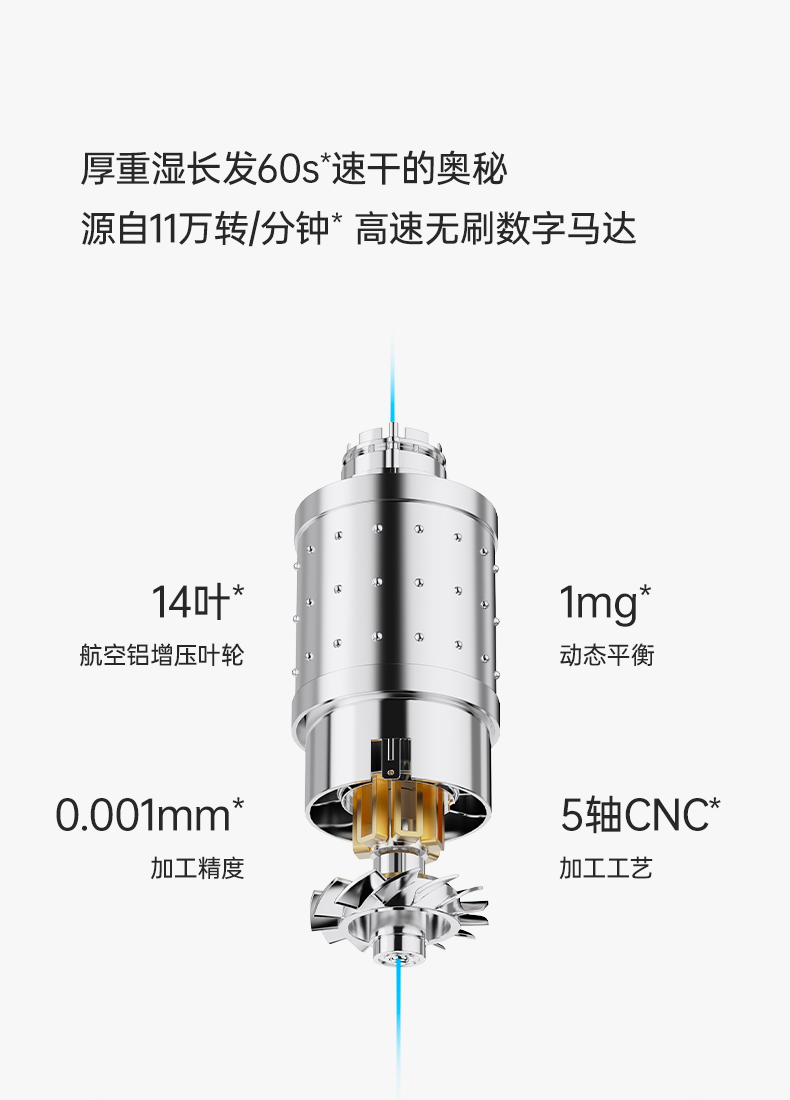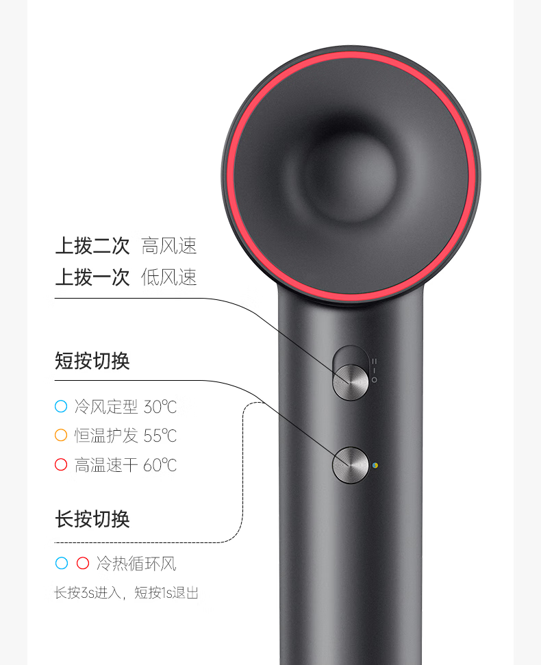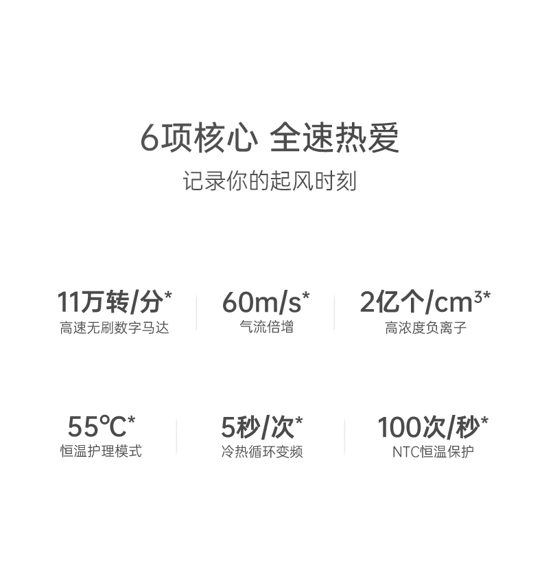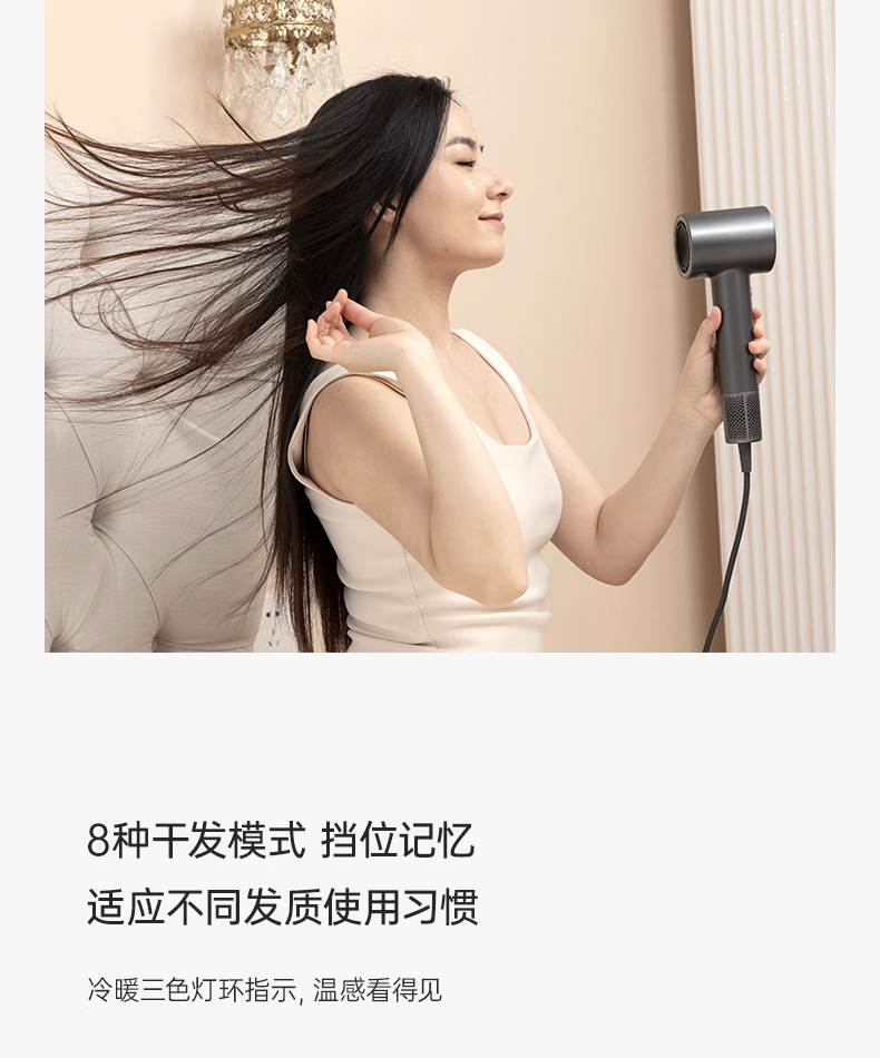 Showsee 110,000 rpm high-speed motor hair dryer household hair dryer high-power high-concentration negative ion hair care strong wind speed drying noise reduction leafless hair dryer gift for wife and girlfriend A18-GY space gray