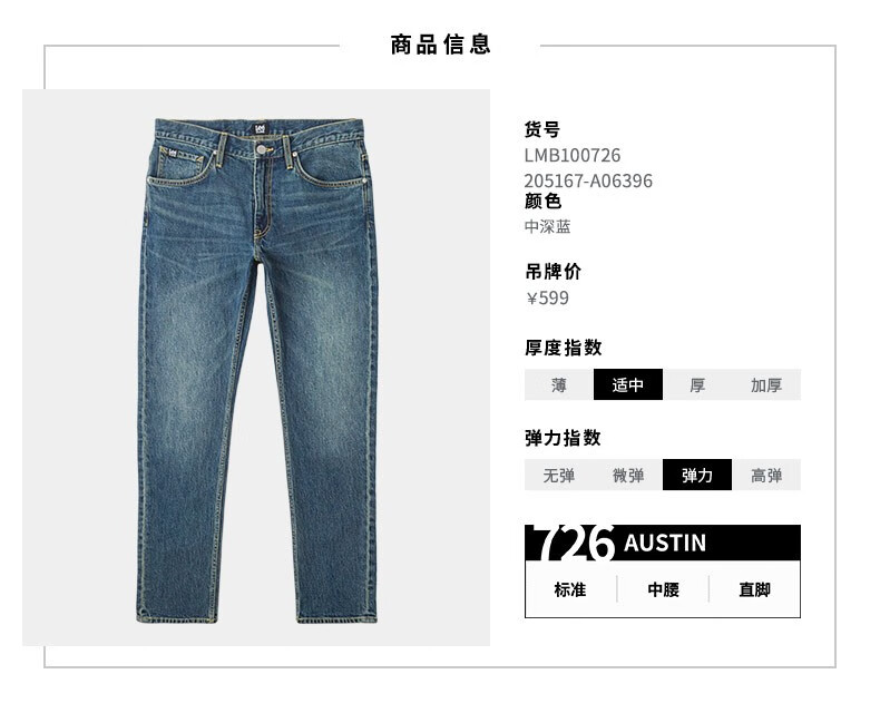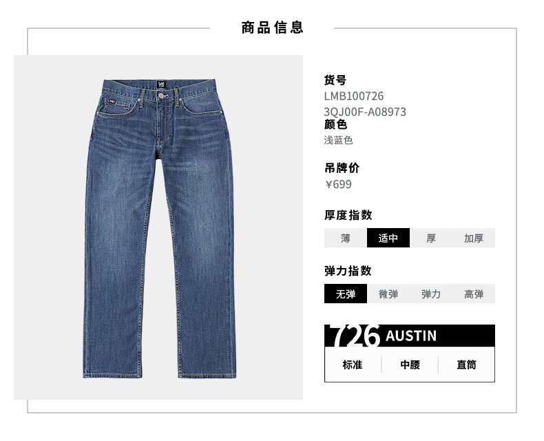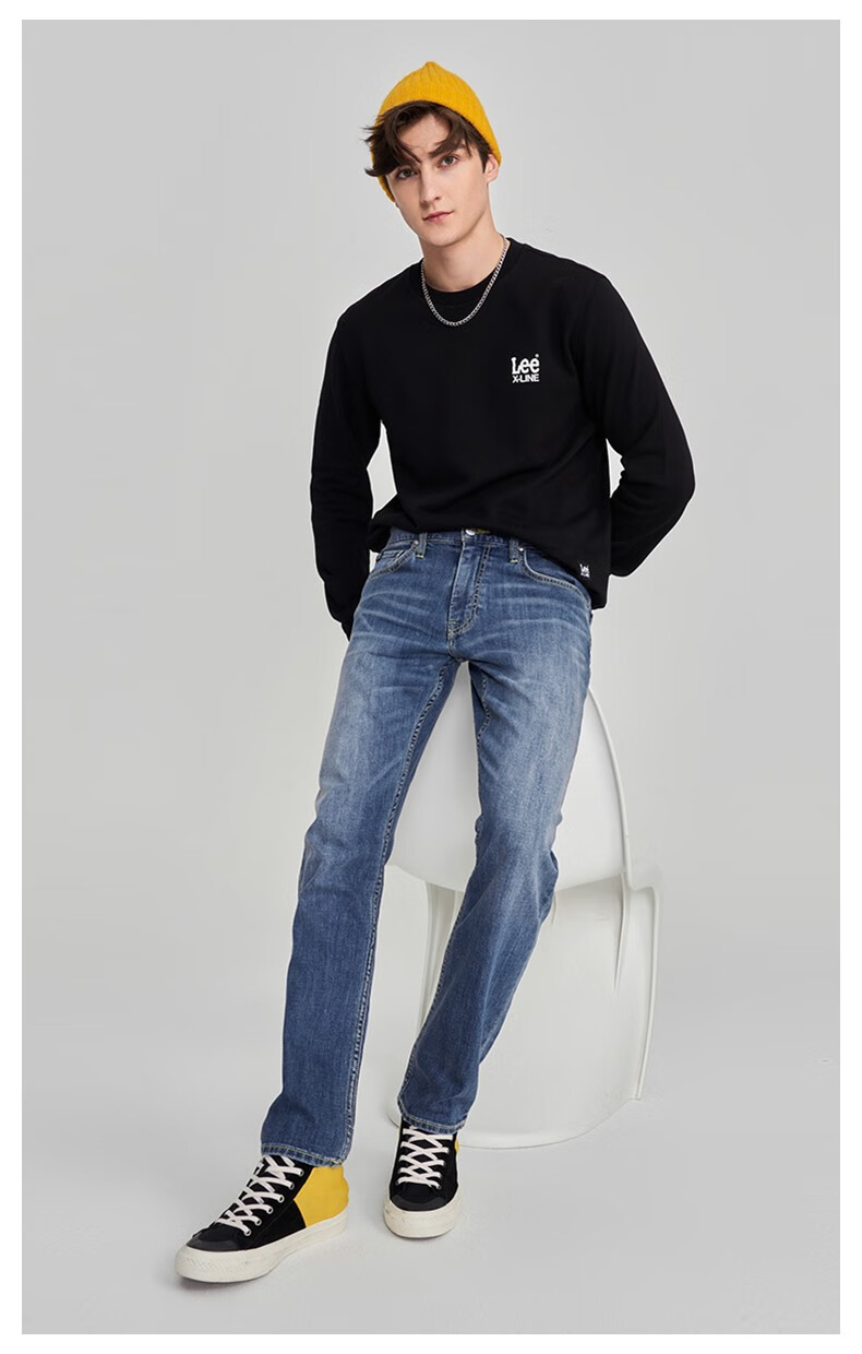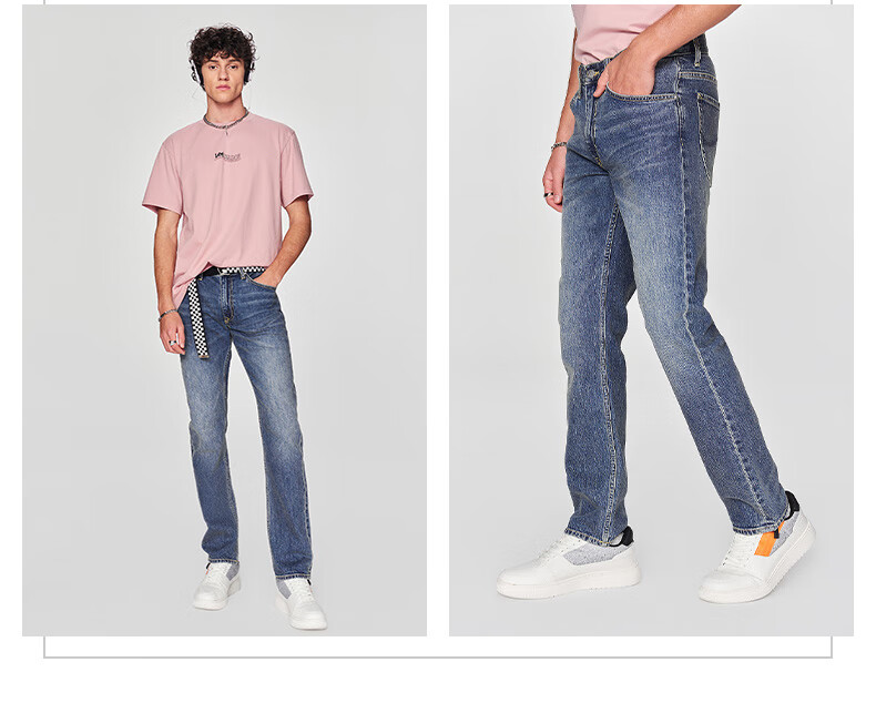 Lee Zhang Linghe endorses 726 comfortable straight denim retro washed blue men's jeans casual trend medium light blue 32 (140-150Jin Jin equals 0.5kg optional)