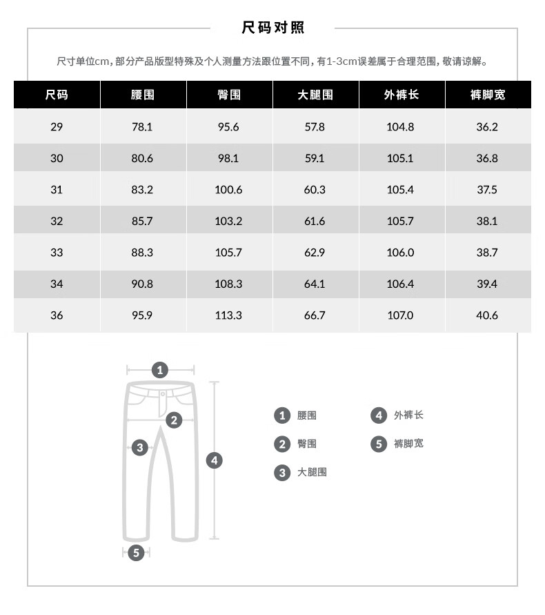 Outseam (cm) 99 cm 101.5 cm 104 cm 106.5 cm 109 cm