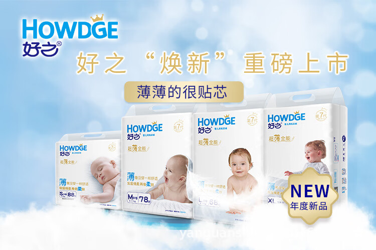 Howdge Haozhi ultra-thin all-purpose diapers are dry, breathable and super absorbent baby diapers L large size supermarket same style baby diapers L68 pieces 1 pack