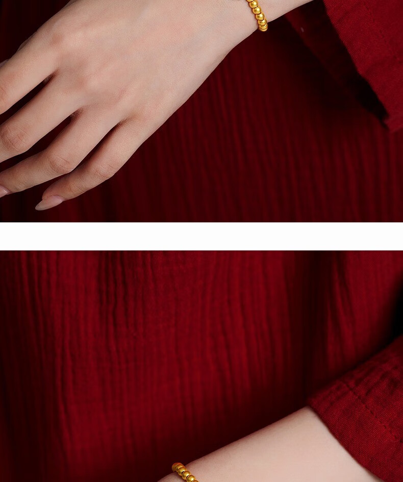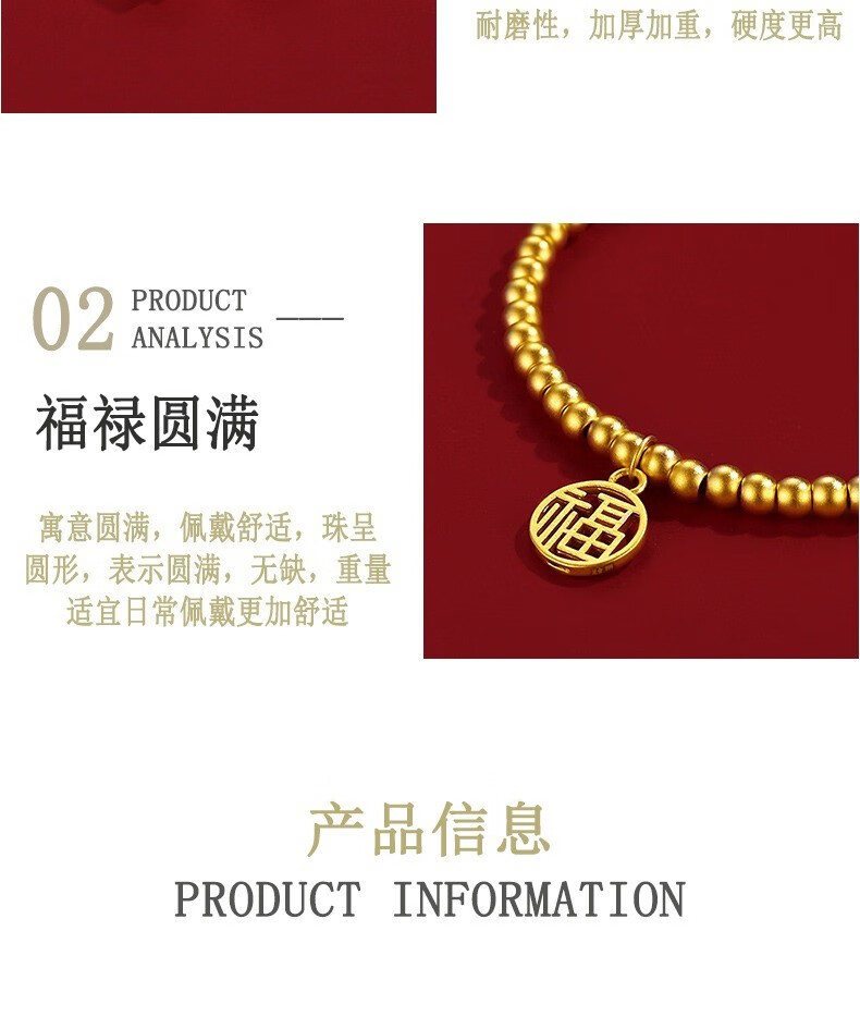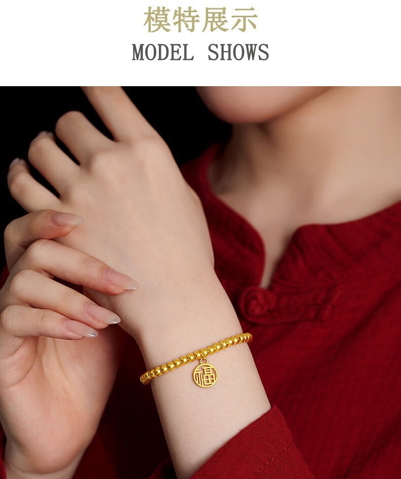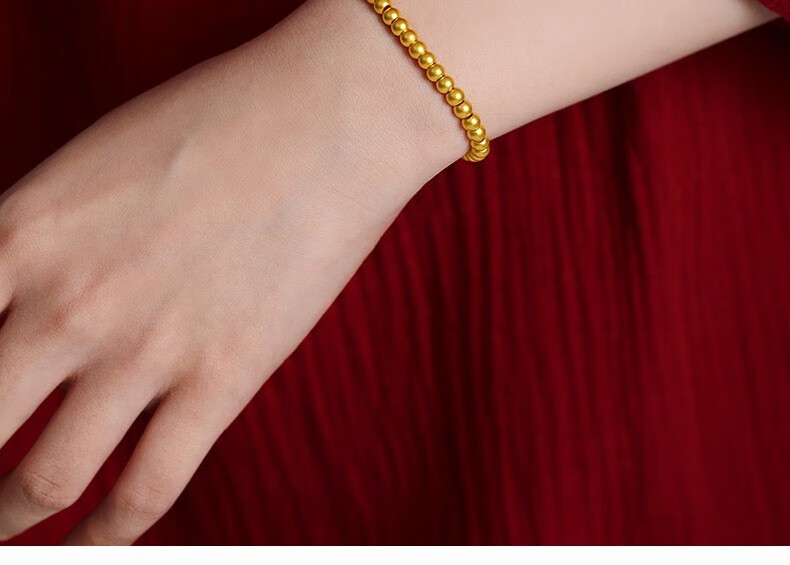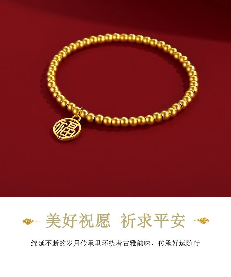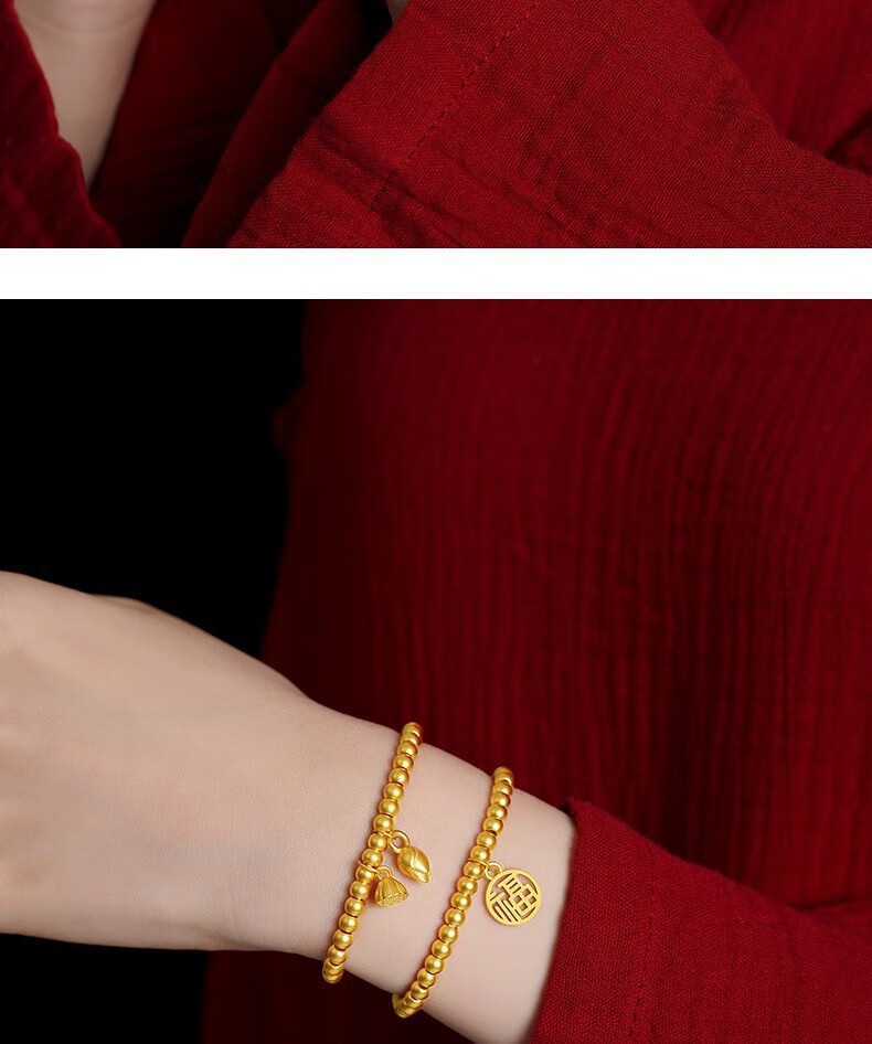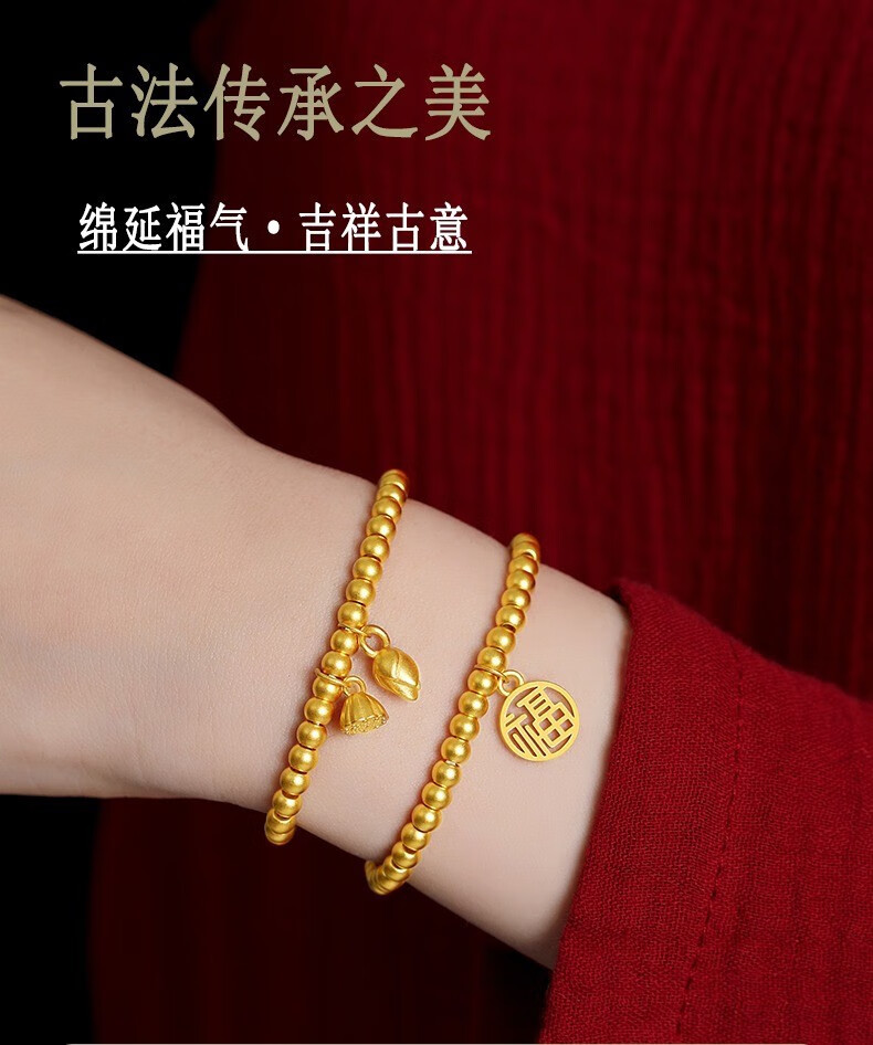 Jingyuelong Pure Gold 999 Two Worlds Huan Ancient Method Gold Bracelet Inherited Lotus Transfer Beads Blessing Brand Bracelet Bracelet for Women to Give to Wife 5mm Gold Beads + Blessing Brand Approximately 4.3-4.4g