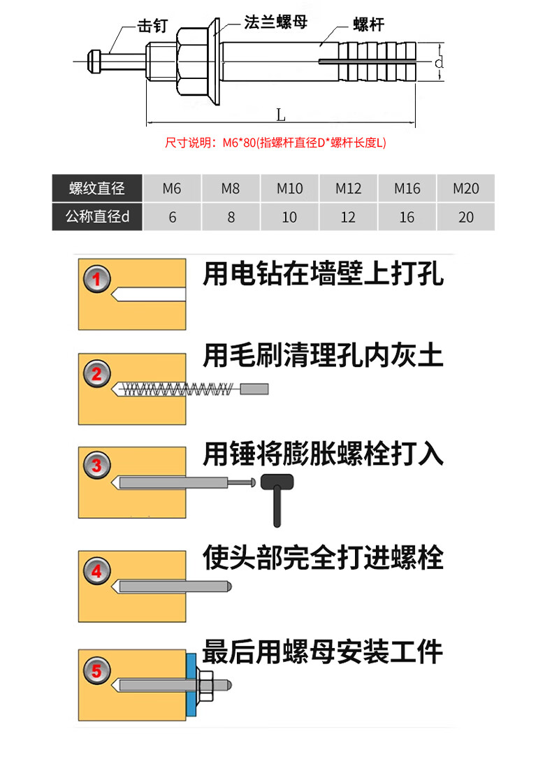 GUWANJI core-hit expansion screw one-nail knock-type expansion bolt lift expansion hammer gecko national standard fastener M10x100 (5 pieces)