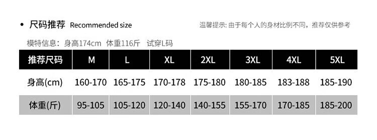 China (cm) 165 / 88-90 170 / 96-98 175 / 108-110 180 / 118-122 185 / 126-130