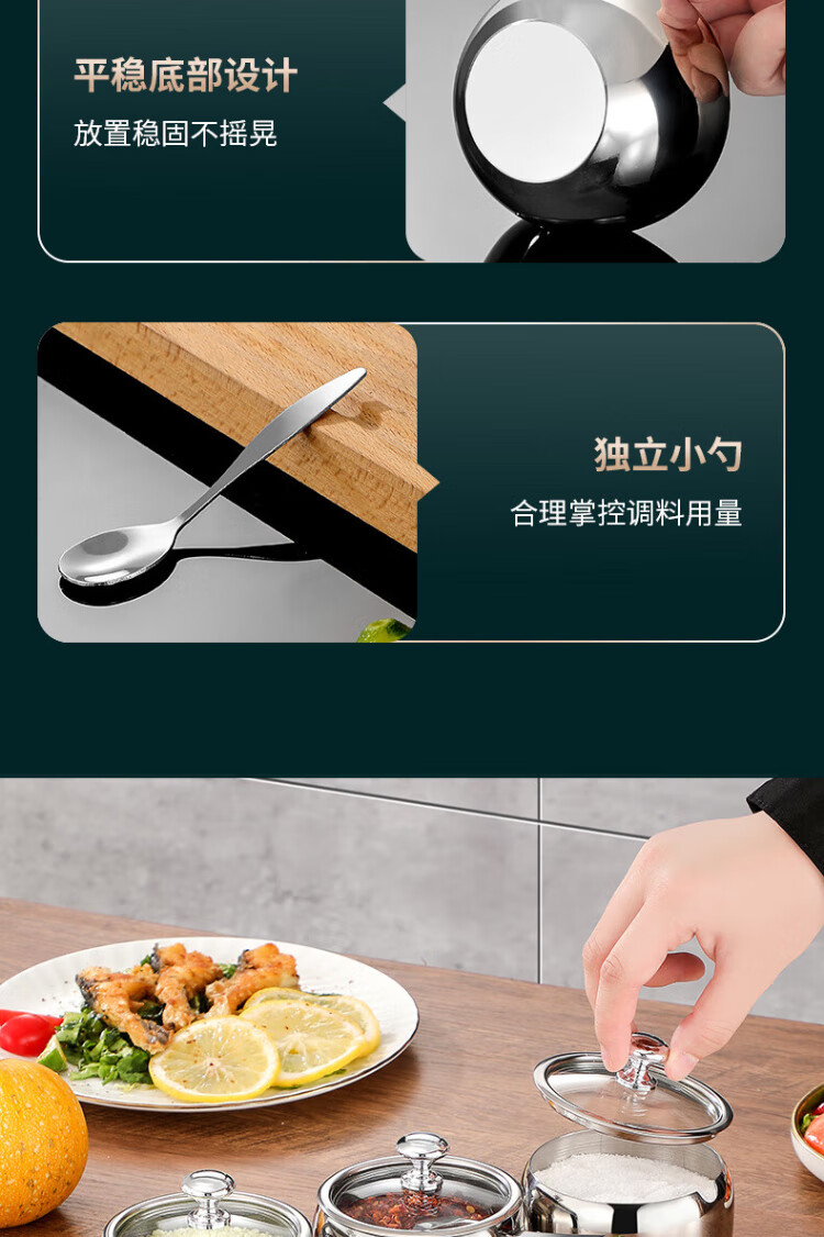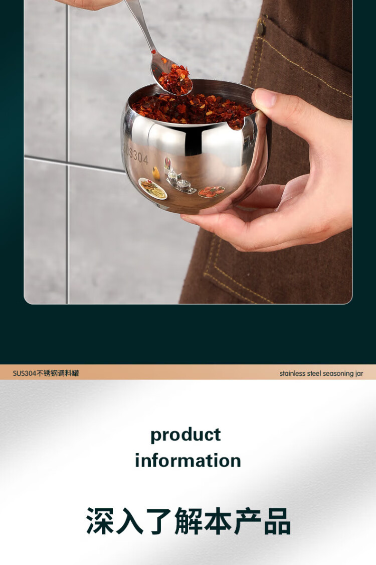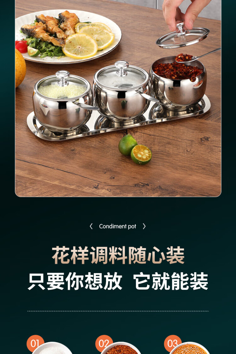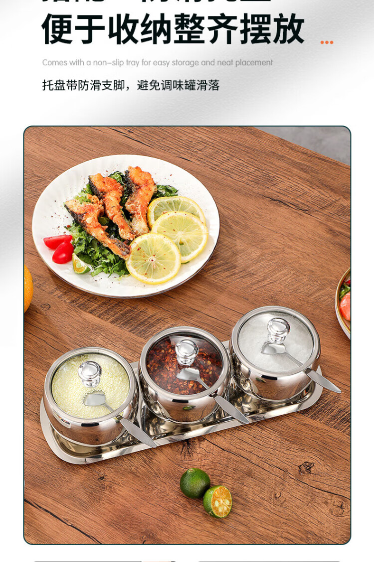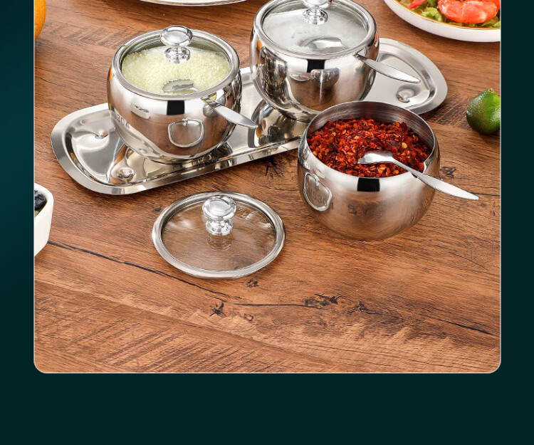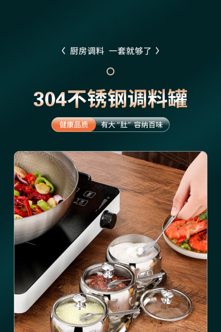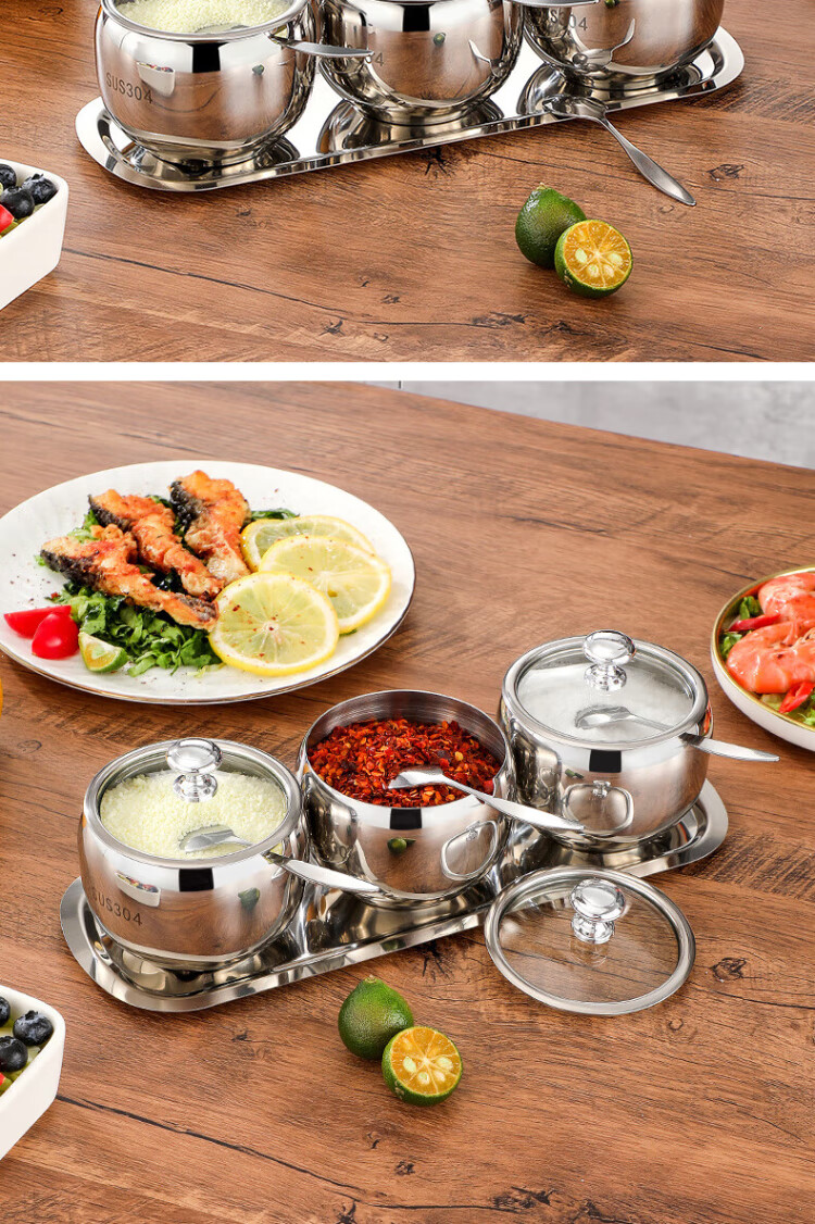 Yupinjia 304 stainless steel seasoning jar seasoning box set seasoning jar seasoning jar round seasoning box household kitchen supplies 304 stainless steel seasoning jar three flavors
