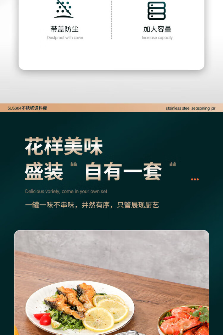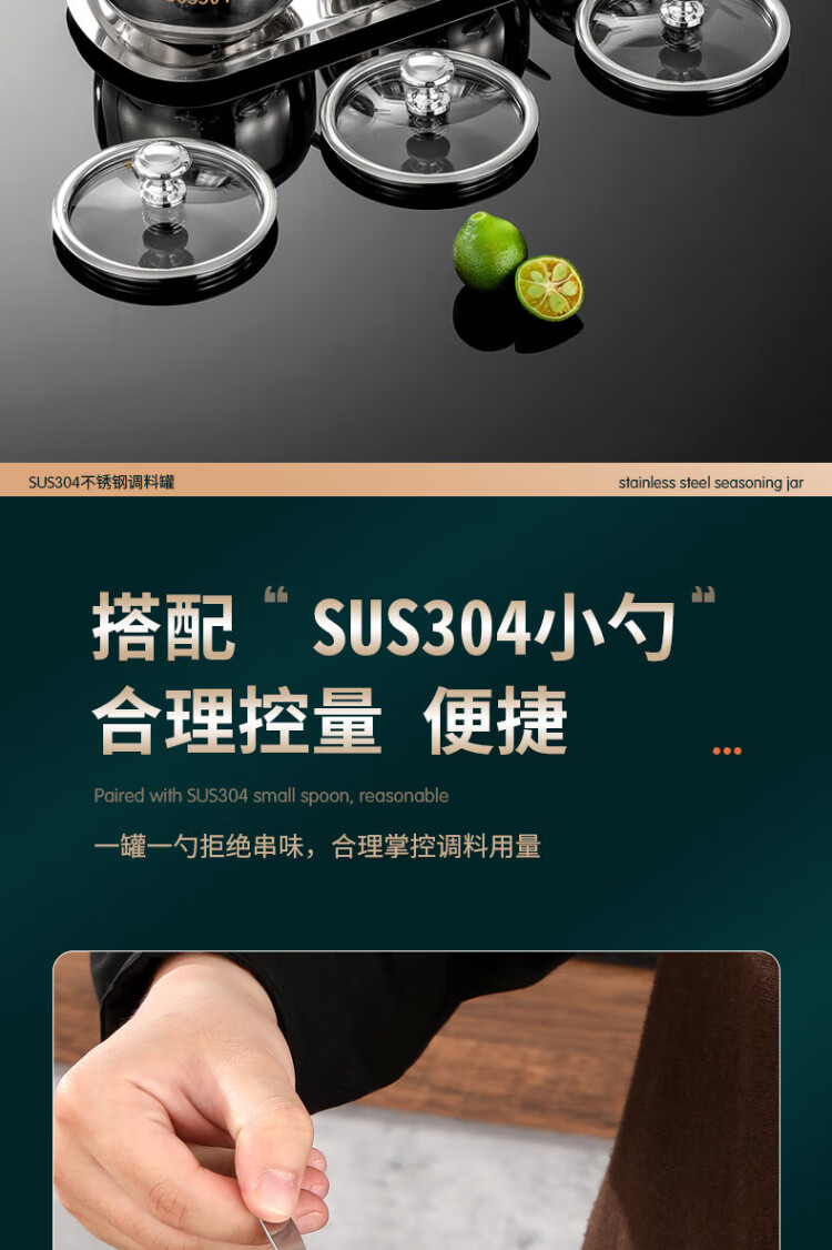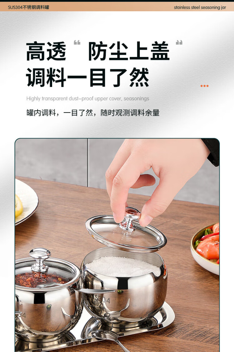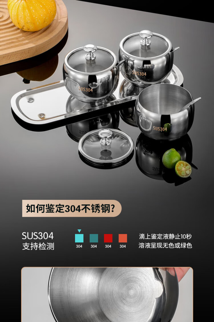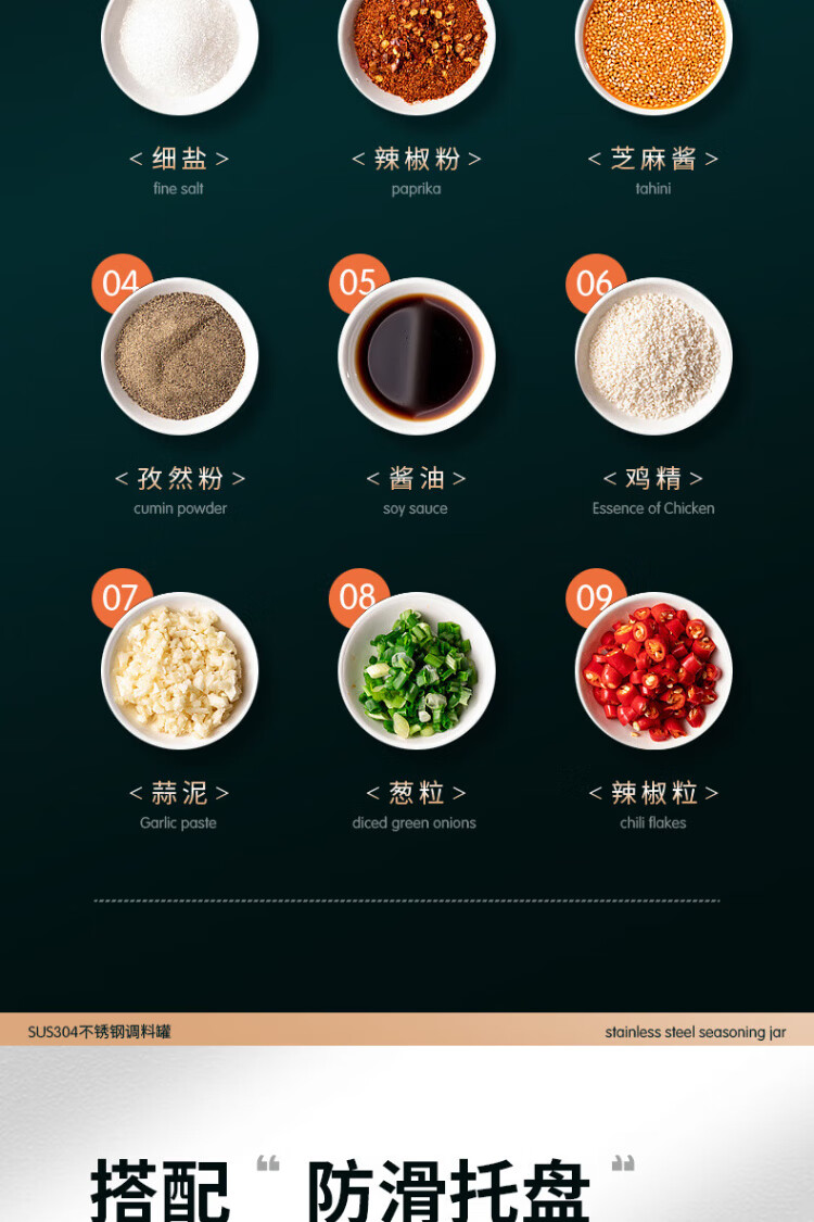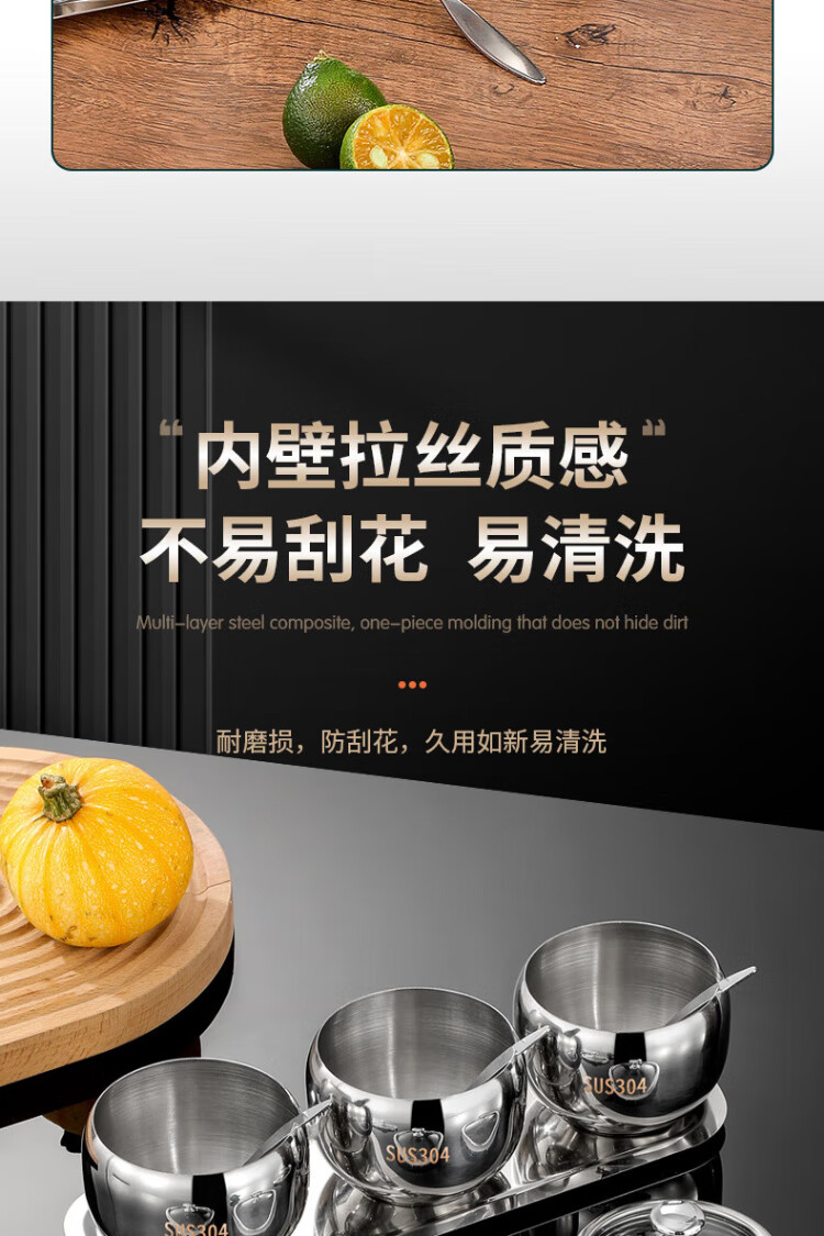 Yupinjia 304 stainless steel seasoning jar seasoning box set seasoning jar seasoning jar round seasoning box household kitchen supplies 304 stainless steel seasoning jar three flavors