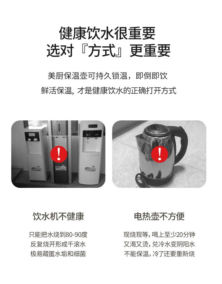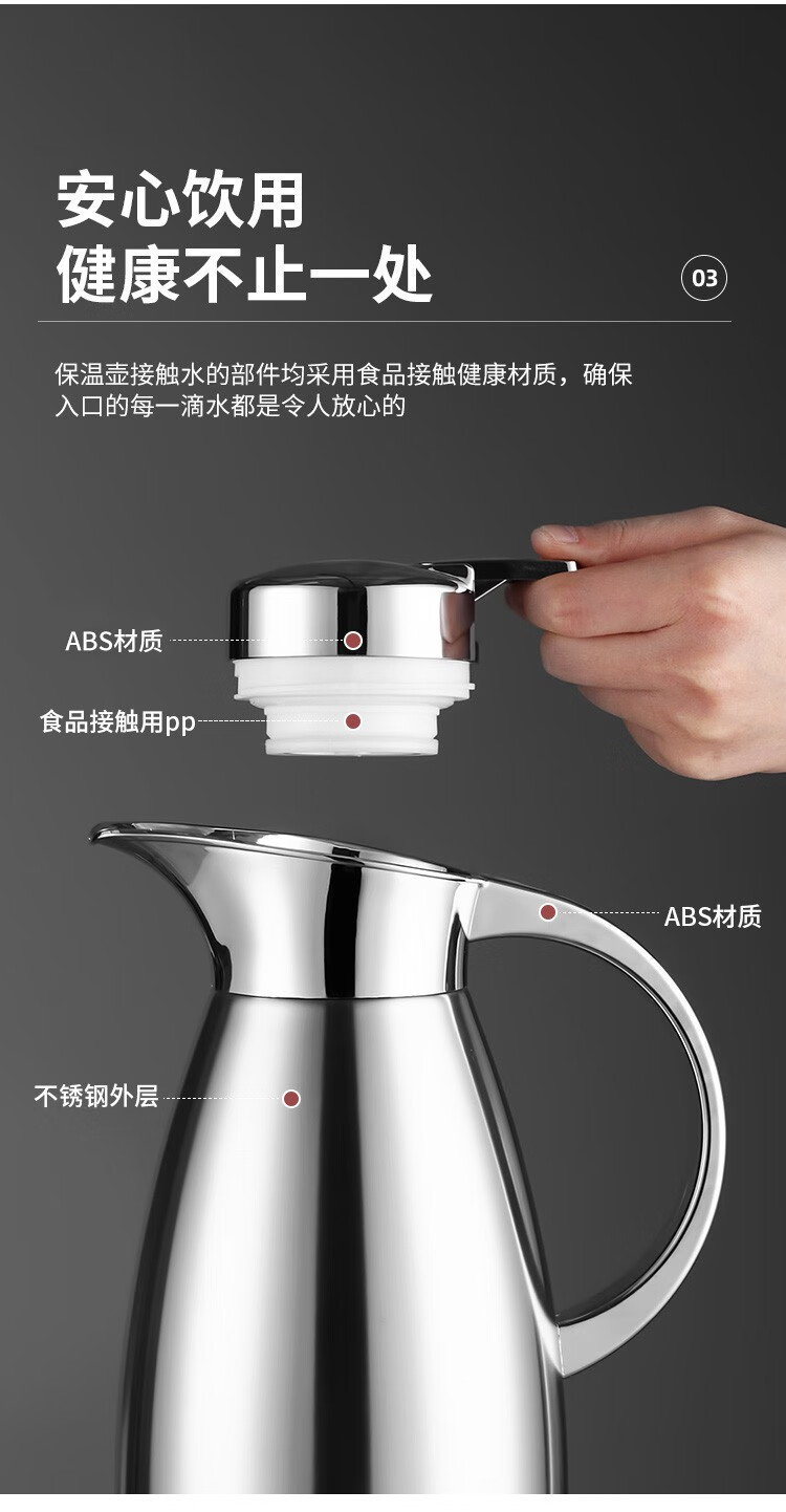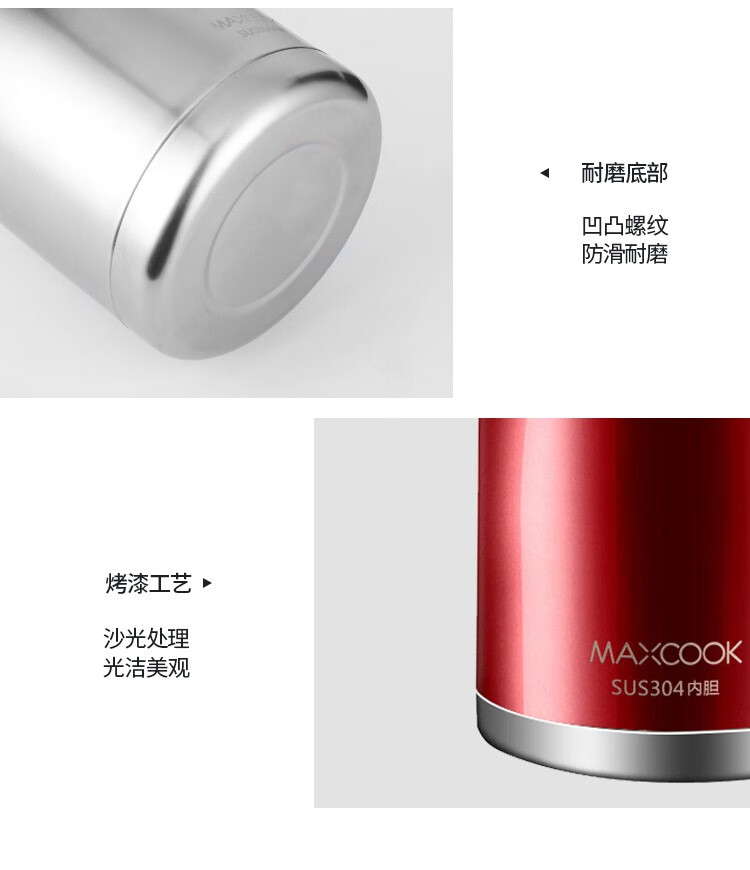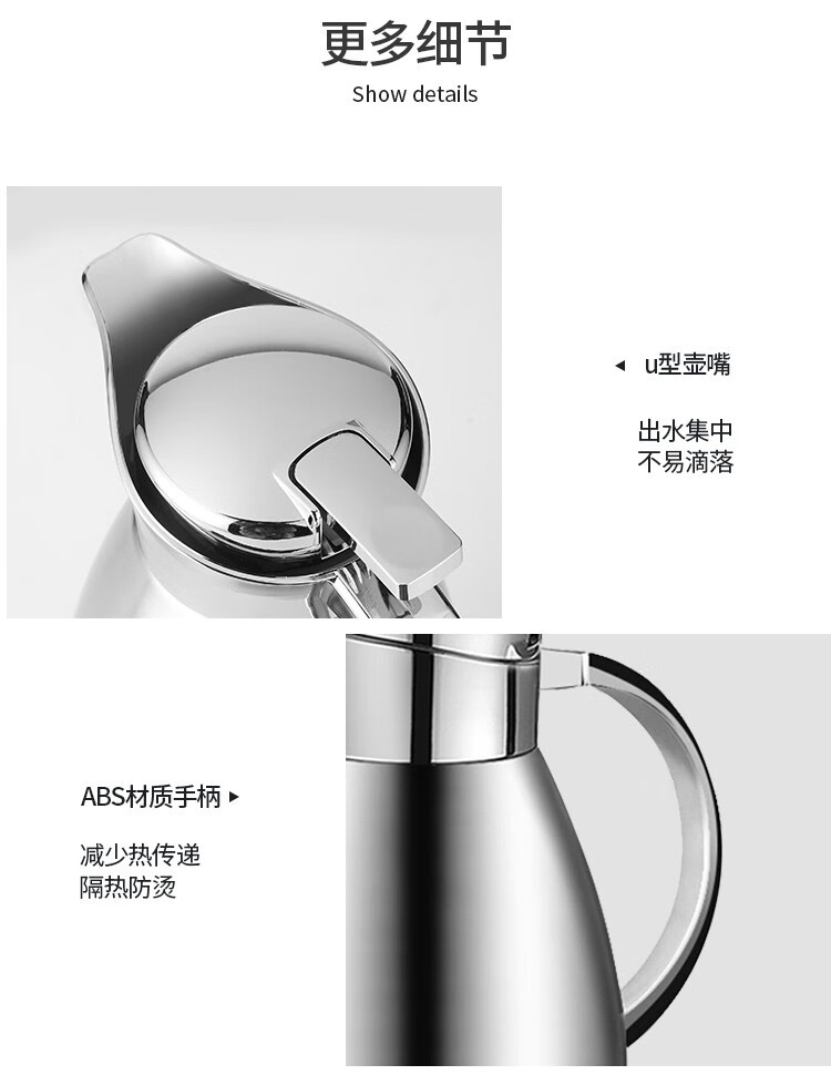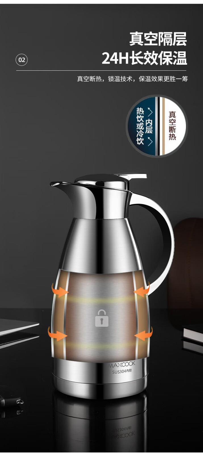 MAXCOOK thermos kettle 304 stainless steel vacuum hot water kettle thermos flask thermos boiling water bottle large capacity non-slip coffee pot 2L natural color MCB3932L