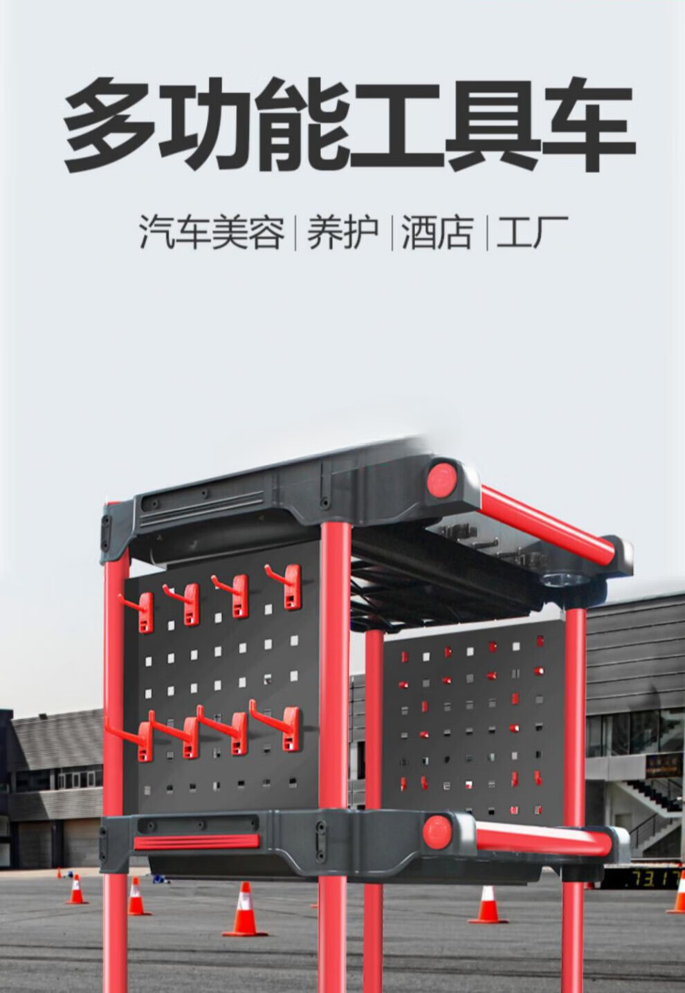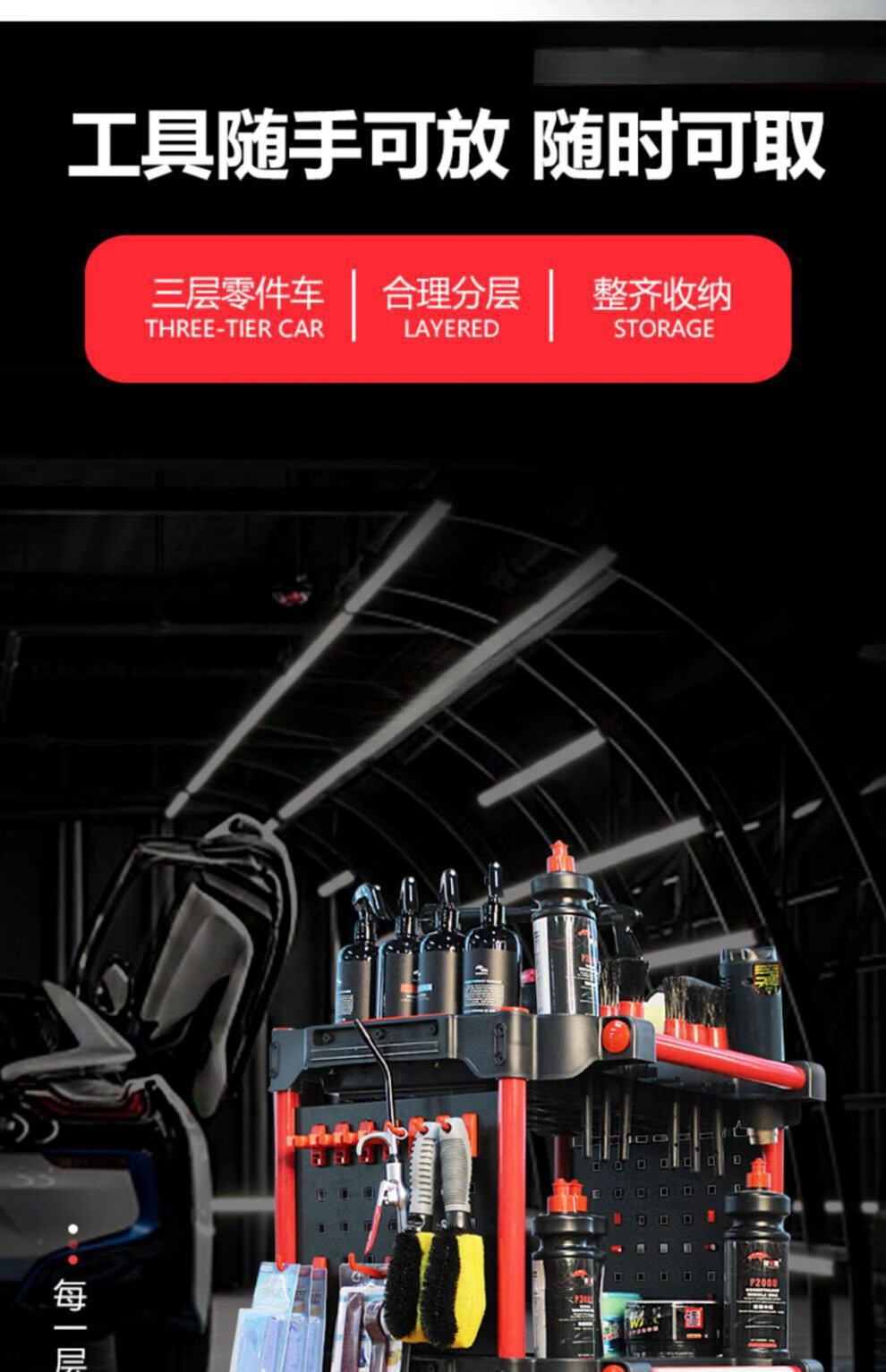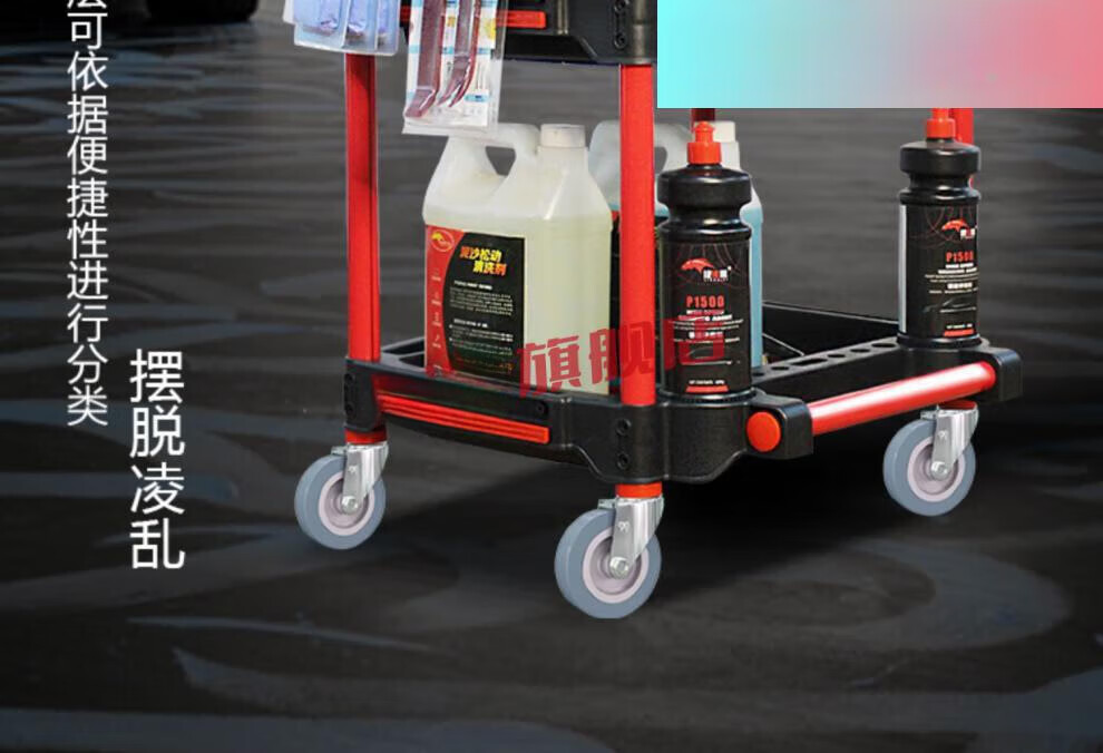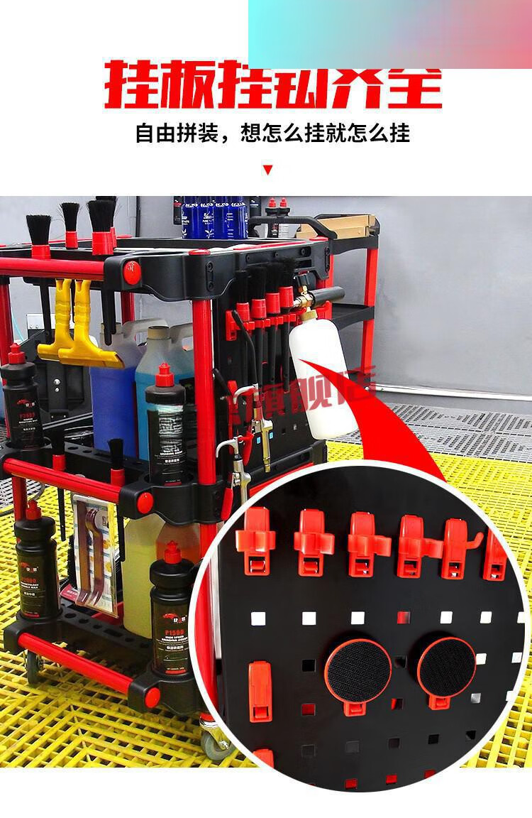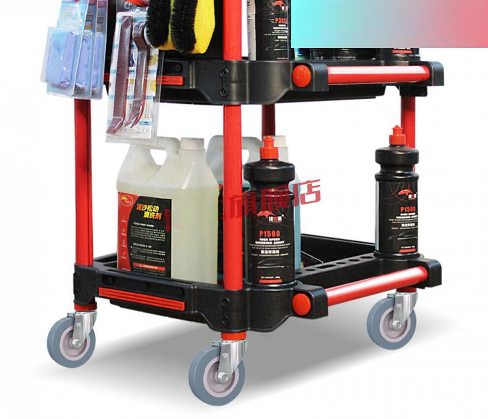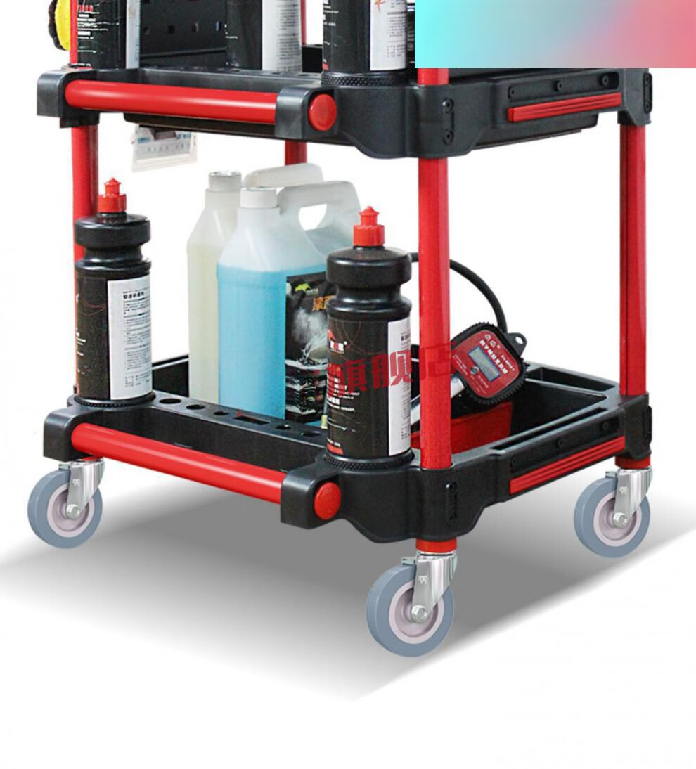 Yutairui car wash shop car beauty tool cart special multi-functional plastic three-layer mobile storage trolley shelf TM-A model (flat plate) with double hanging buckets and hanging plates
