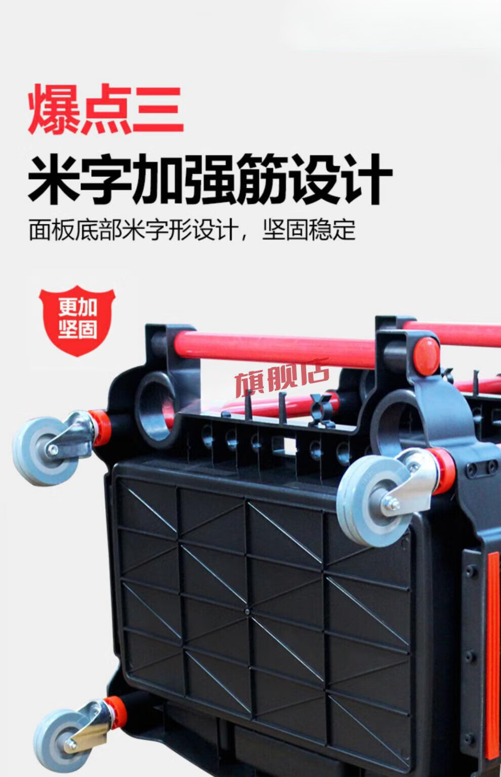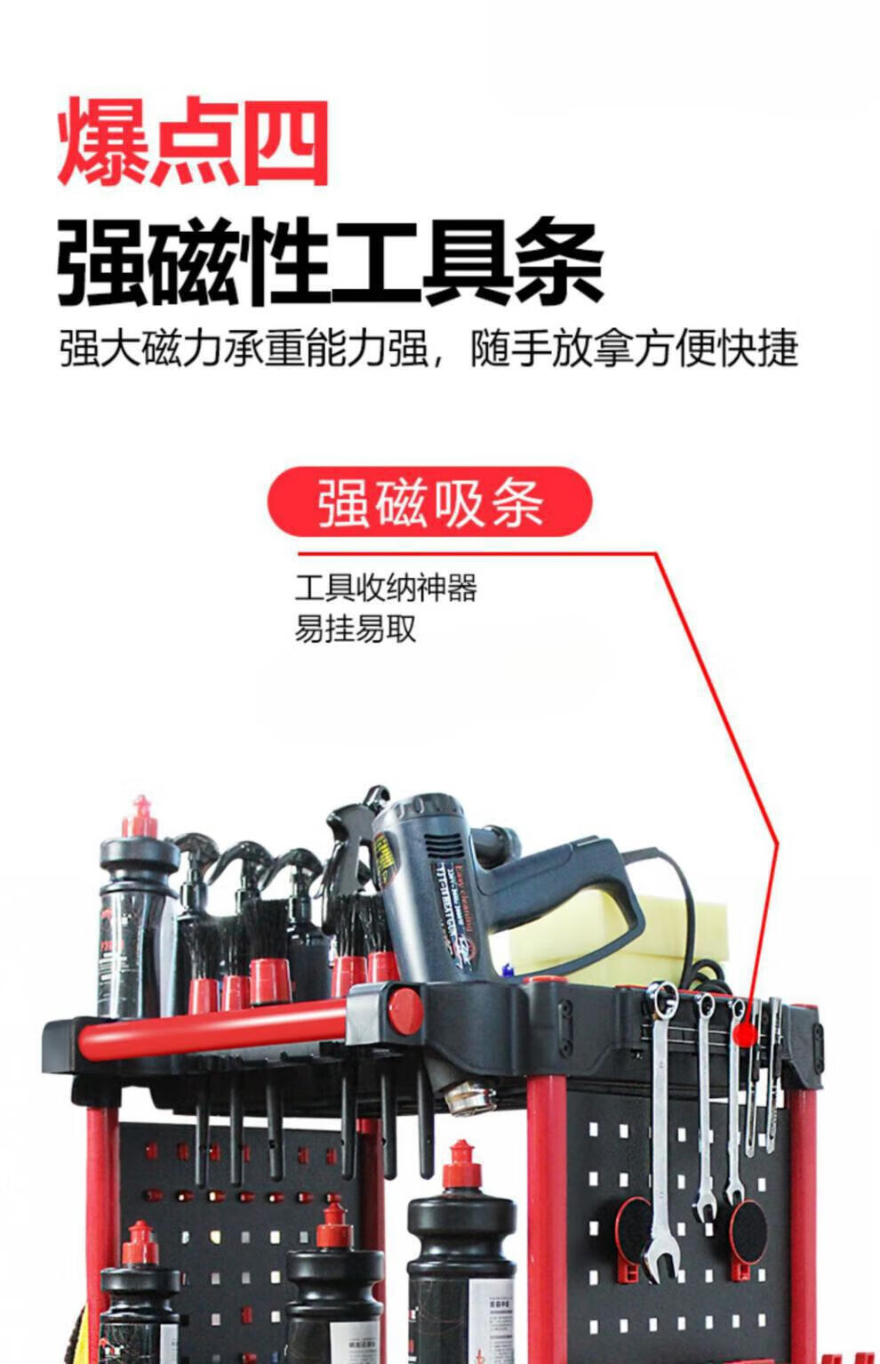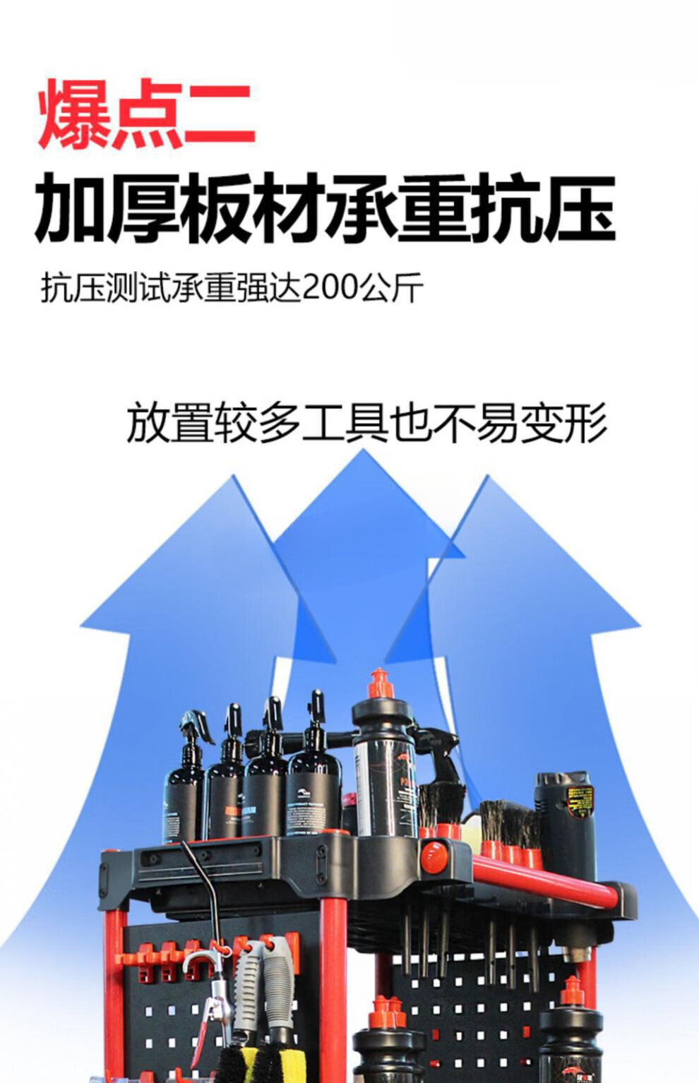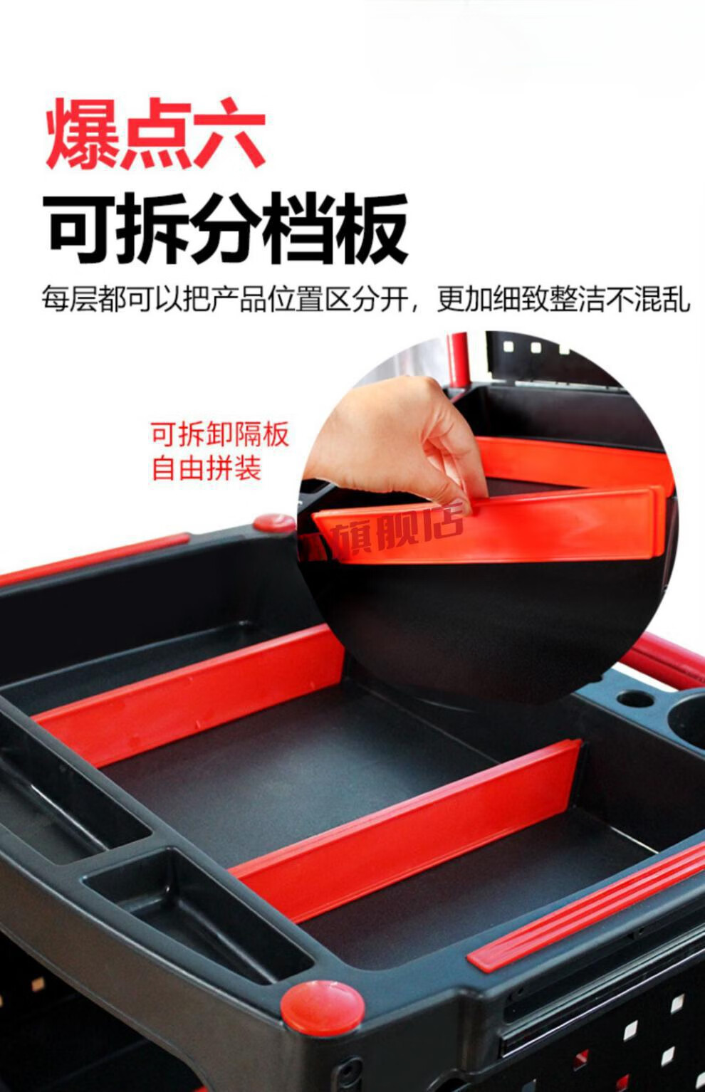 Yutairui car wash shop car beauty tool cart special multi-functional plastic three-layer mobile storage trolley shelf TM-A model (flat plate) with double hanging buckets and hanging plates