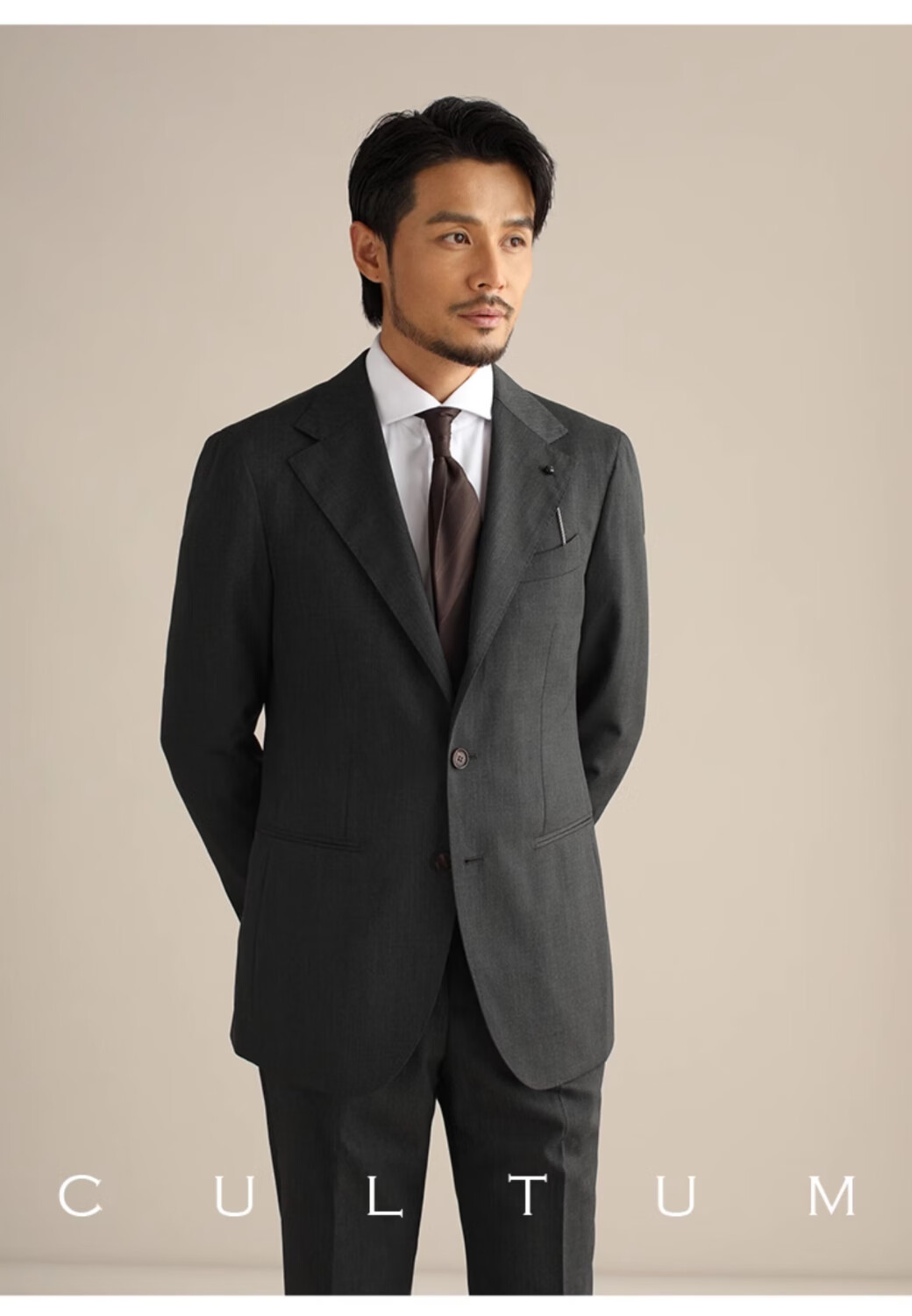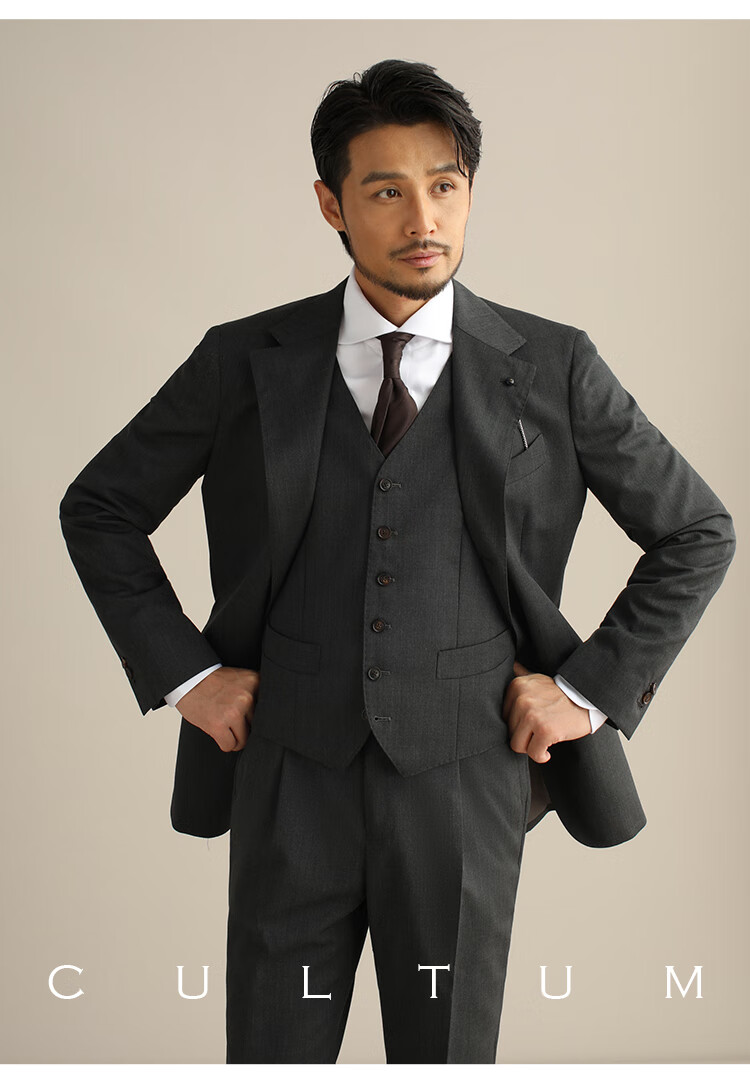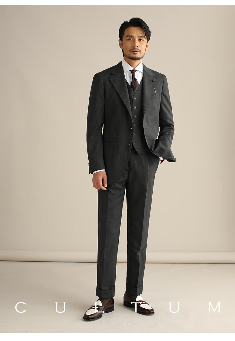 CULTUM worsted wool Neapolitan Italian suit suit men's formal wear no-iron wedding dress business suit three-piece suit dark gray three-piece trousers size can be remarked by yourself 185B /54B