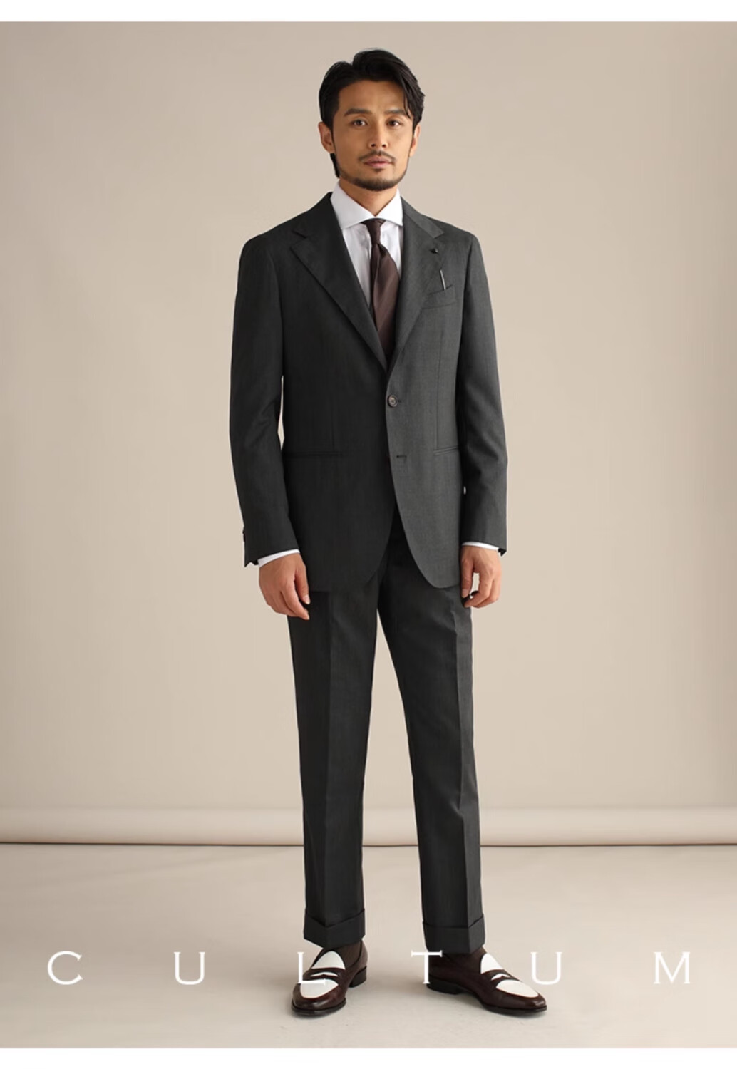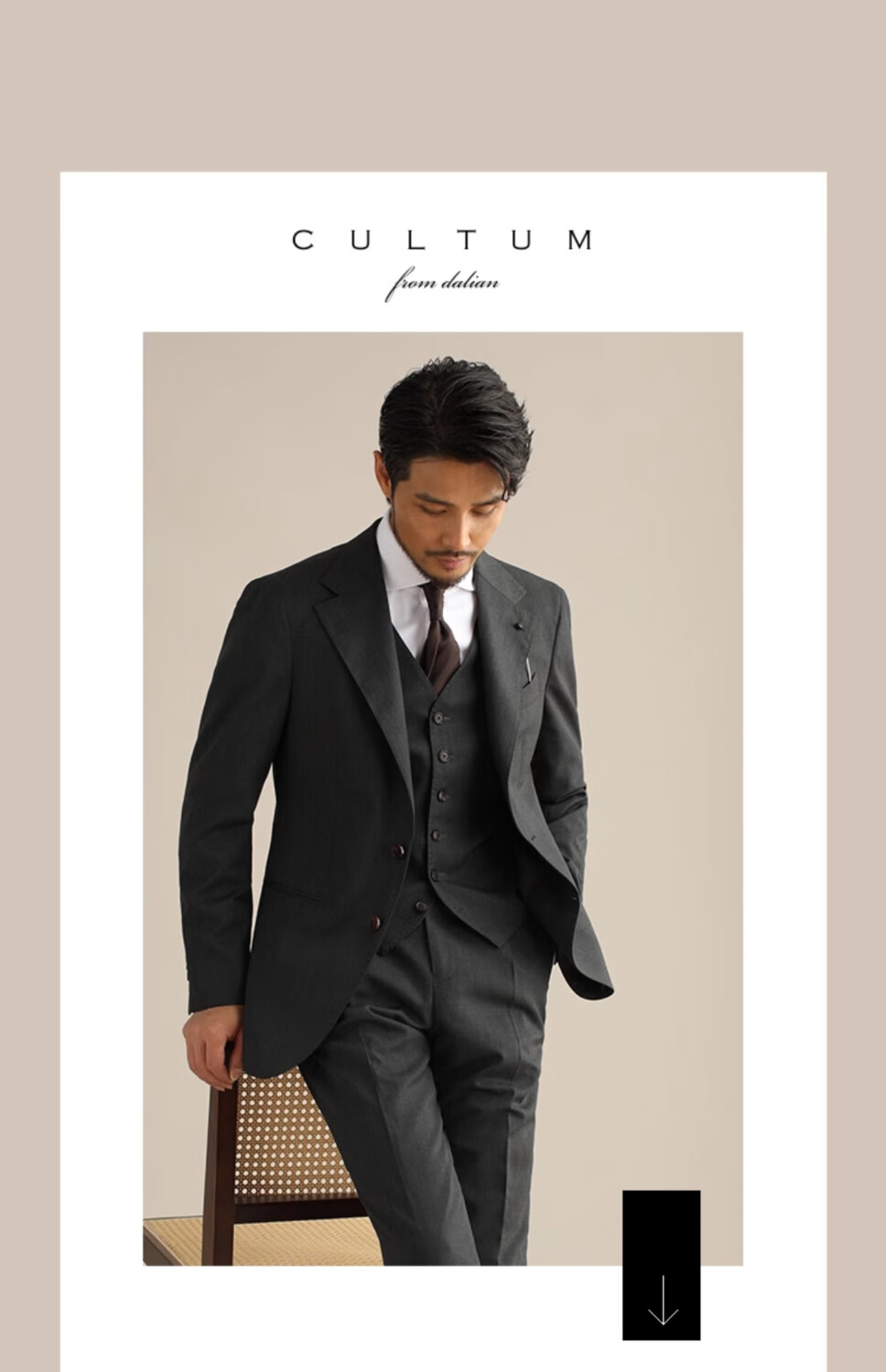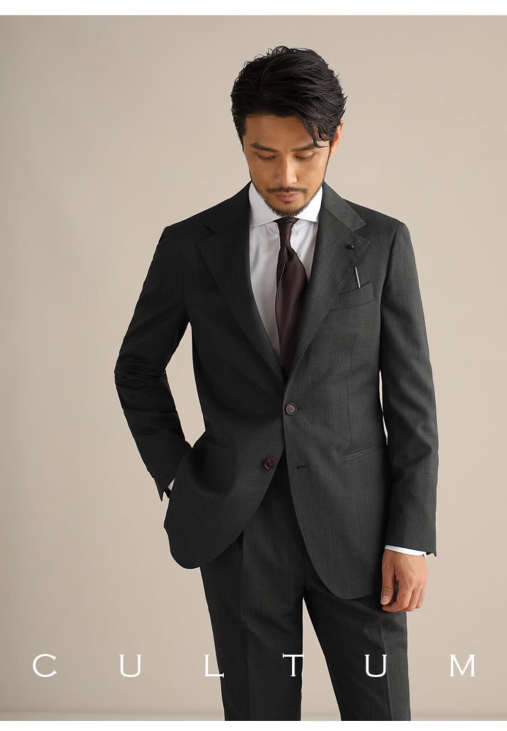 CULTUM worsted wool Neapolitan Italian suit suit men's formal wear no-iron wedding dress business suit three-piece suit dark gray three-piece trousers size can be remarked by yourself 185B /54B