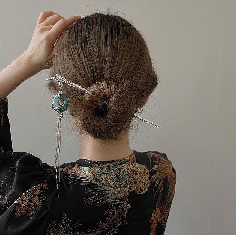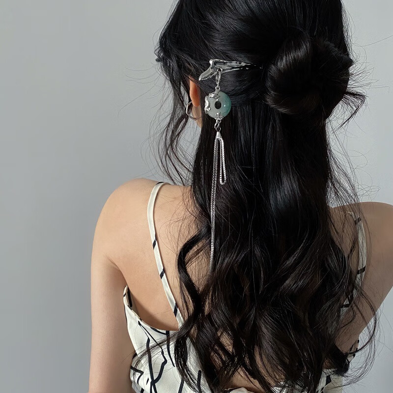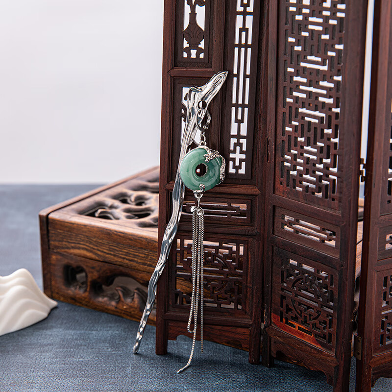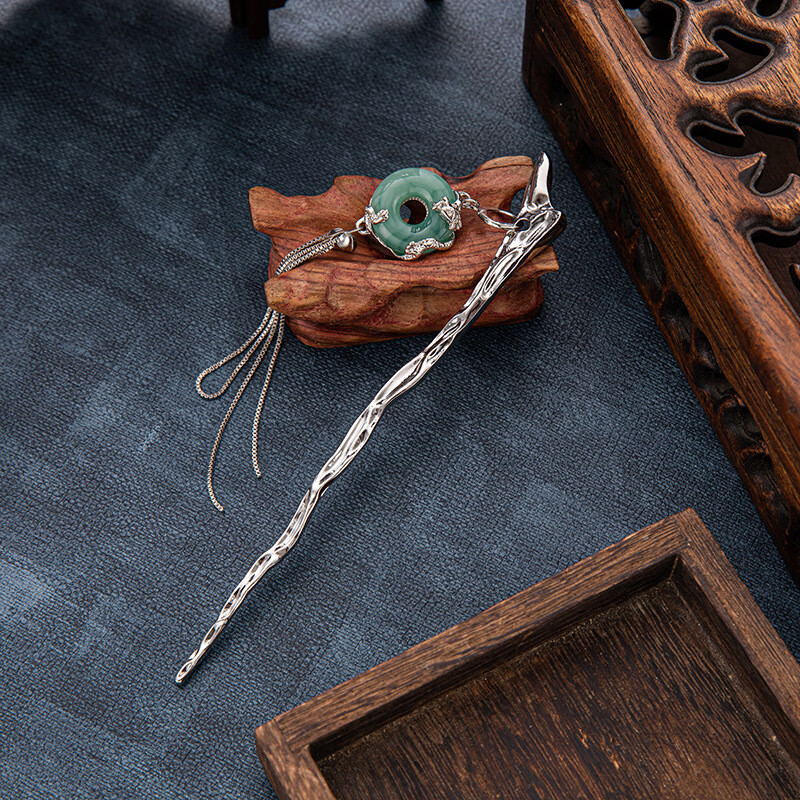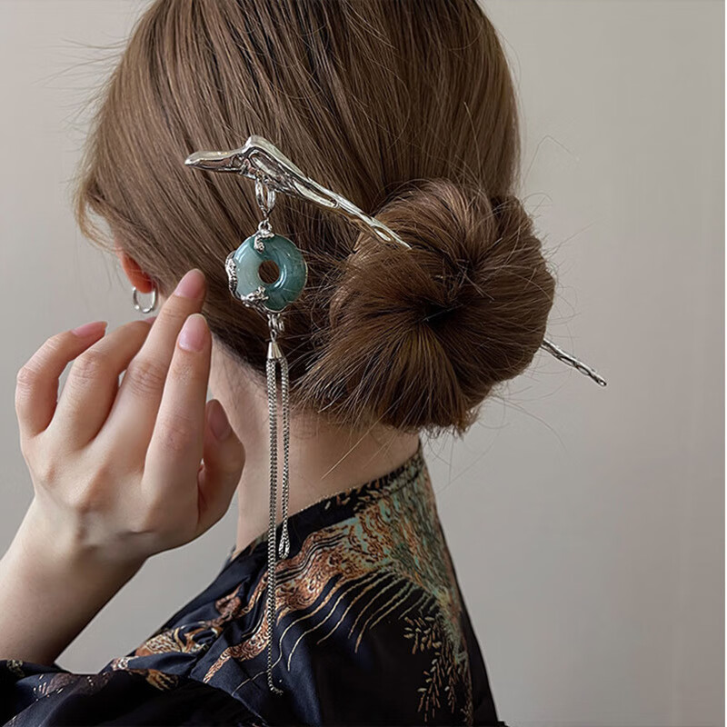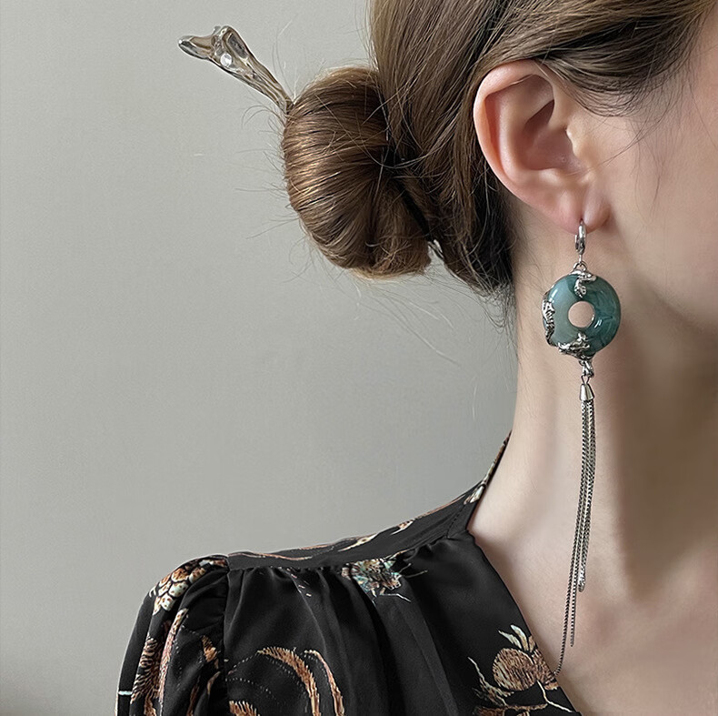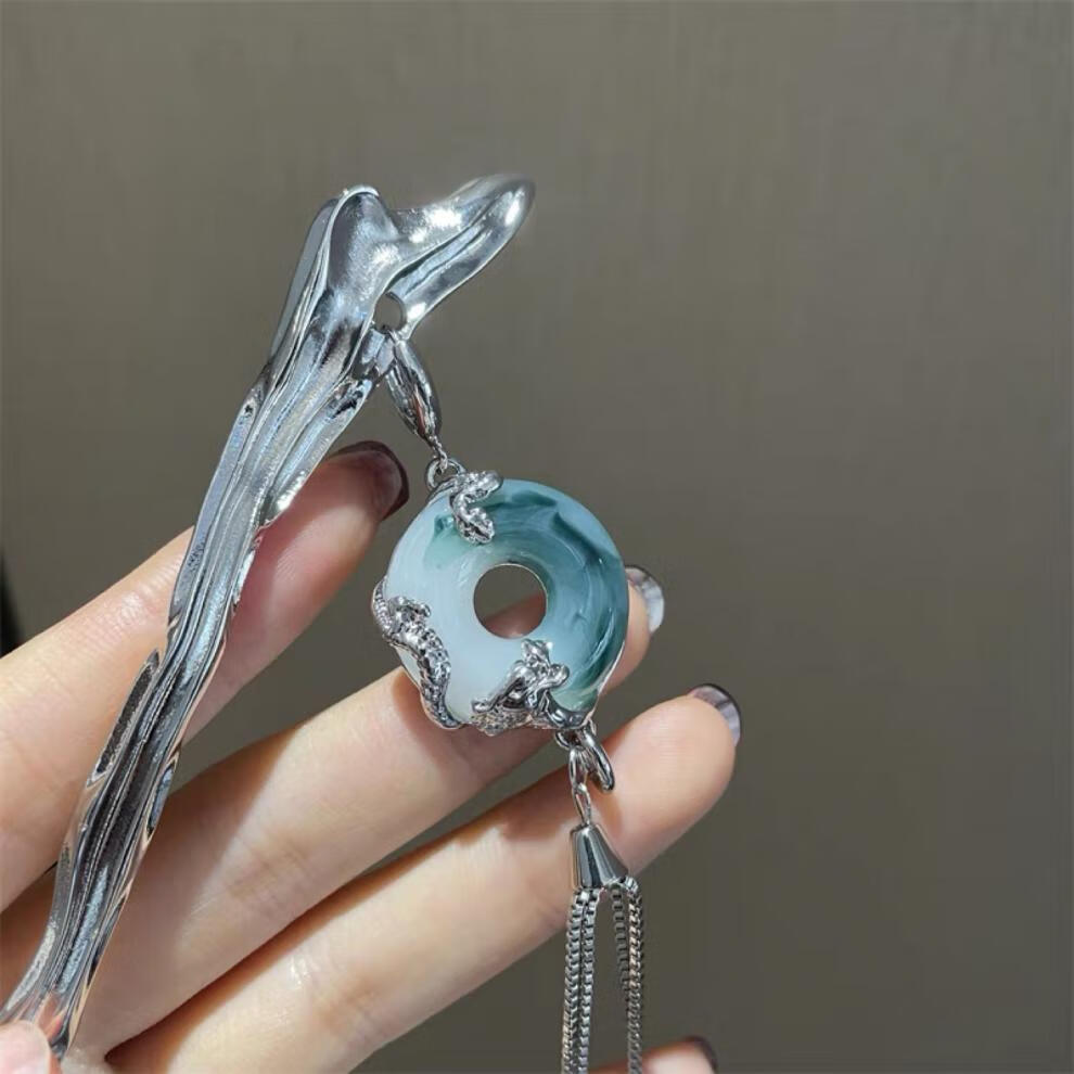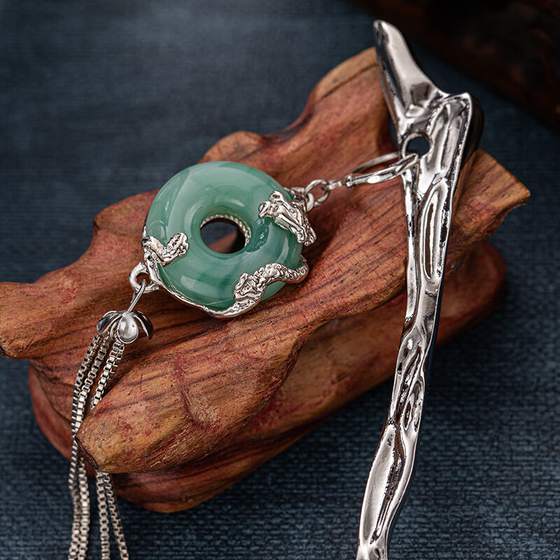 LEMIAO national style tassel hairpin new Chinese style gradient dark green dragon pattern hairpin national trendy hair accessories hairpin detachable earrings bamboo section
