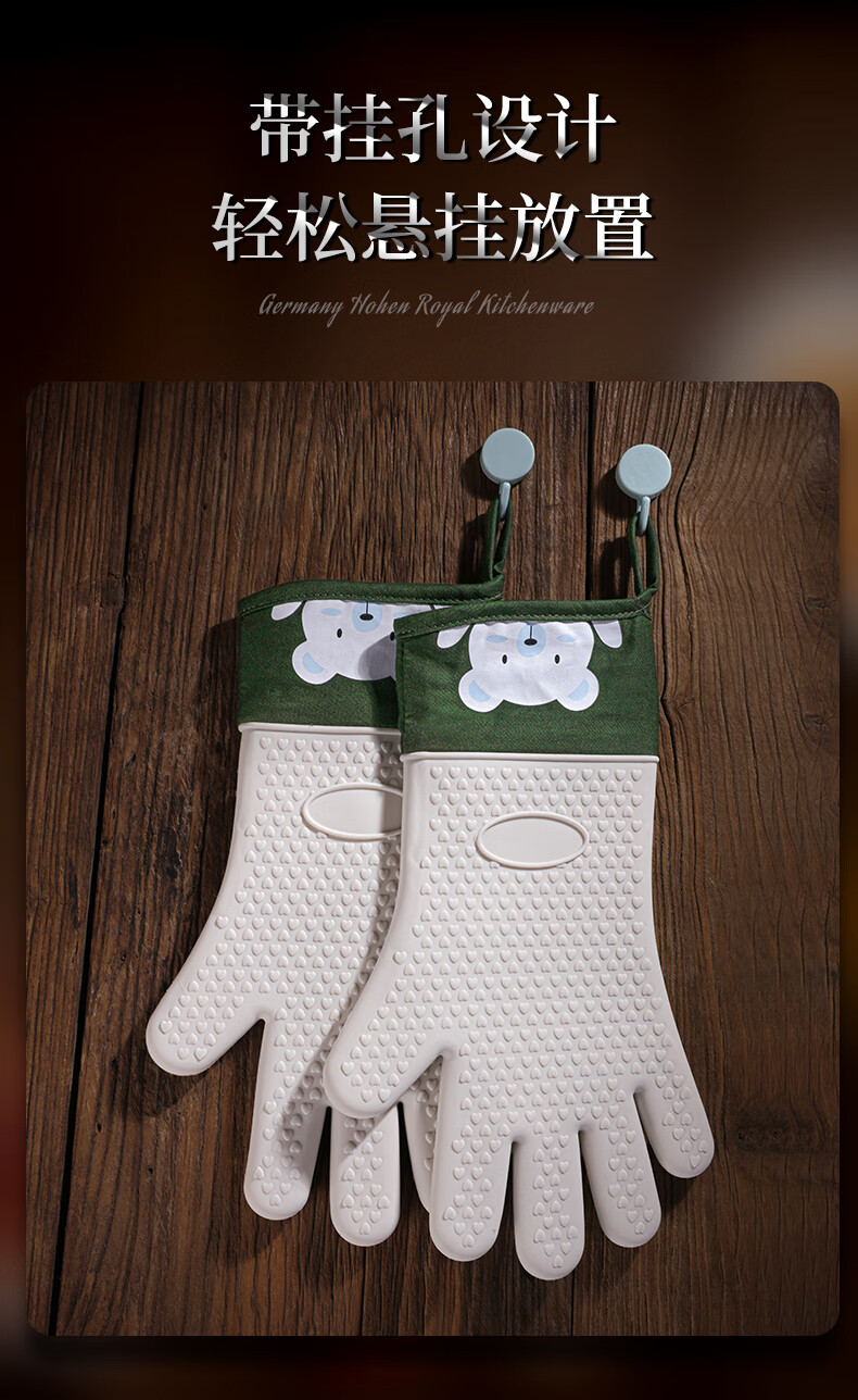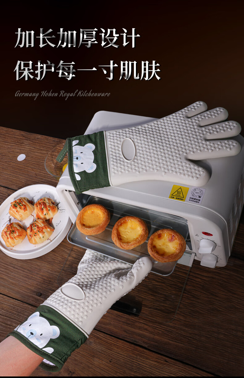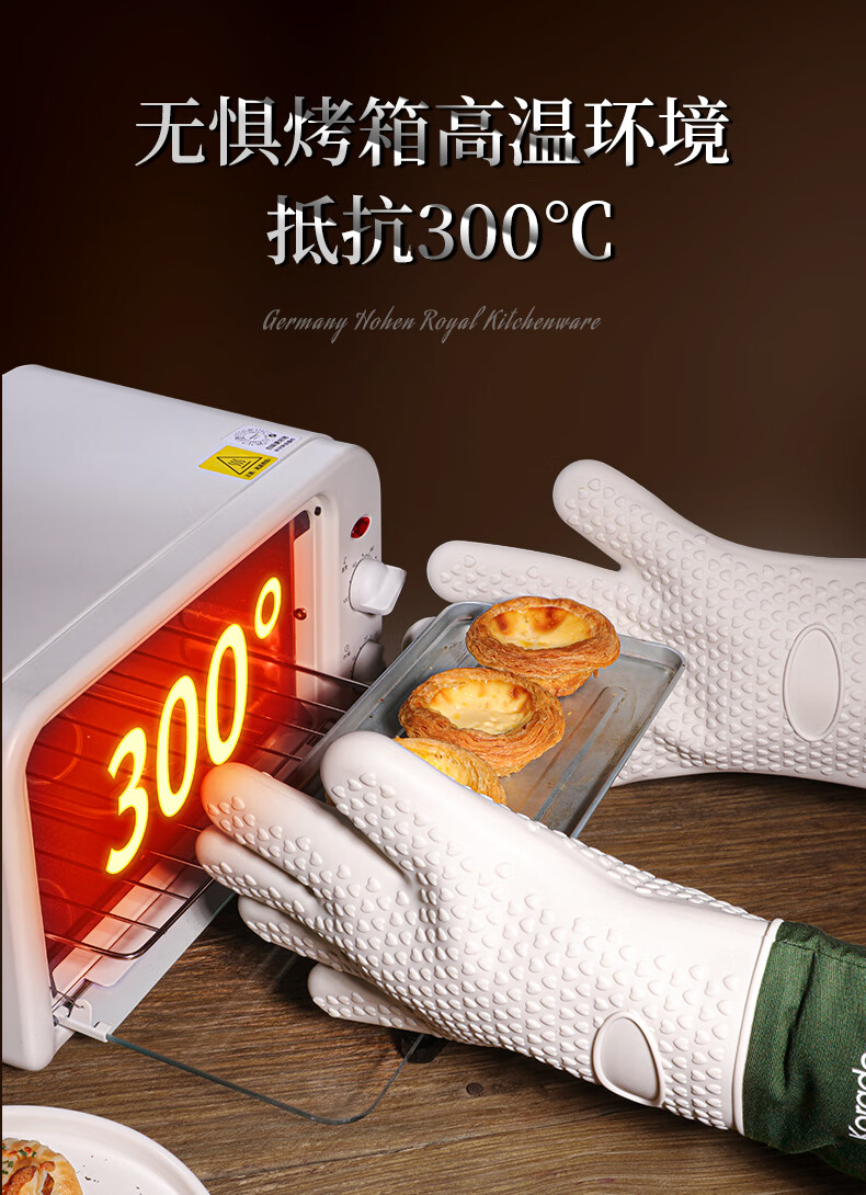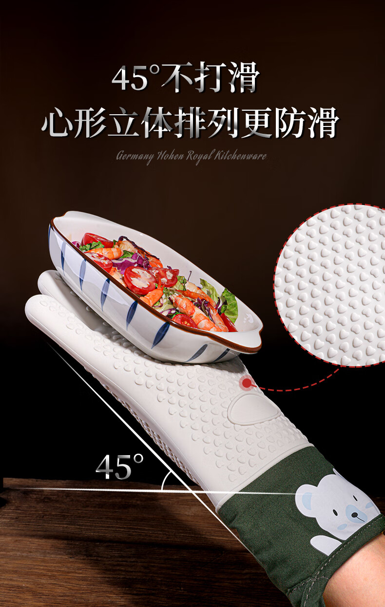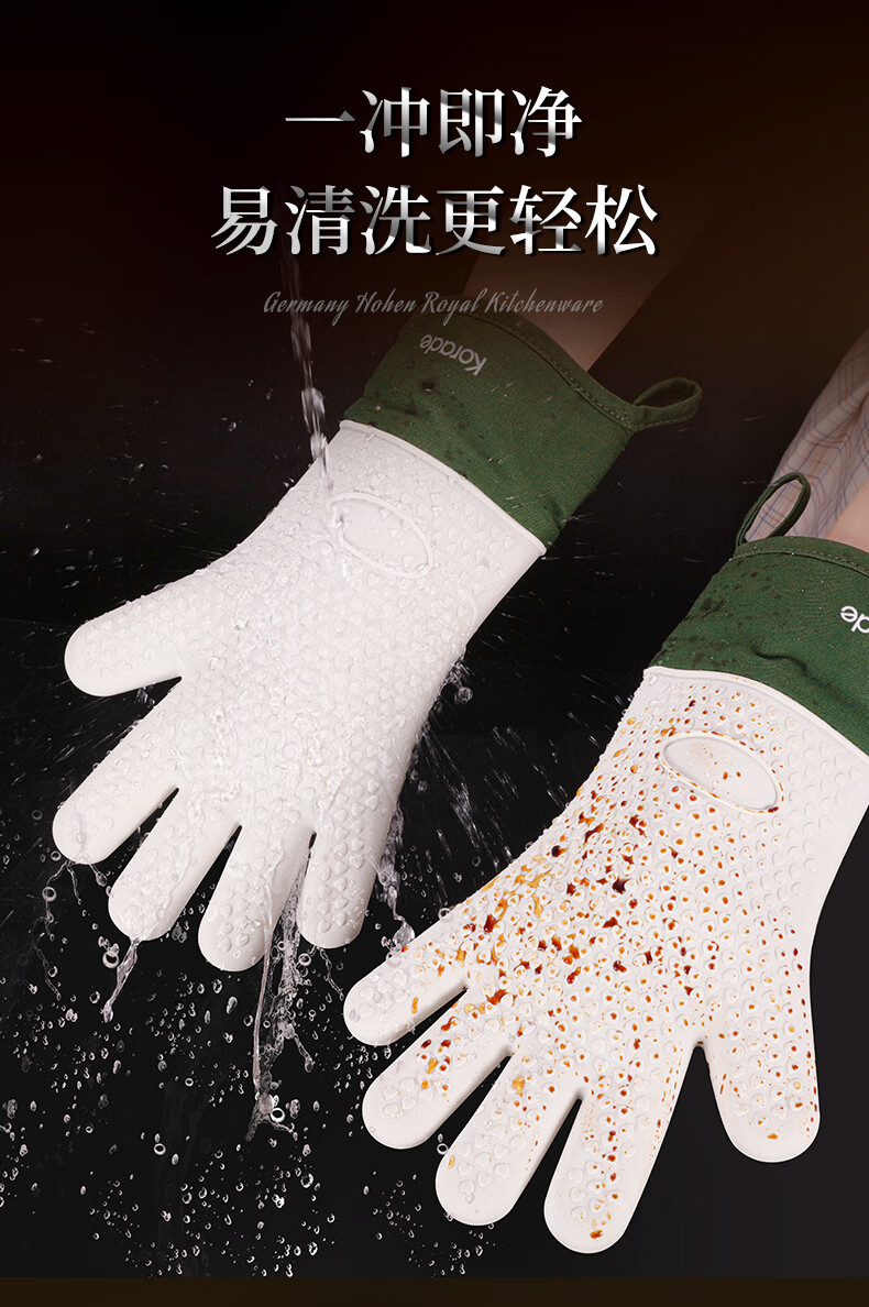 Korade five-finger oven gloves kitchen insulation anti-scalding gloves baking thickened silicone high temperature resistant microwave oven gloves anti-slip silicone anti-scalding gloves (one pair)