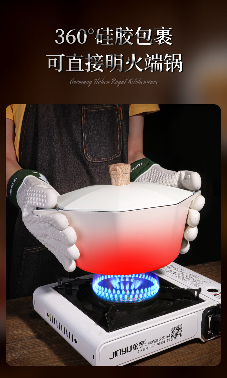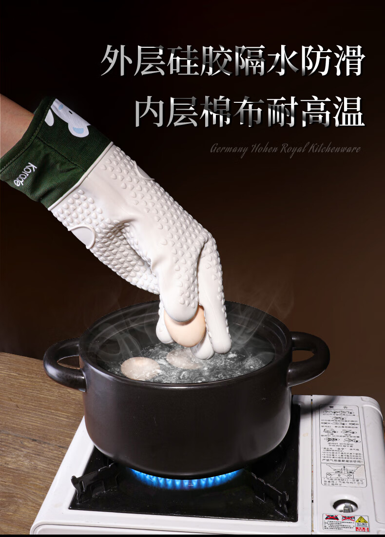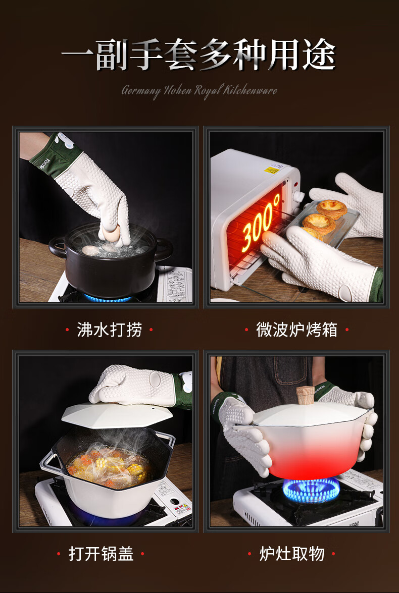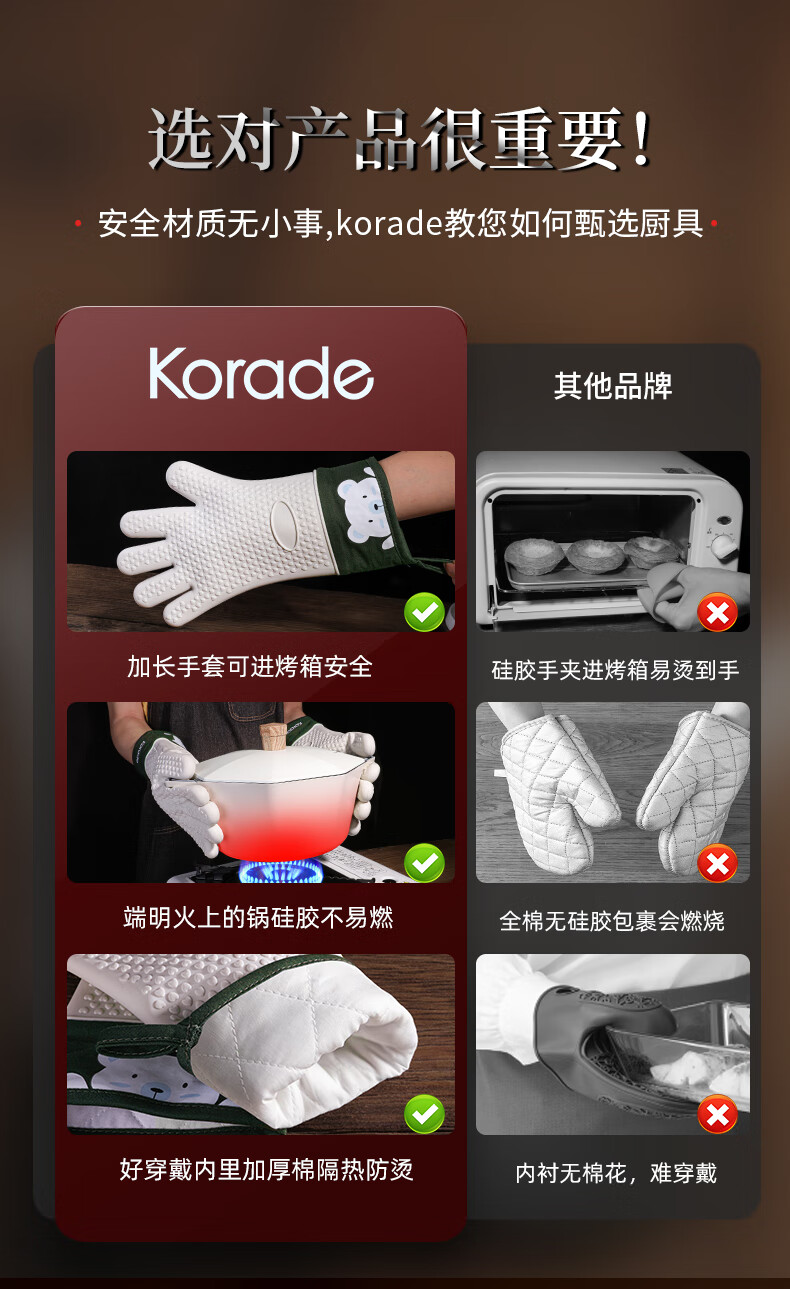 Korade five-finger oven gloves kitchen insulation anti-scalding gloves baking thickened silicone high temperature resistant microwave oven gloves anti-slip silicone anti-scalding gloves (one pair)