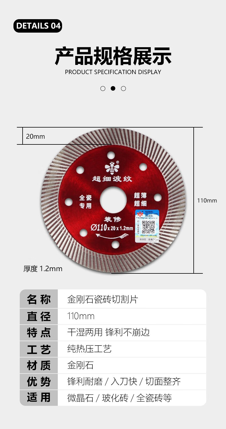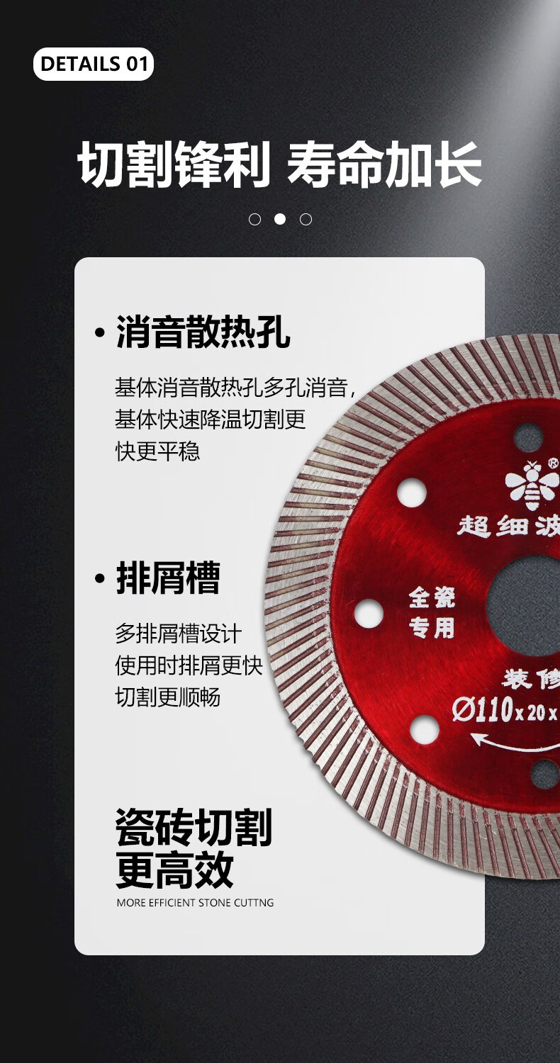 Little Bee ultra-thin ultra-fine ceramic tile cutting blade angle grinder dry cutting microcrystalline stone all-ceramic saw blade cutting machine diamond blade ultra-thin ultra-fine decoration red 110