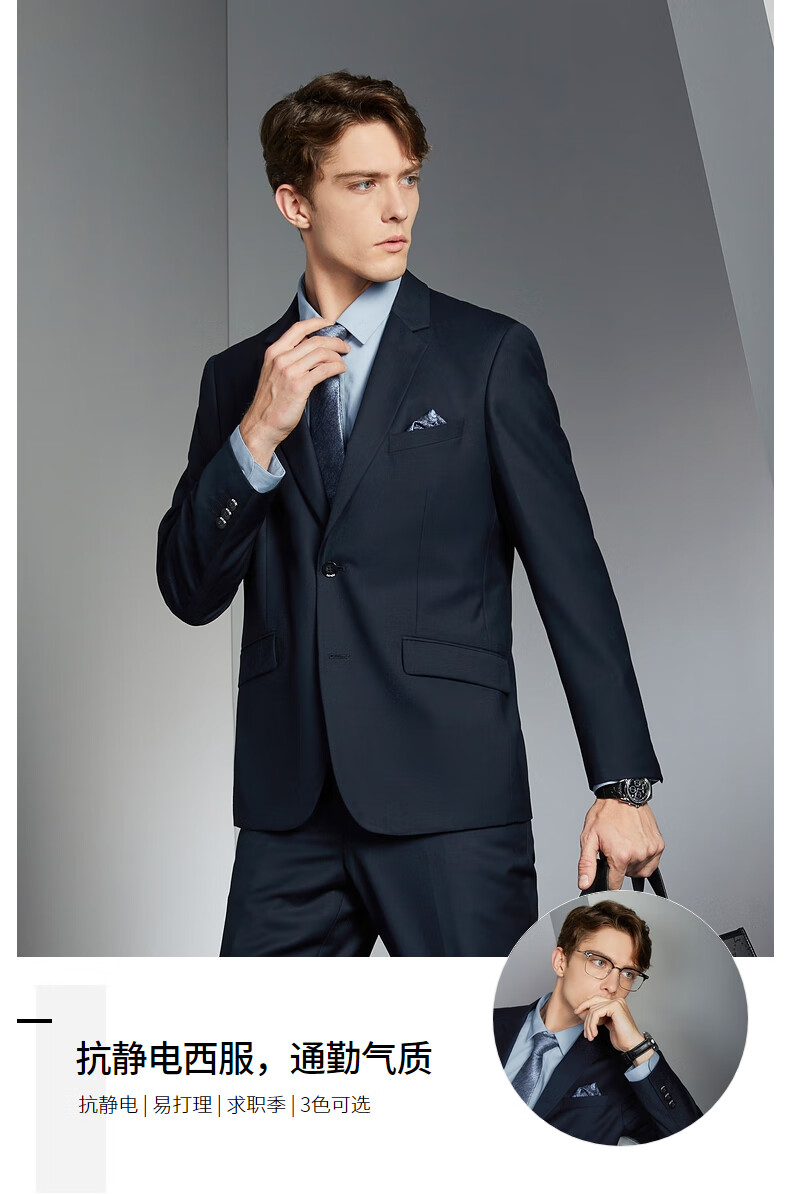 Qipai Men's Suit Suit Men's Spring and Summer New Business Professional Formal Suit Anti-static 1JC70270 Navy Blue 165B (165) 60-65kg