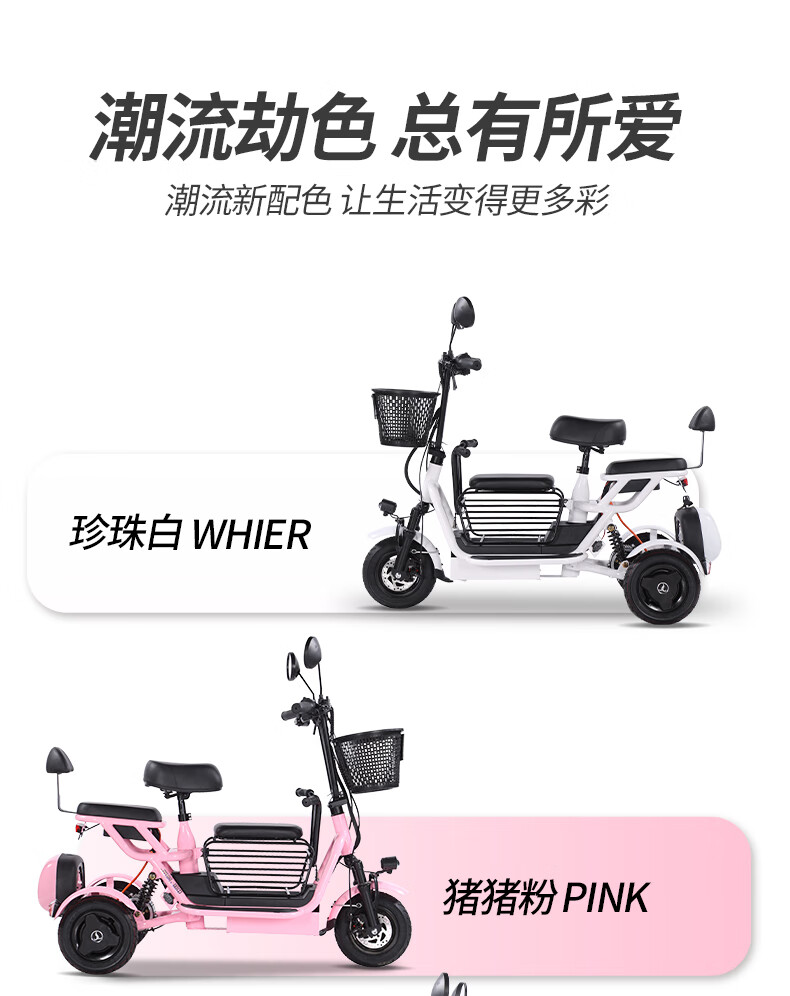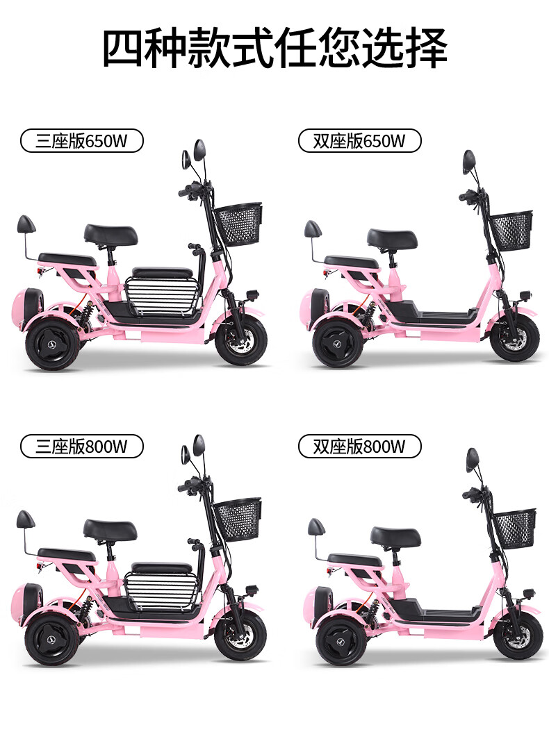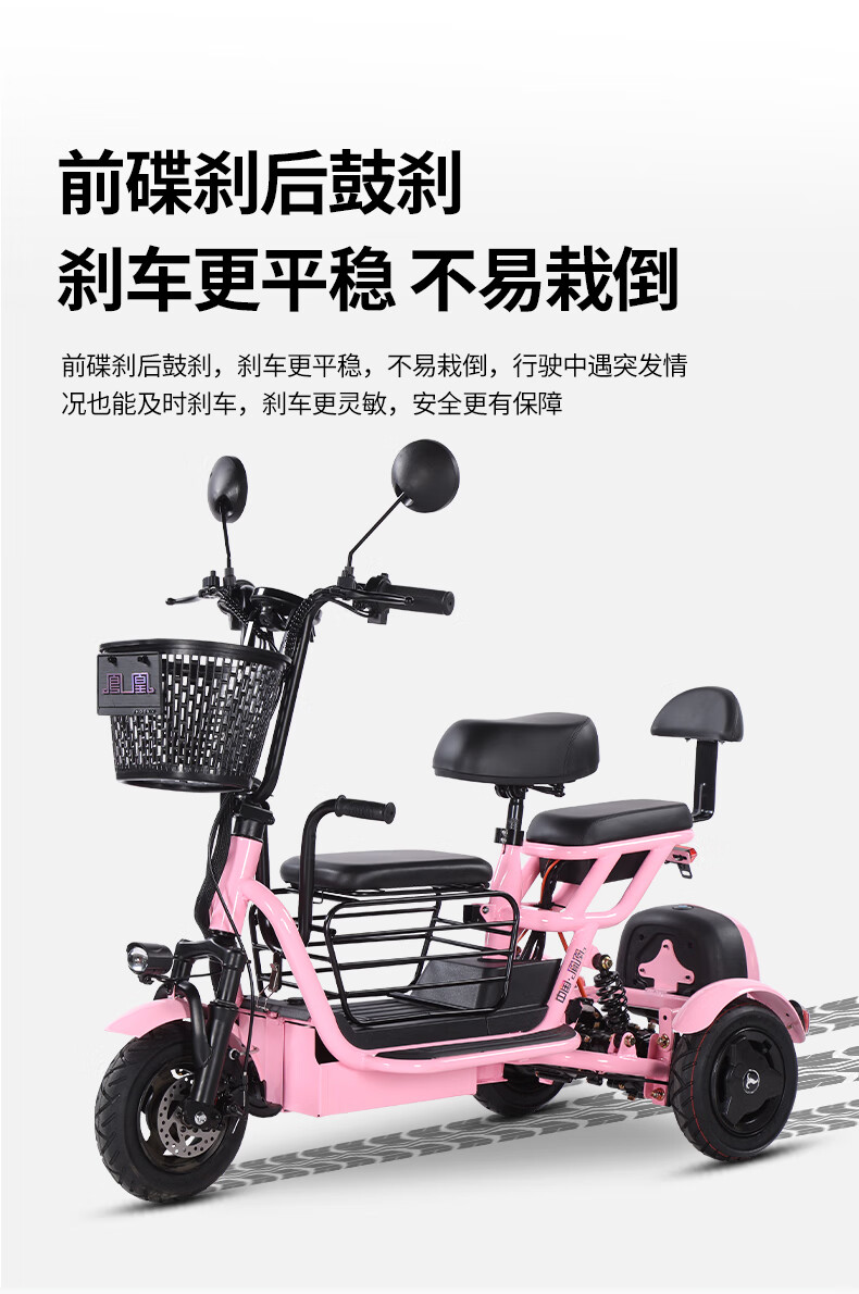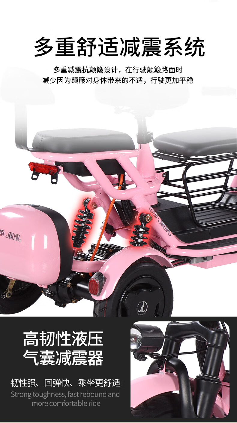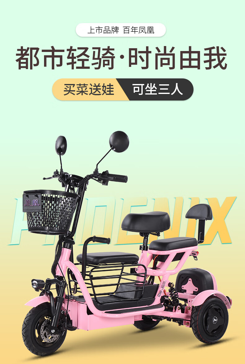 Phoenix Q3 parent-child electric tricycle, household small electric motorcycle, long range, leisure small tricycle, two seats + 800W differential speed + 20A lithium battery + about 50 kilometers