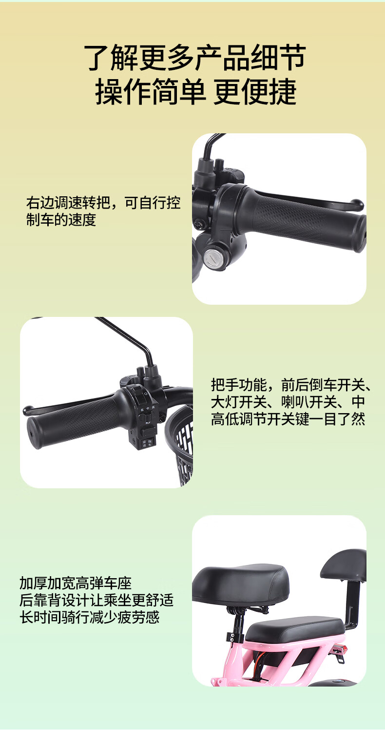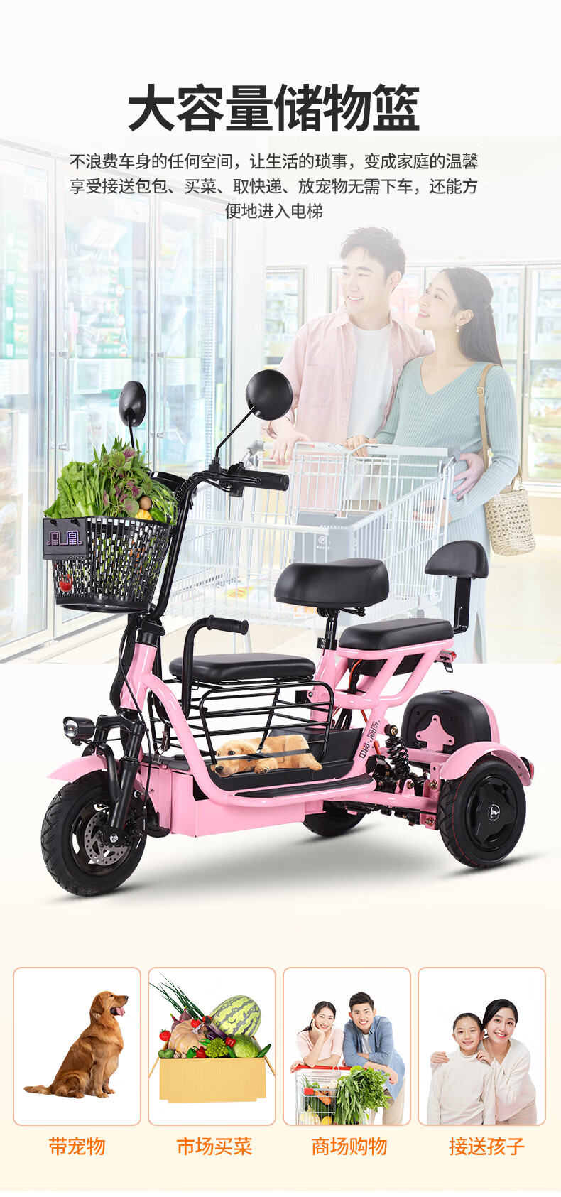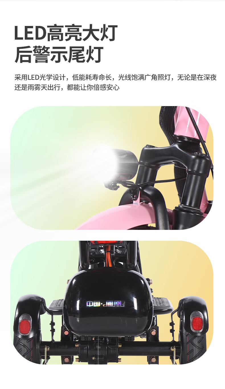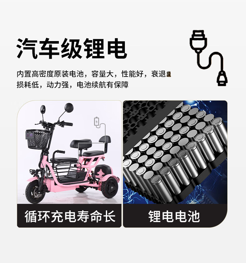 Phoenix Q3 parent-child electric tricycle, household small electric motorcycle, long range, leisure small tricycle, two seats + 800W differential speed + 20A lithium battery + about 50 kilometers