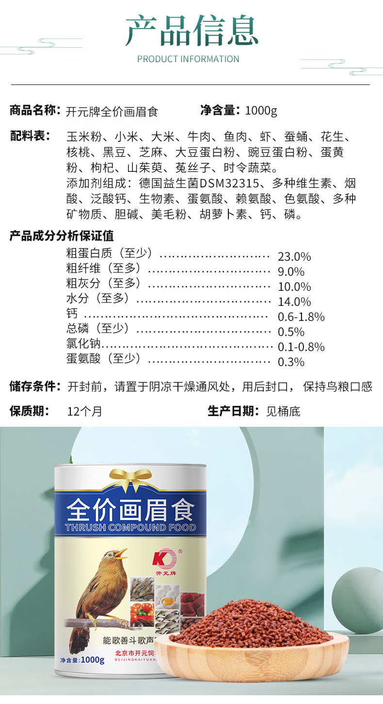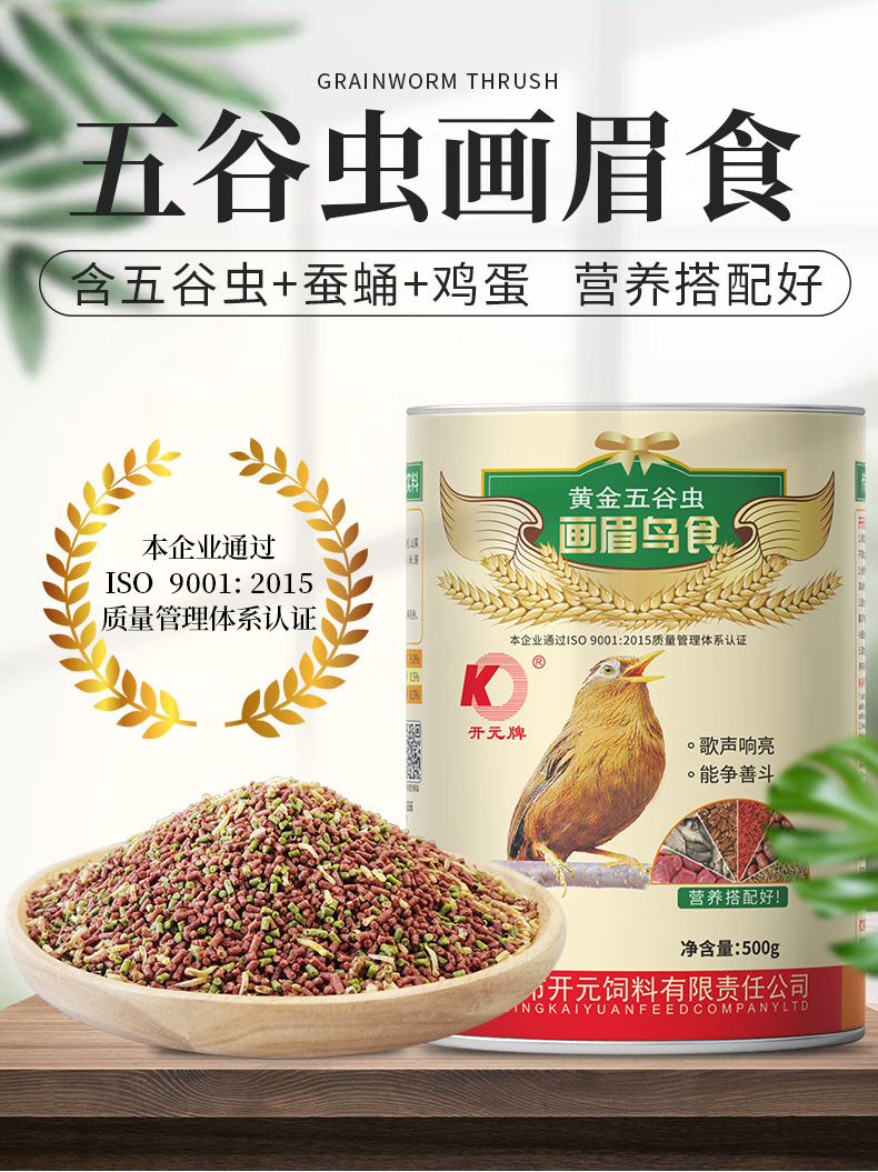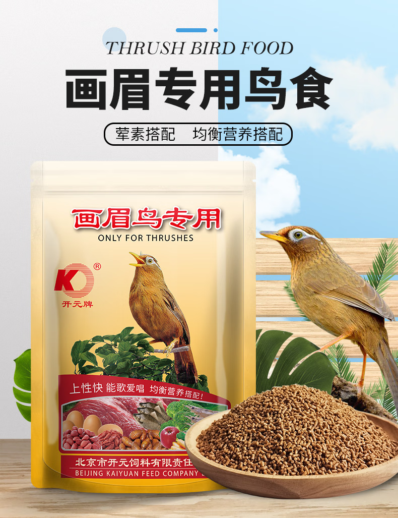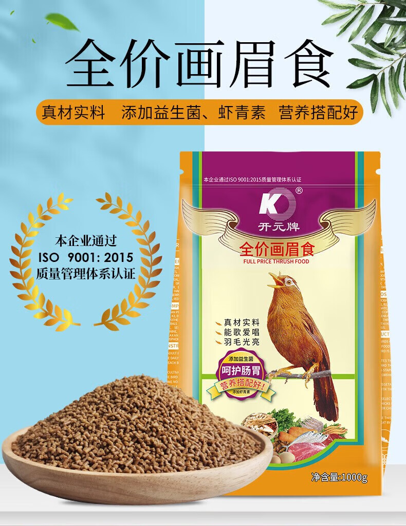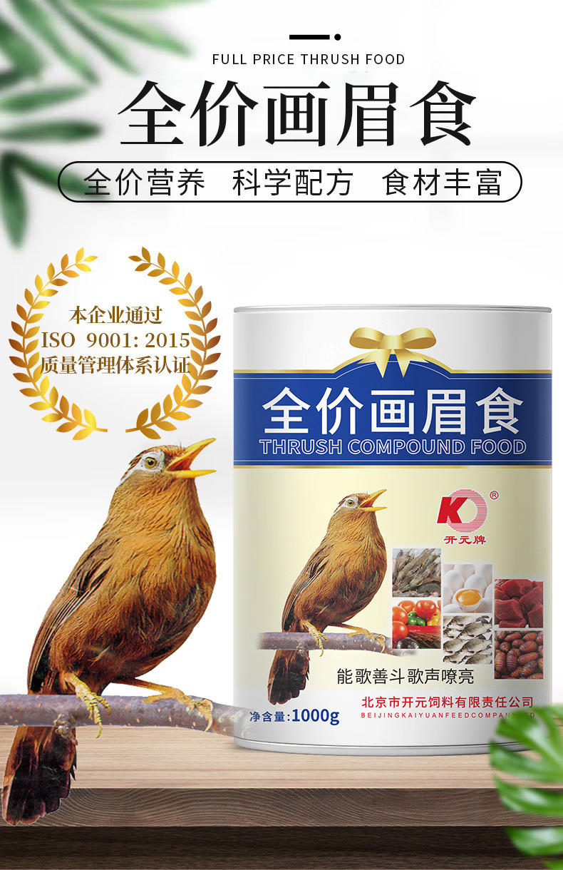 Kaiyuan (KO) thrush special bird food, singing probiotic nutritional feed, natural bird food, full price thrush food 1kg (barrel)