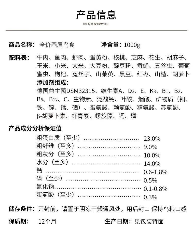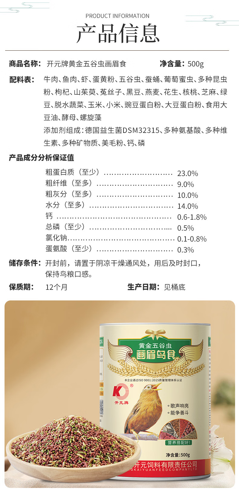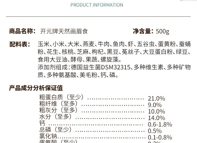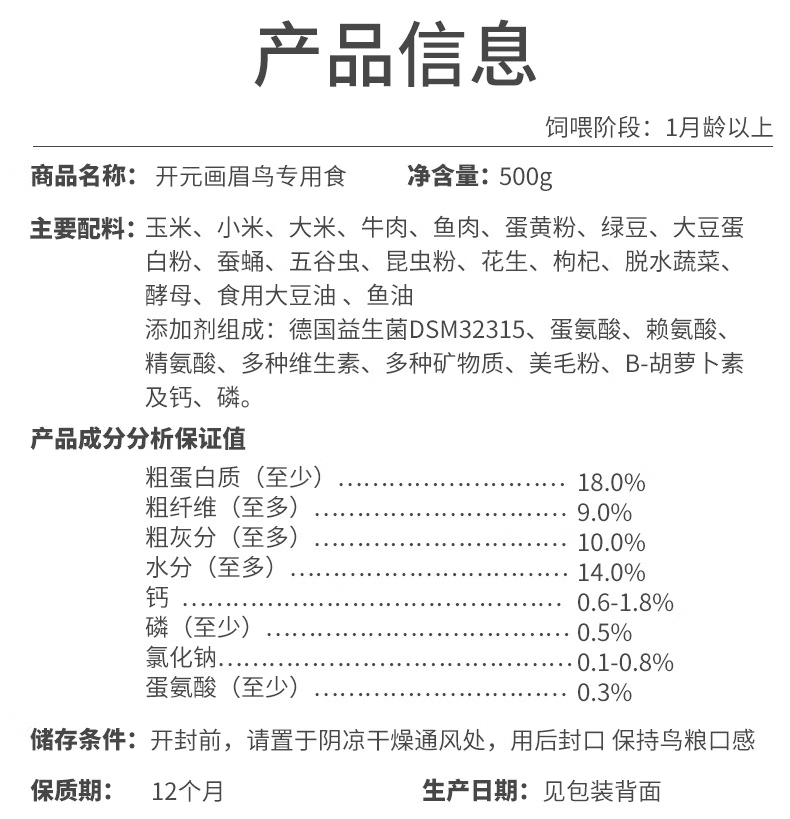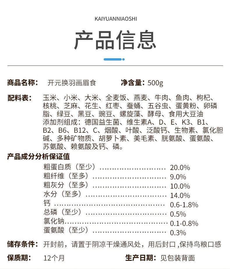 Kaiyuan (KO) thrush special bird food, singing probiotic nutritional feed, natural bird food, full price thrush food 1kg (barrel)