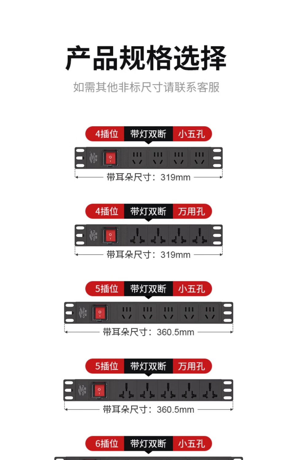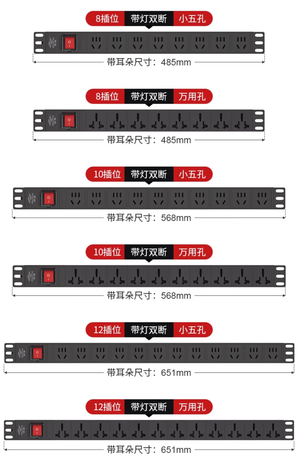 Op PDU cabinet socket switch 8-bit 10A16A4000W industrial track workbench test rack machine room engineering plug-in drag strip board can be customized non-national standard 2-bit 10A double break switch wireless