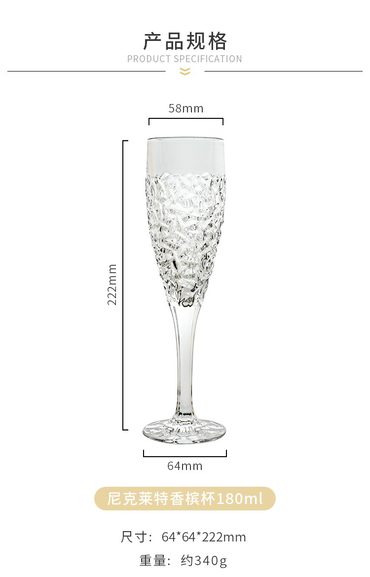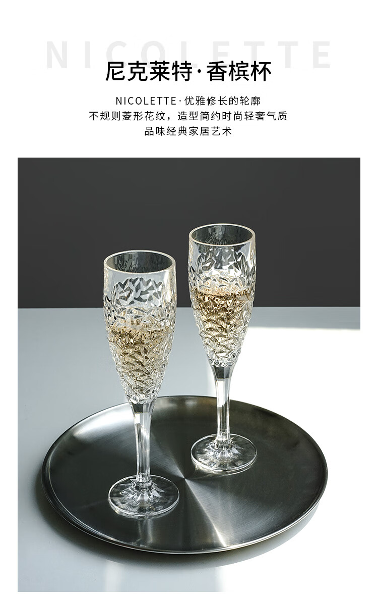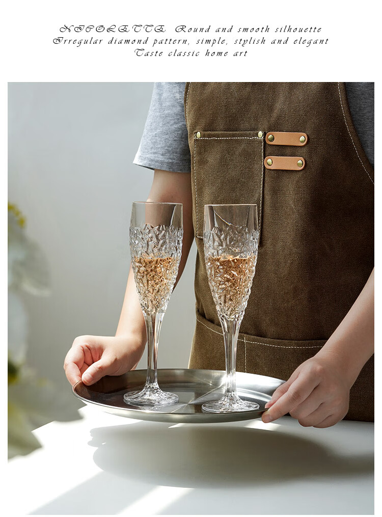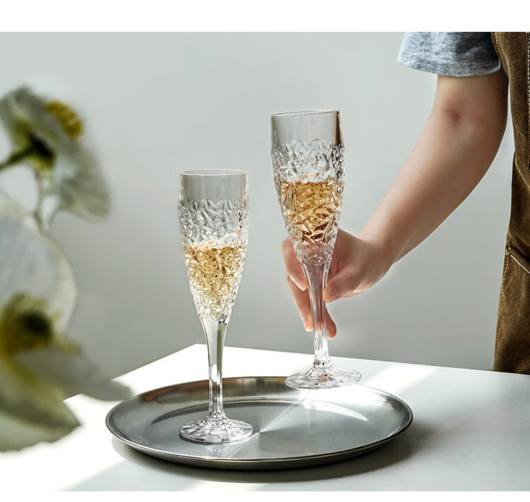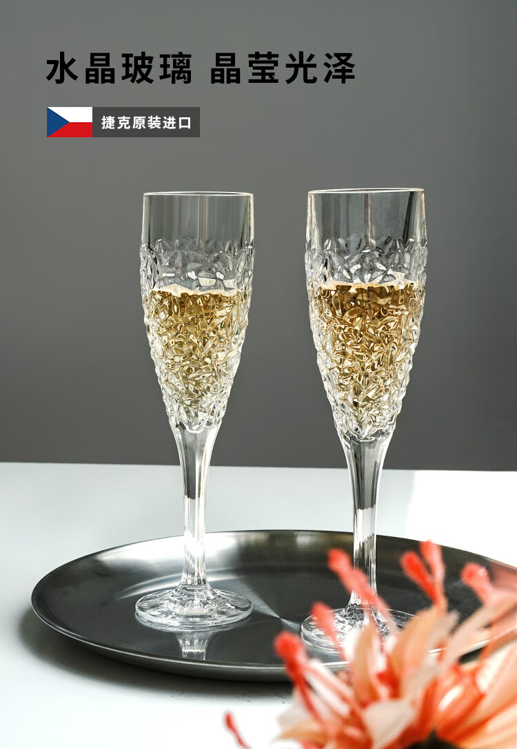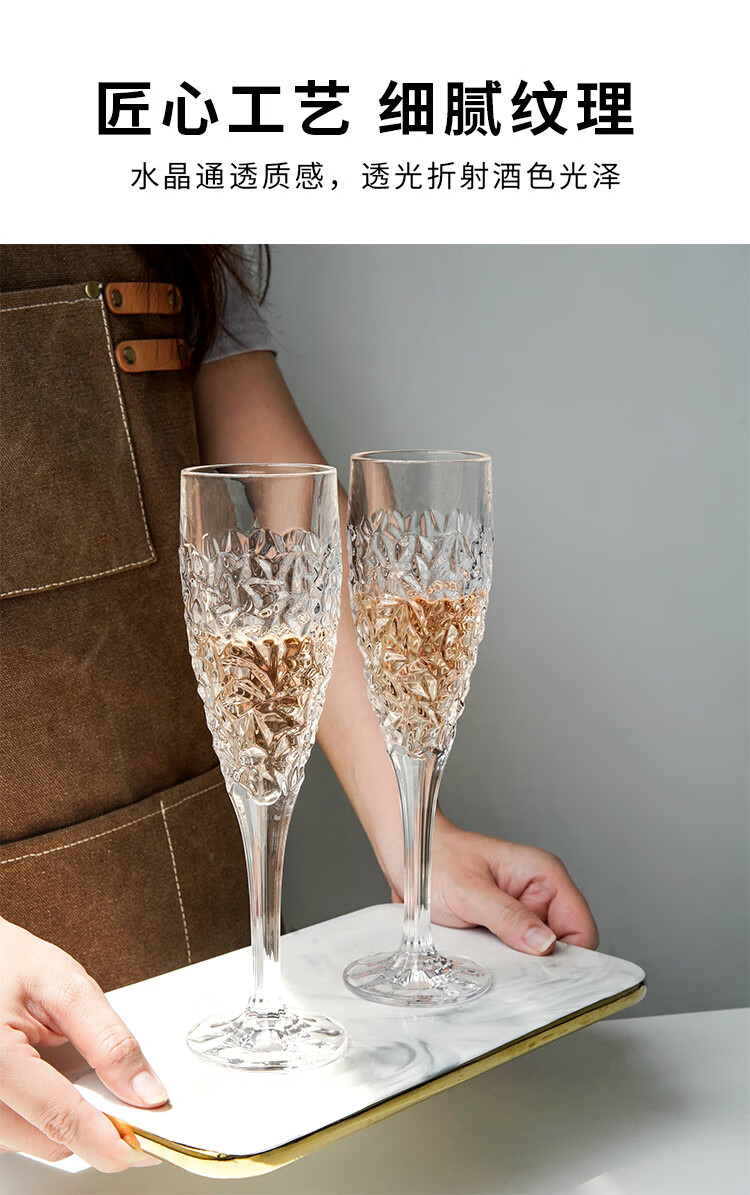 BOHEMIA Czech imported crystal glass Nordic ins high-end champagne glass goblet hand-painted gold frosted wine glass Nicollet champagne glass 180ml 2 pieces
