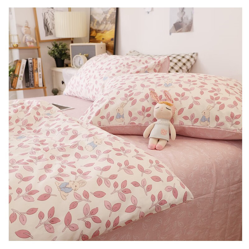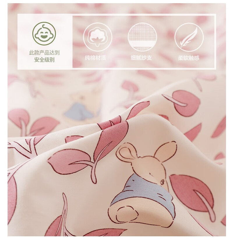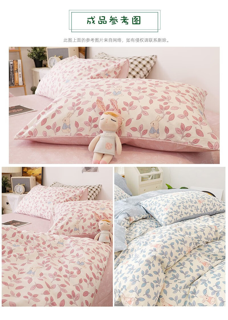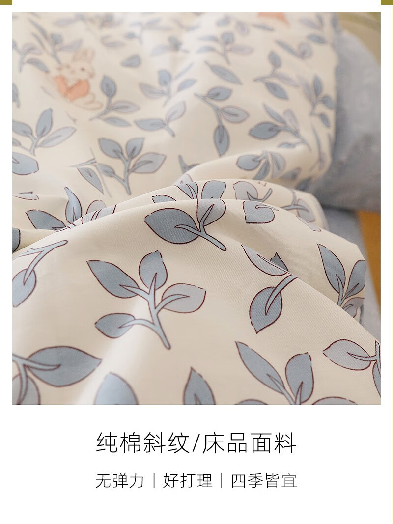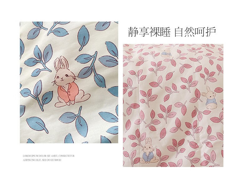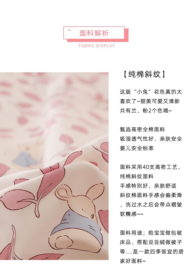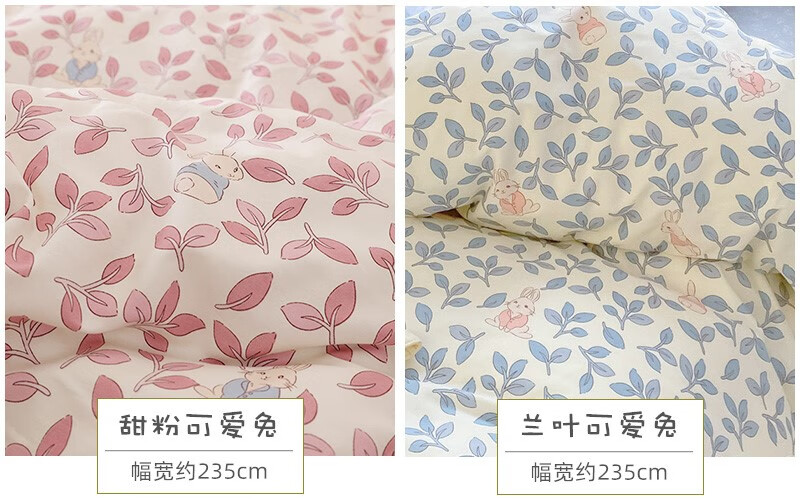 Linghan Xinjiang cotton bed sheet fabric, pure cotton twill fabric, Xinjiang long-staple cotton bed sheet quilt set, baby blanket, cartoon soft orchid leaf cute rabbit (half a meter price)