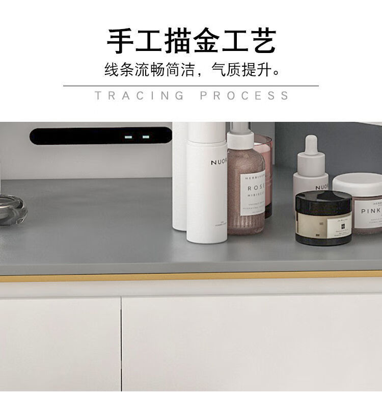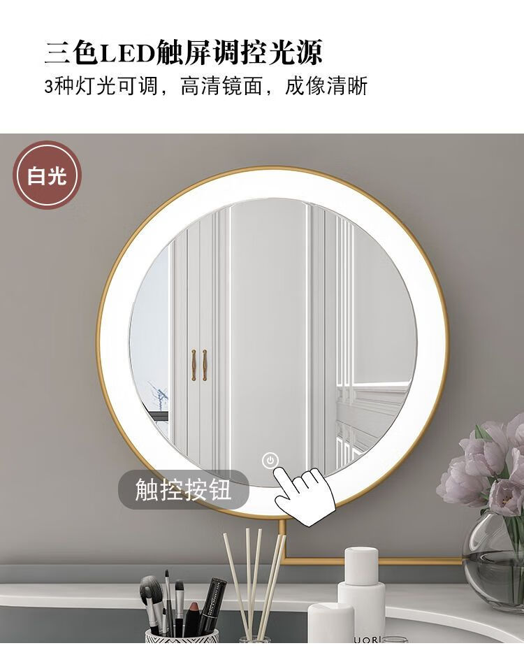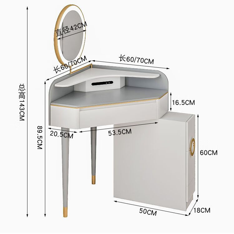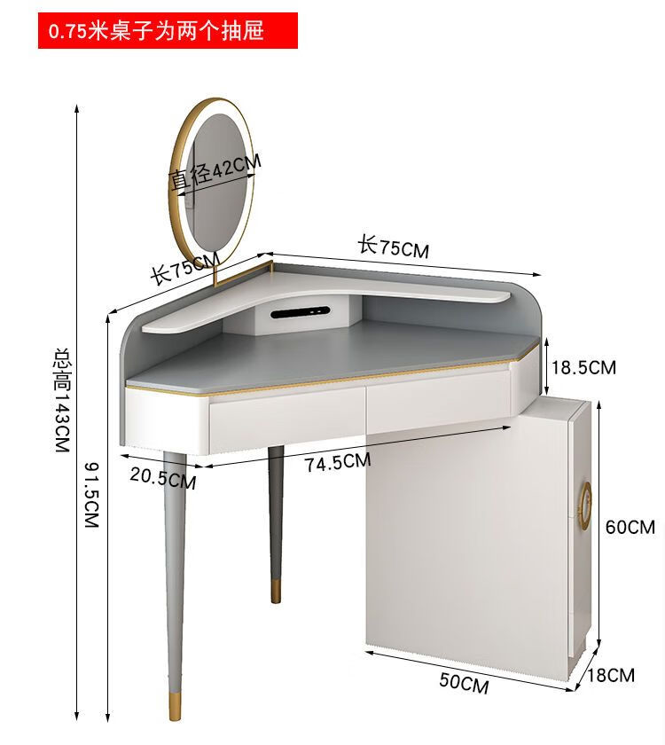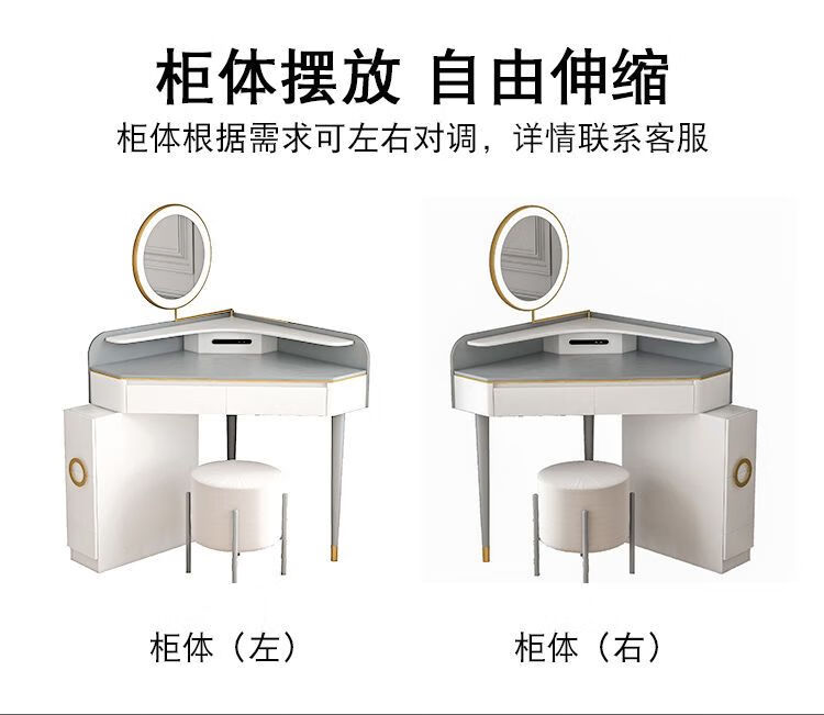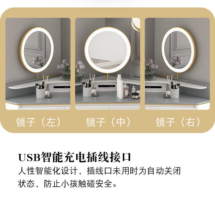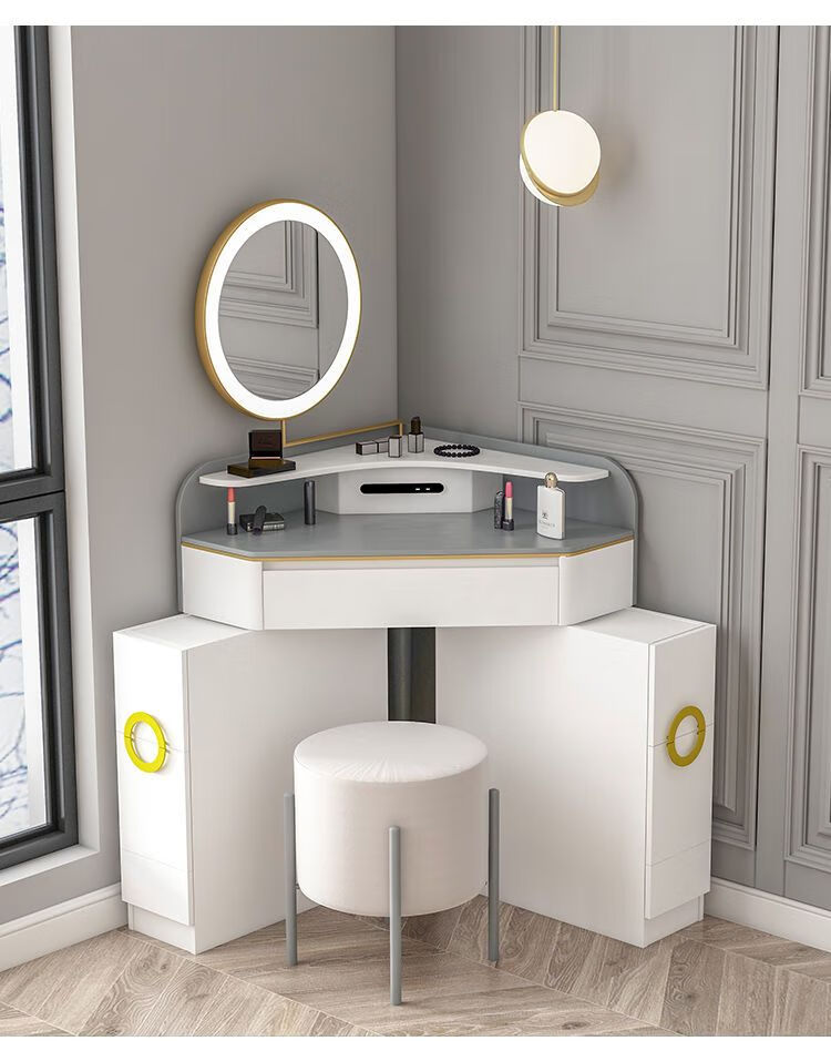 Shanghuashi Dressing Table Bedroom Corner Light Luxury Triangle Internet Celebrity Ins Style Corner Mini Dressing Table LED Light Small Dressing Table 0.6 Meter Dressing Table (Free Makeup Stool)