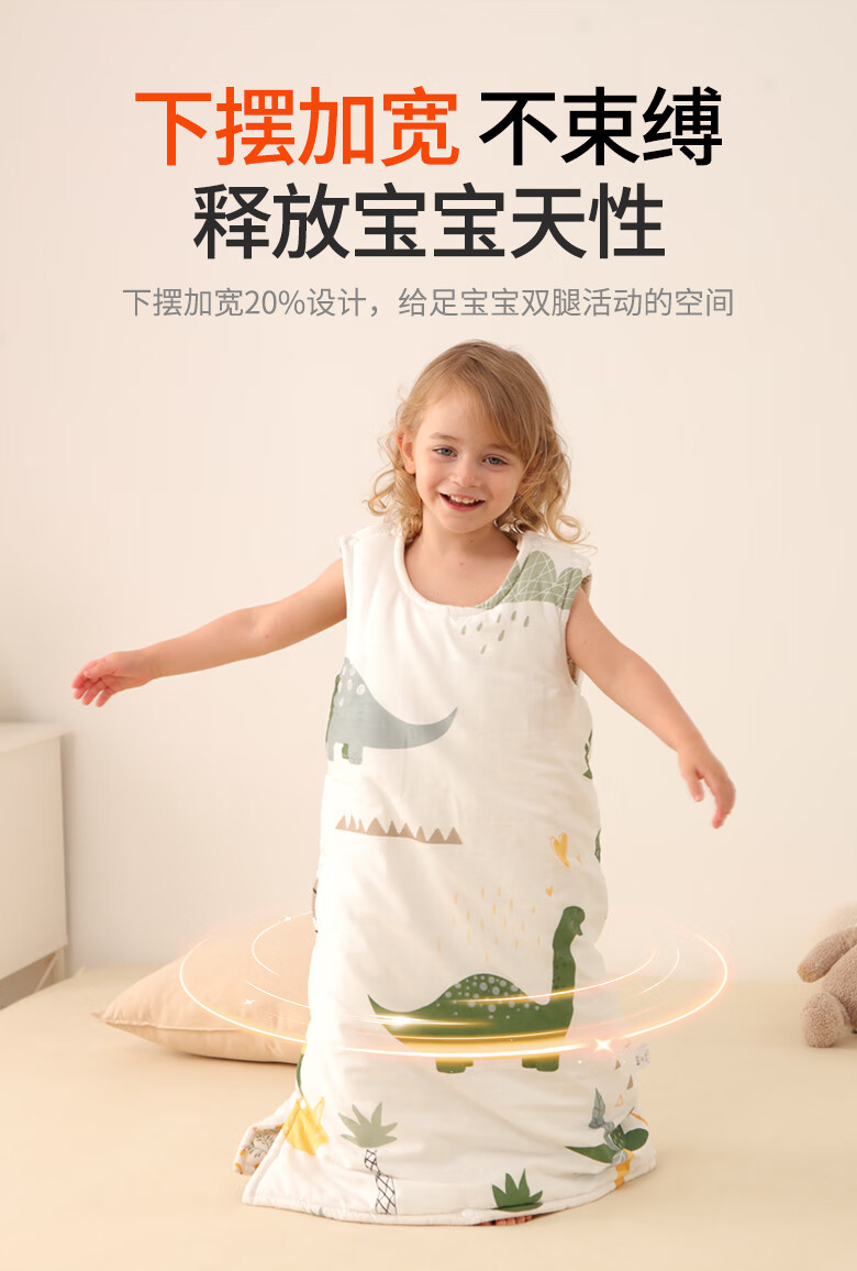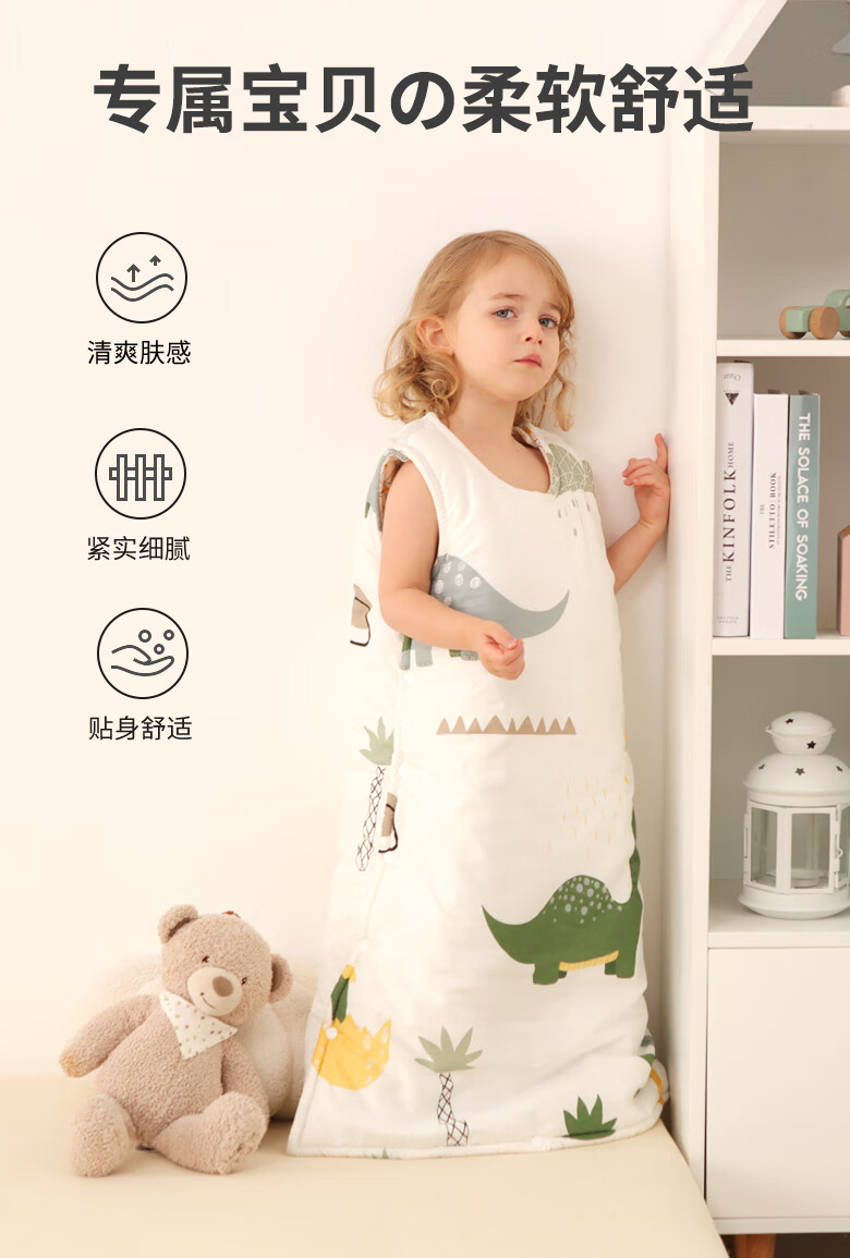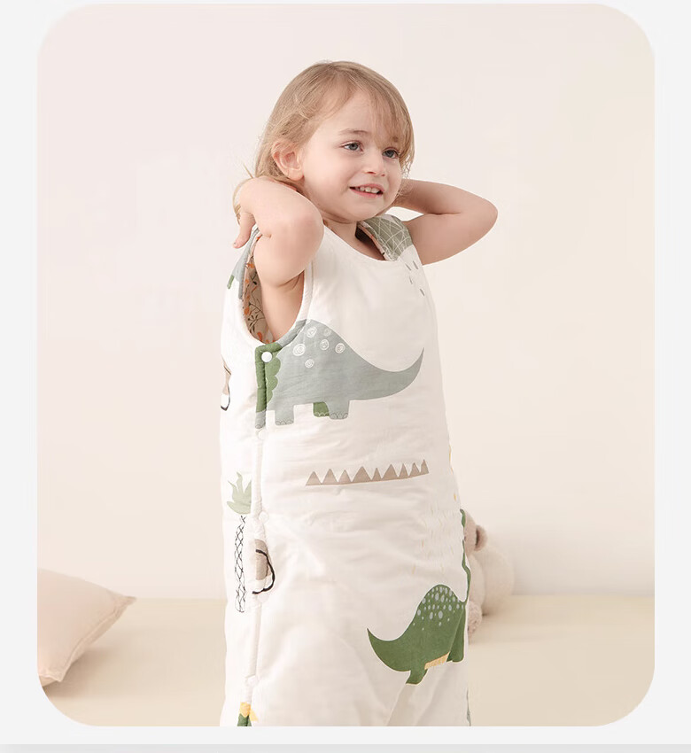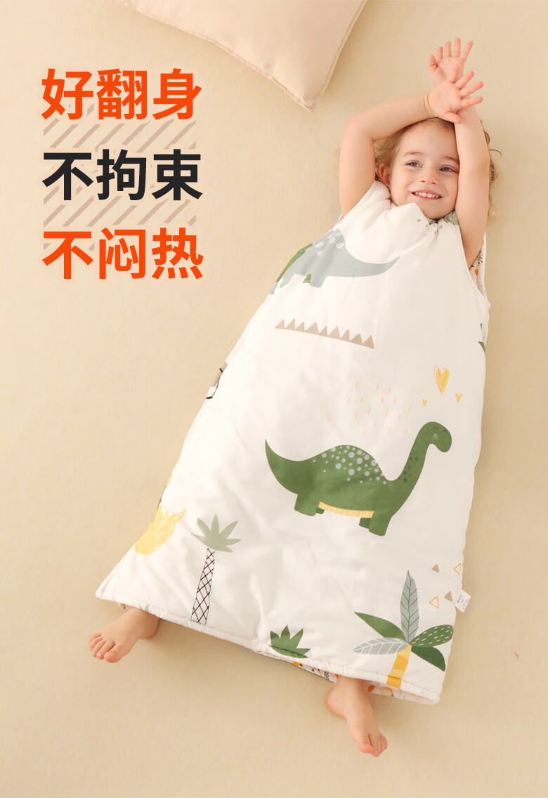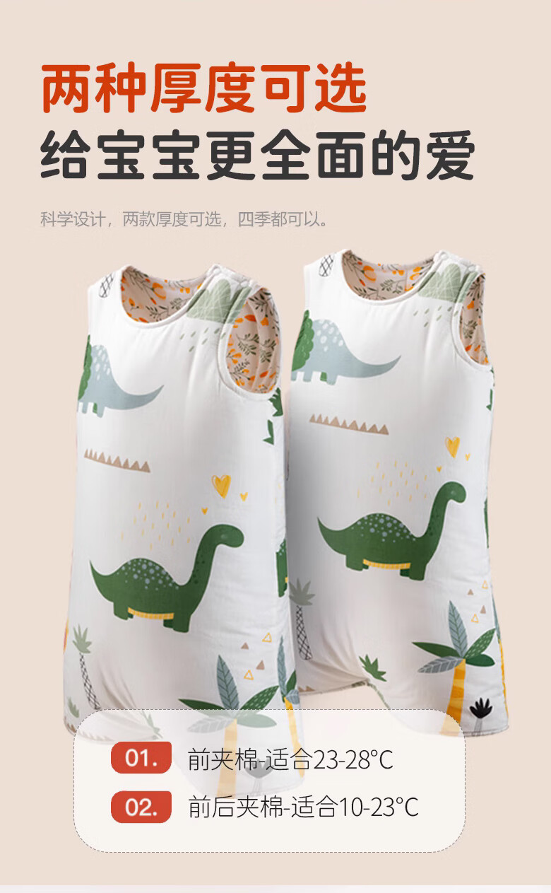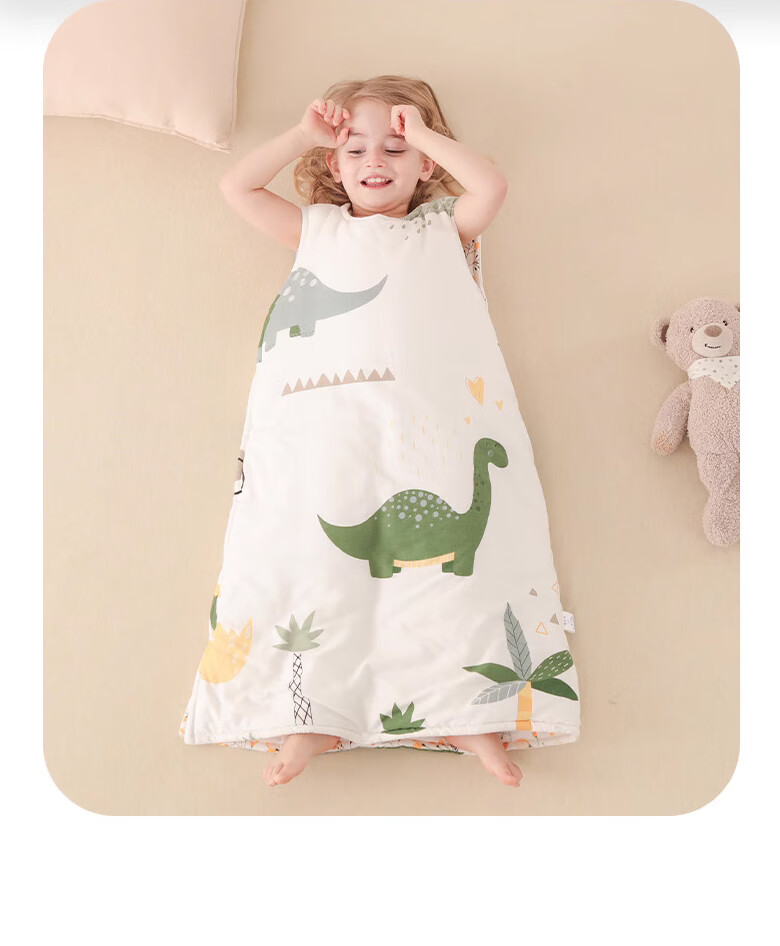 Badai Bear sleeping bag for middle and large children in autumn and winter thick cotton sleeveless children's baby air-conditioned room baby vest-type anti-kicking quilt Dinosaur Paradise (front quilted and back no cotton) S size recommended 0-2 years old sleeping bag total length 70cm