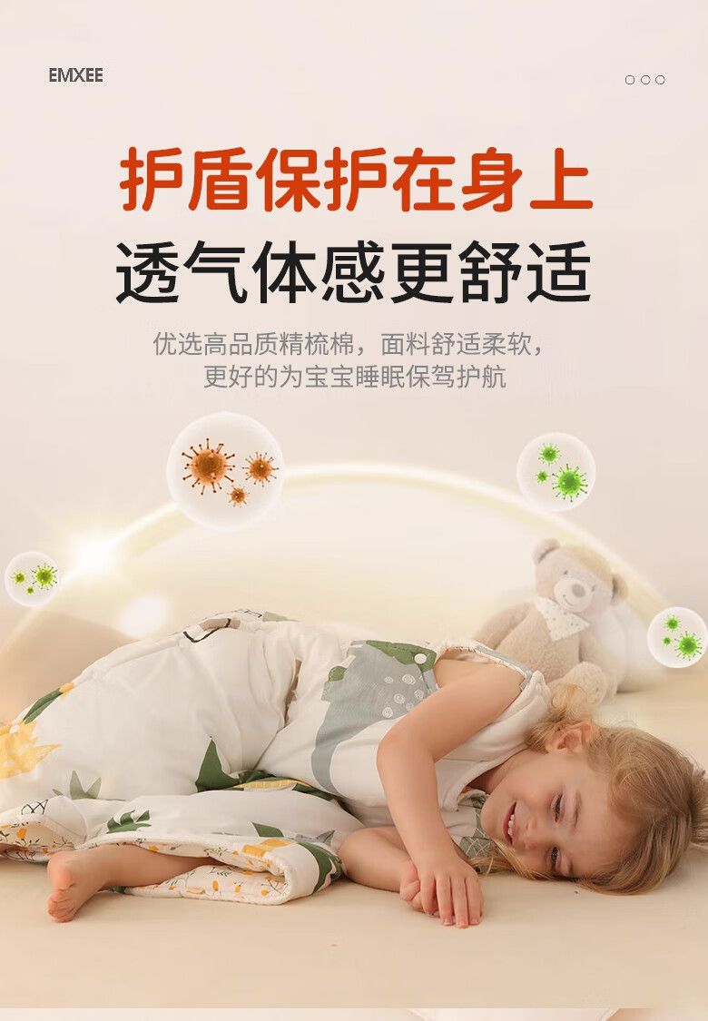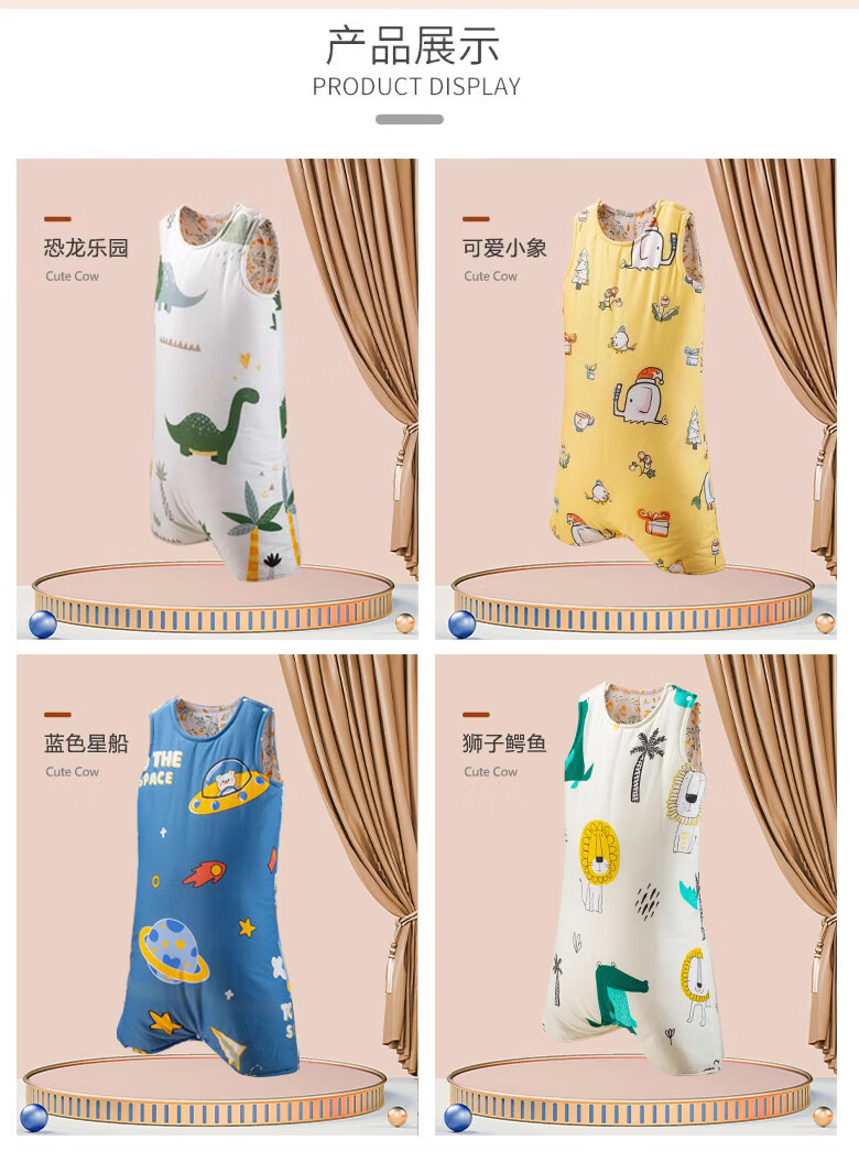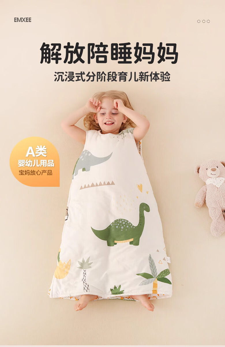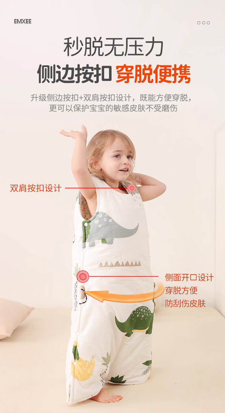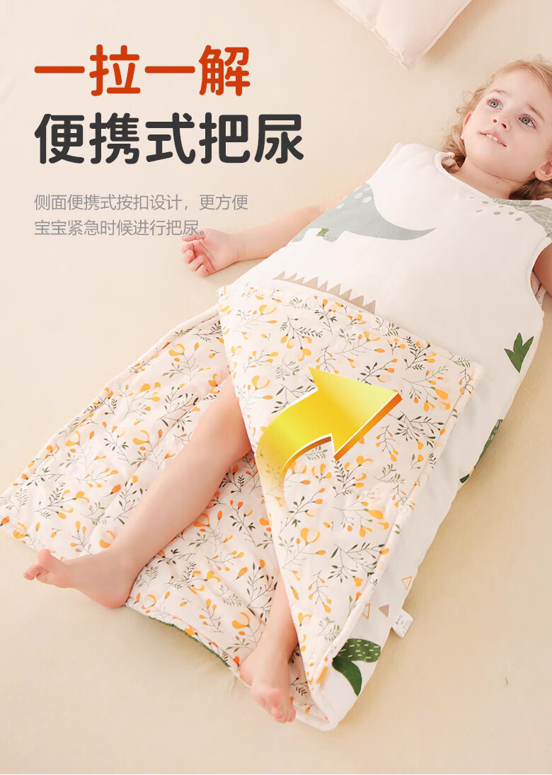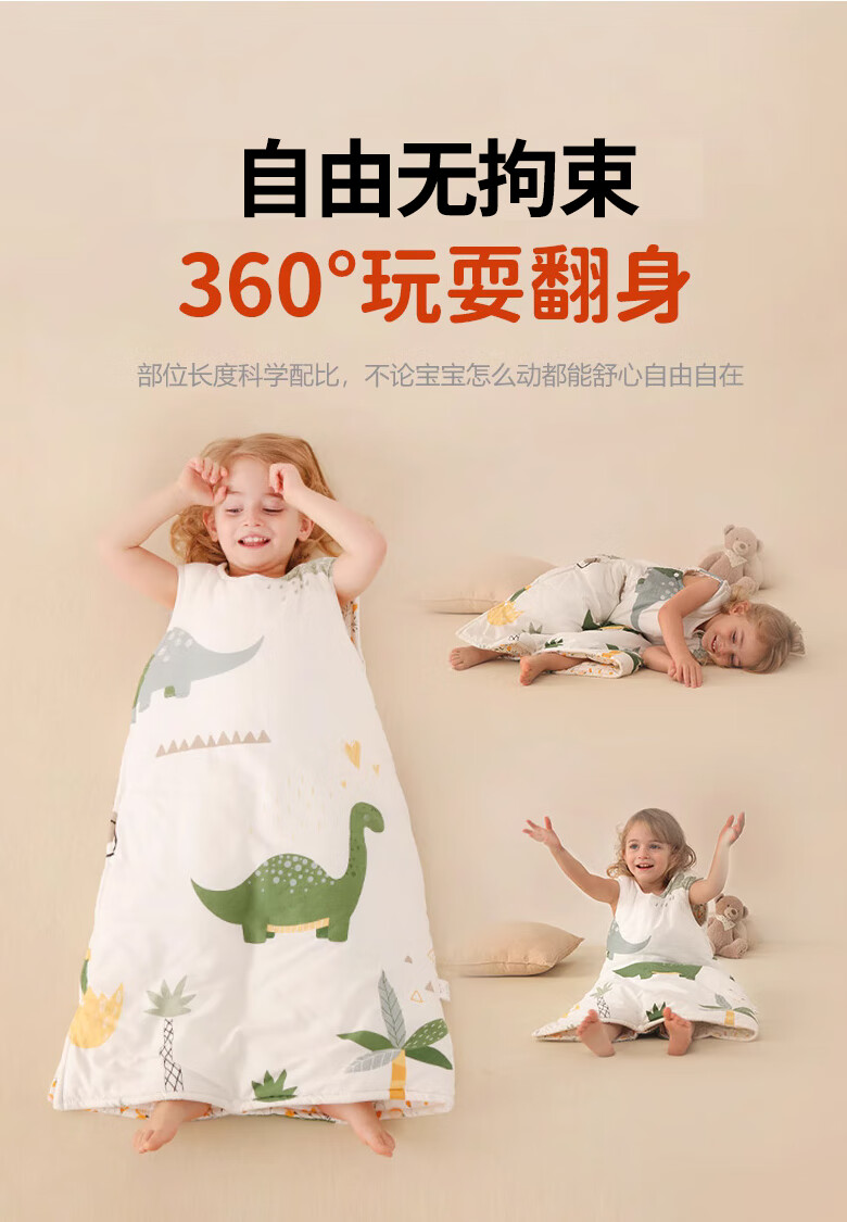 Badai Bear sleeping bag for middle and large children in autumn and winter thick cotton sleeveless children's baby air-conditioned room baby vest-type anti-kicking quilt Dinosaur Paradise (front quilted and back no cotton) S size recommended 0-2 years old sleeping bag total length 70cm