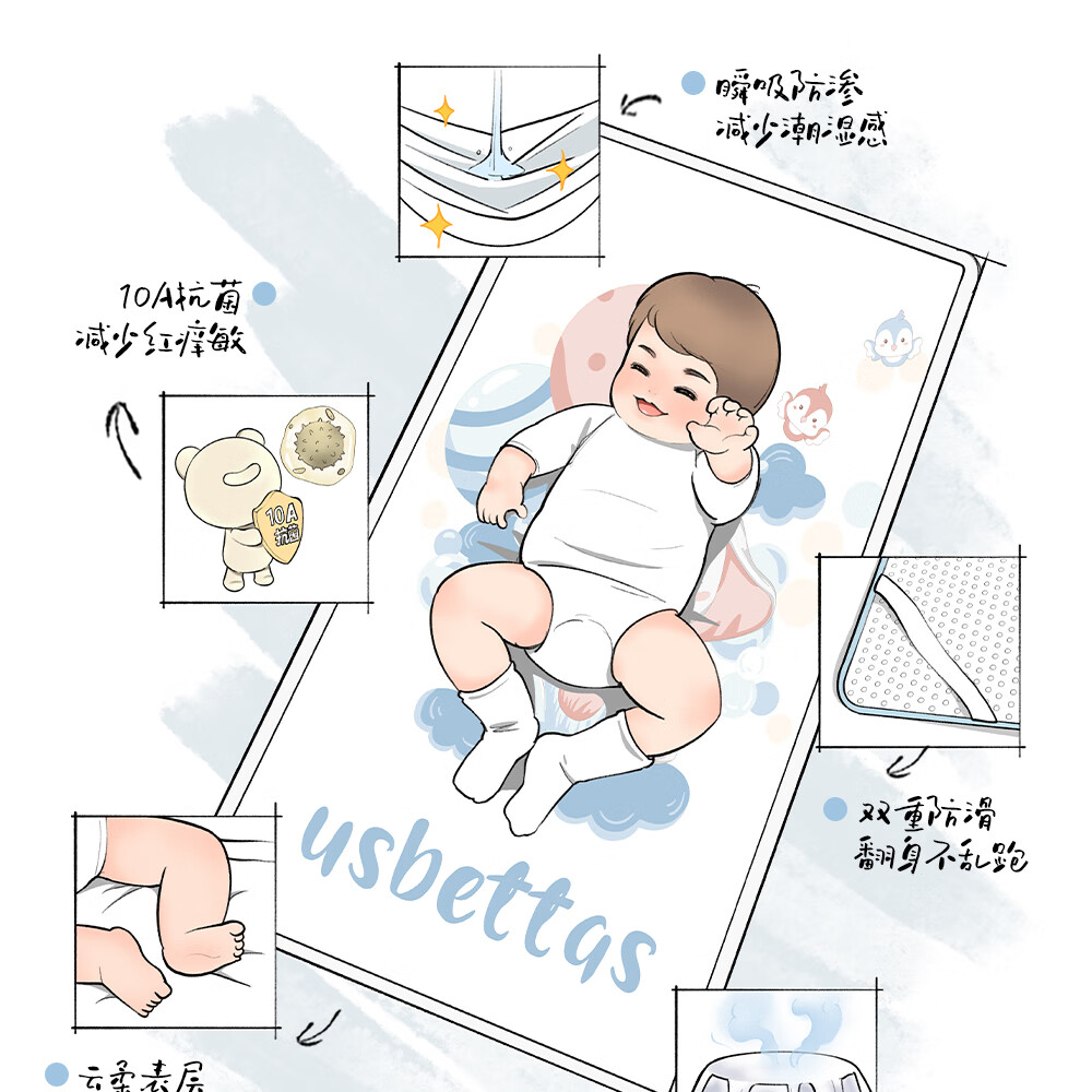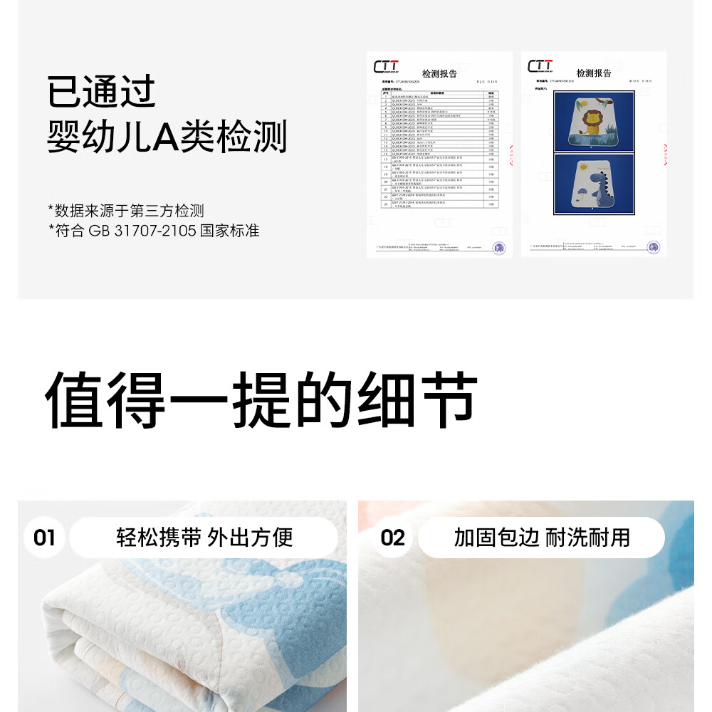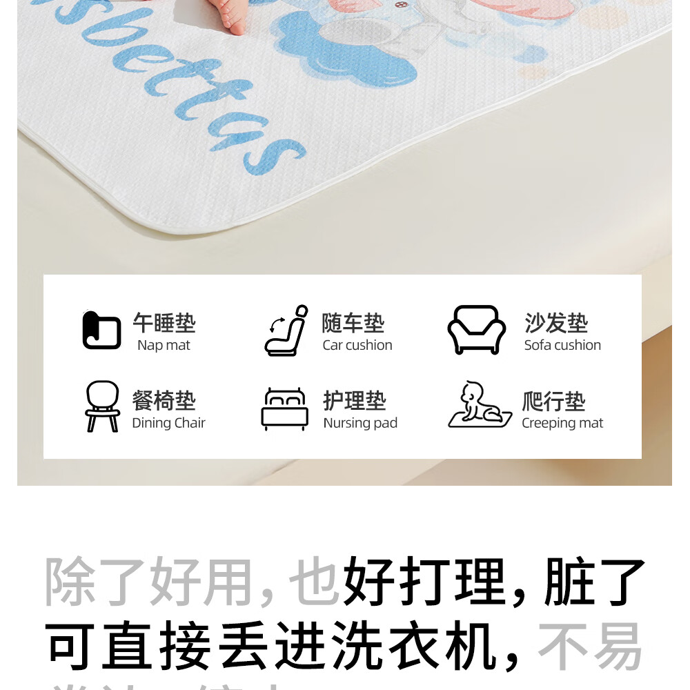 Betis baby diaper pad washable baby kindergarten mattress adult care mattress aunt pad urine-proof and anti-fouling sheets Dilo Dinosaur double-sided cotton 45x30cm