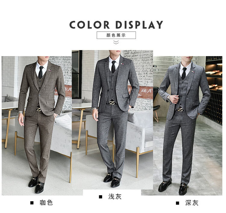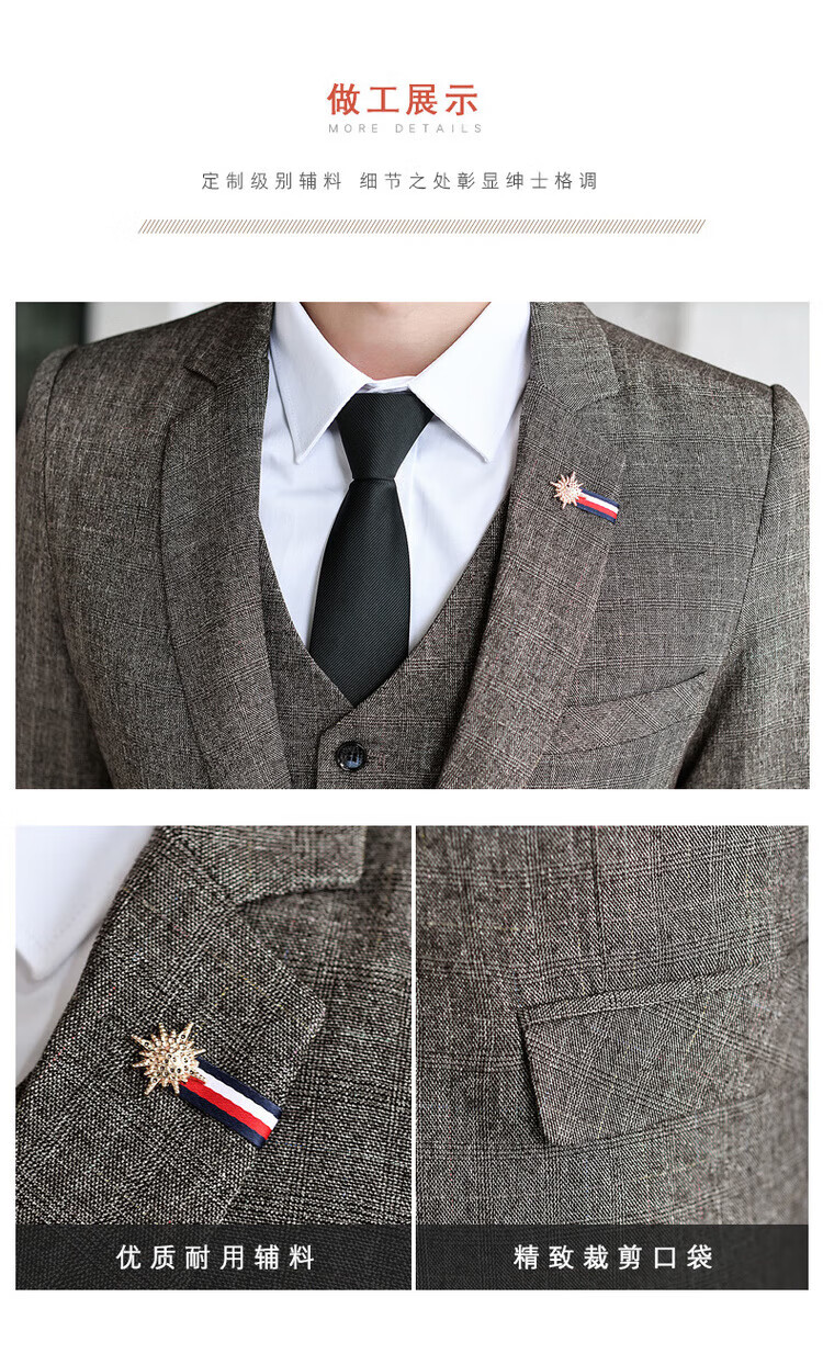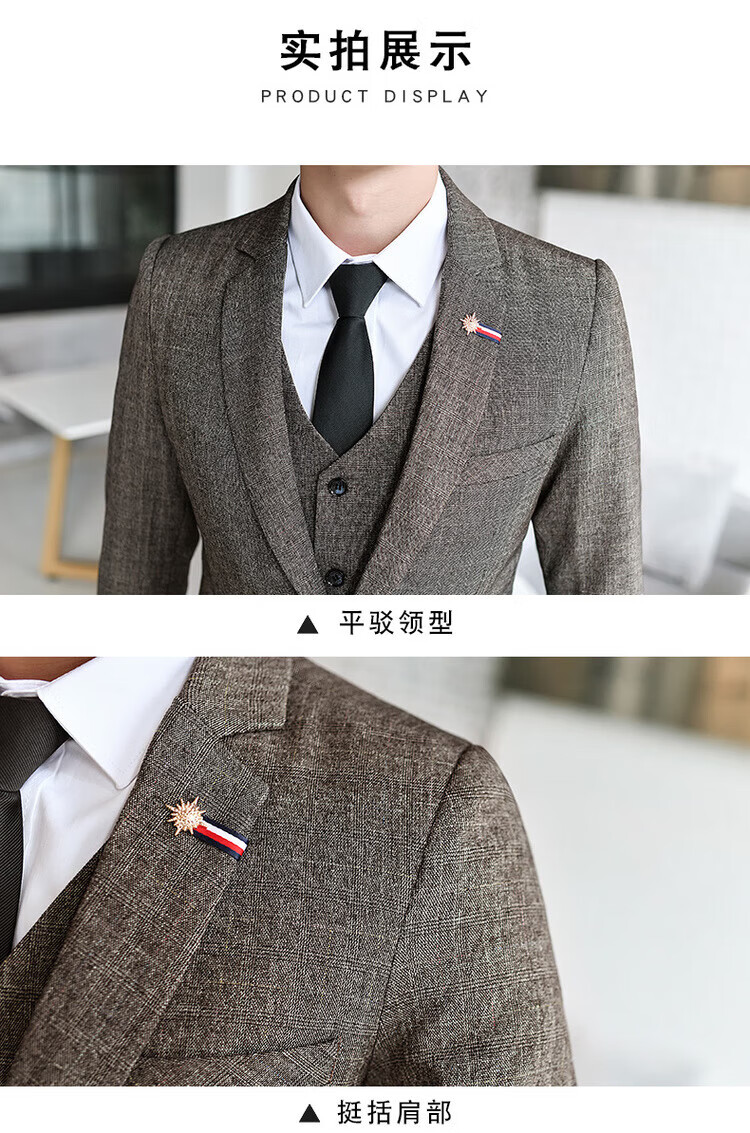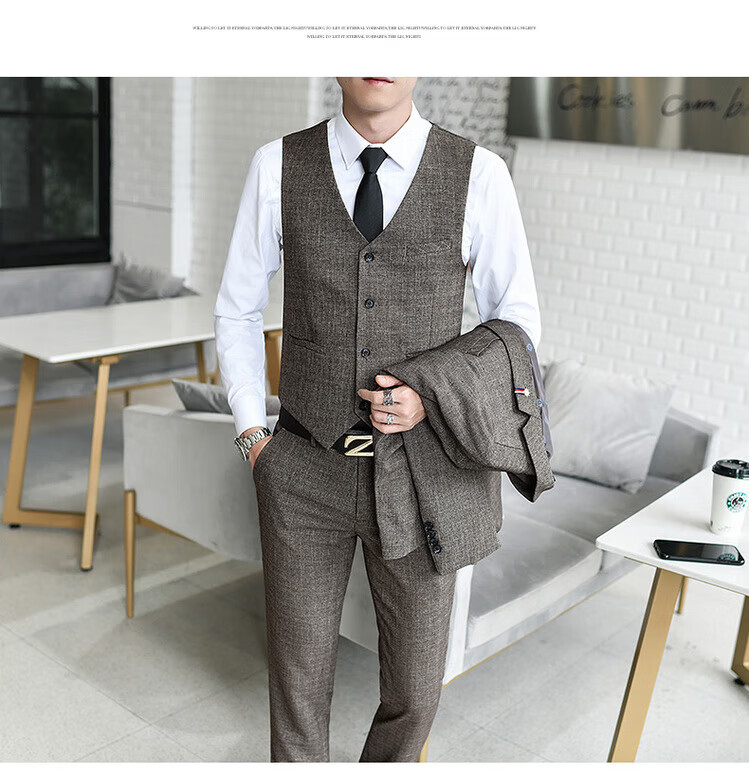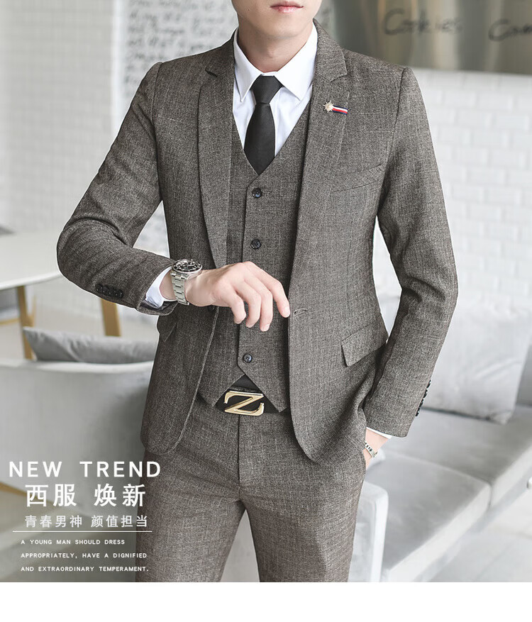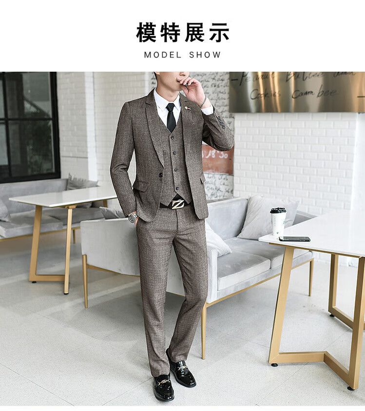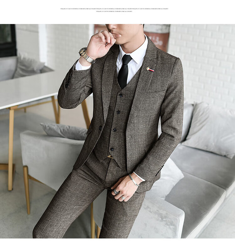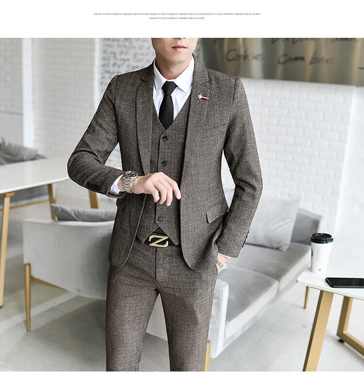 Pierre Cardin Young Men's Suit Korean Style Slim Men's Casual Three-piece Groomsmen and Grooms Wedding Dress Suit Brown Three-piece Suit (Top Pants Shirt) with XL 31120-135Jin Jin is equal to 0.5 kg
