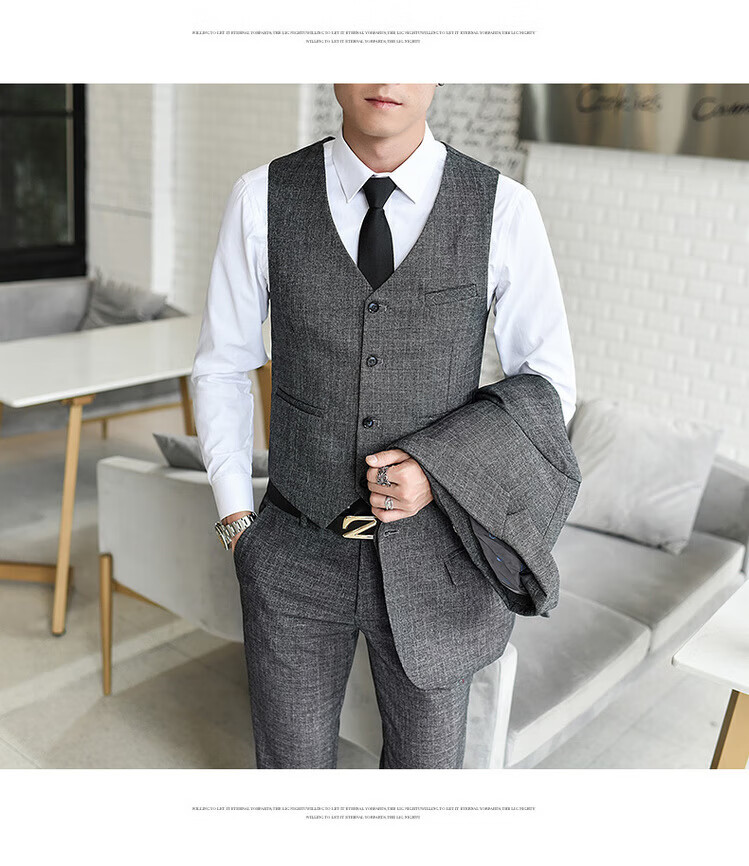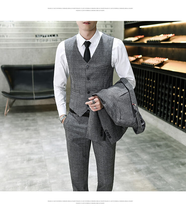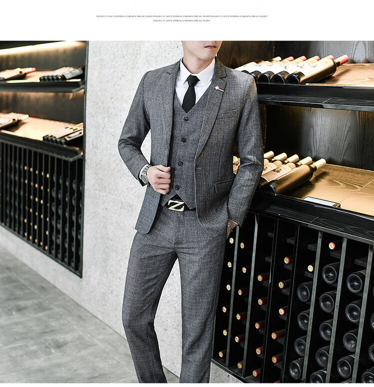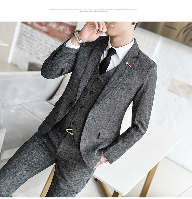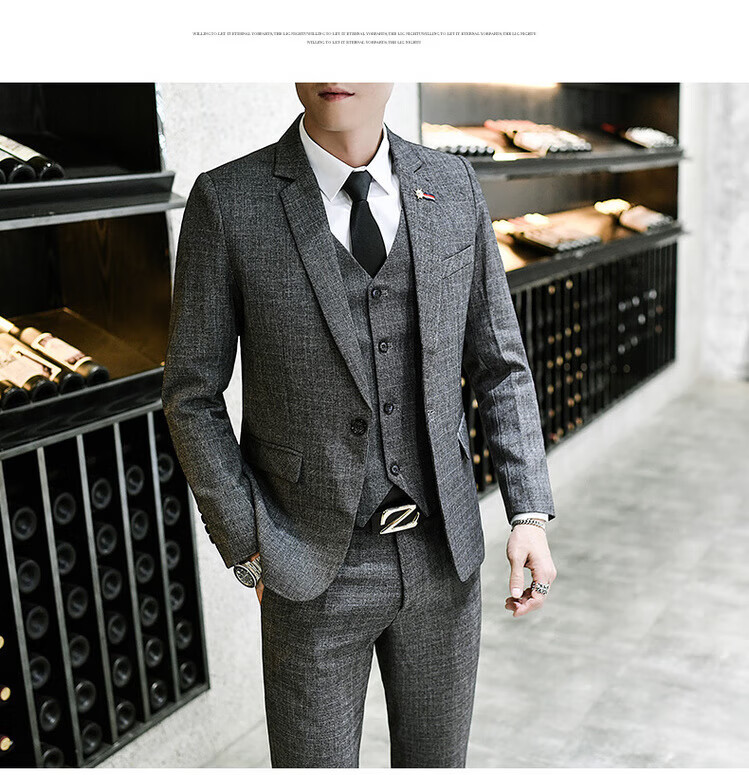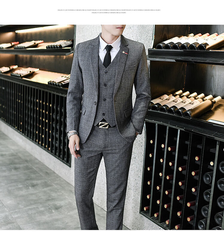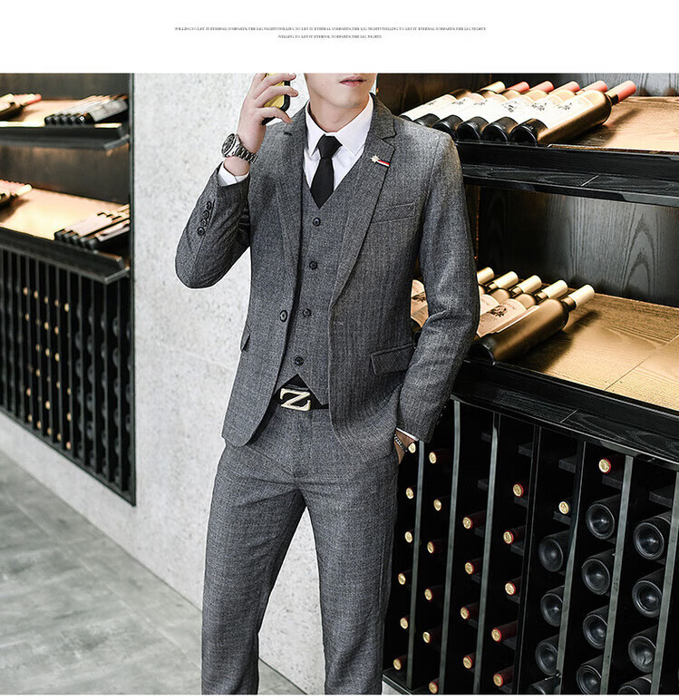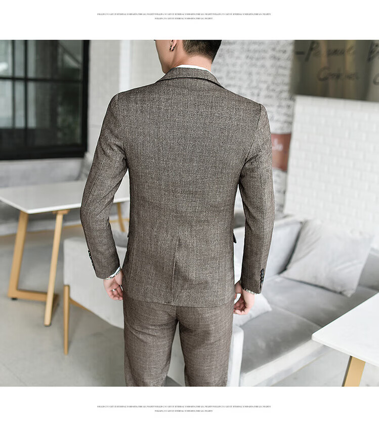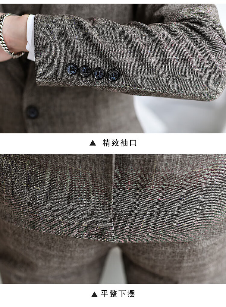 Pierre Cardin Young Men's Suit Korean Style Slim Men's Casual Three-piece Groomsmen and Grooms Wedding Dress Suit Brown Three-piece Suit (Top Pants Shirt) with XL 31120-135Jin Jin is equal to 0.5 kg
