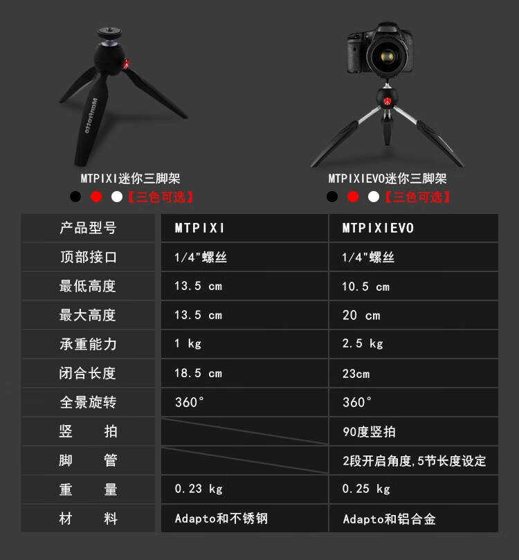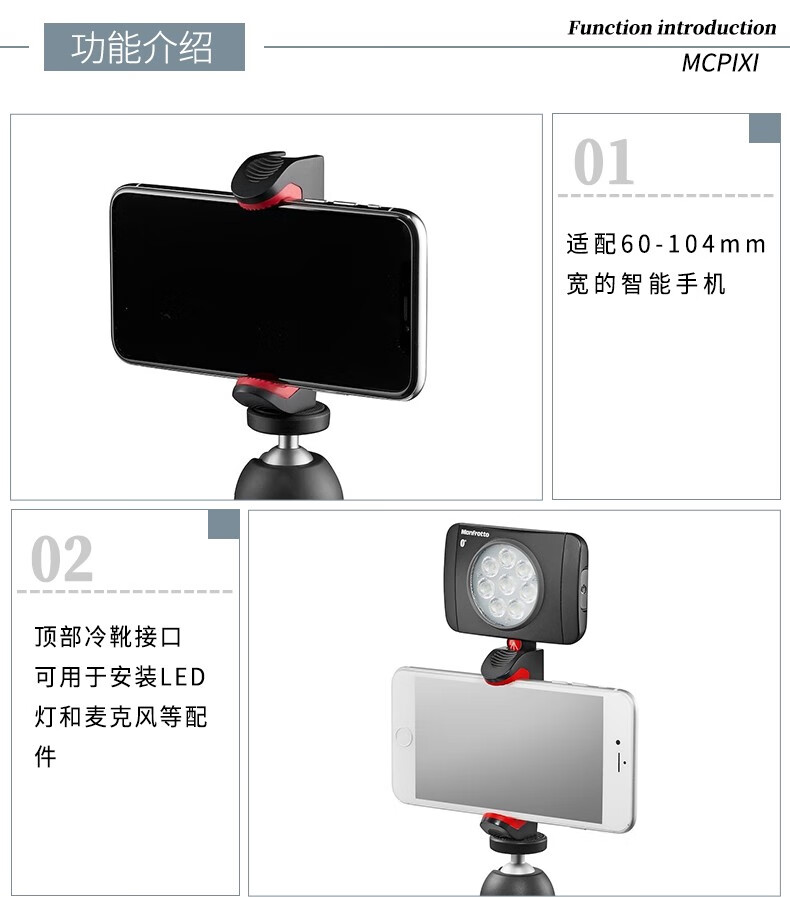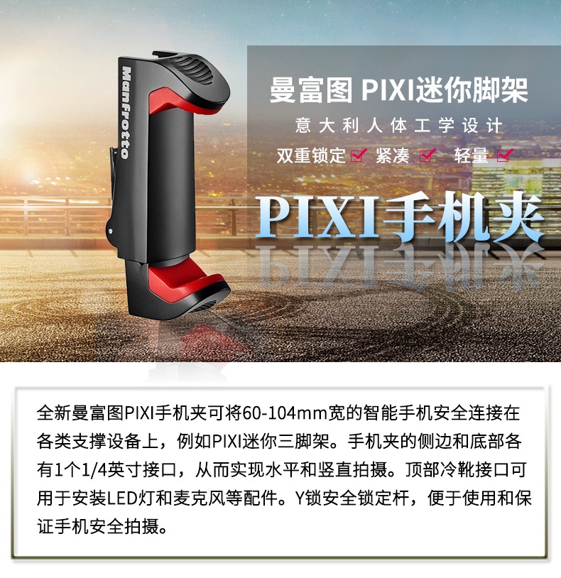 Manfrotto MT PIXI EVO SLR Mirrorless Camera Mini Portable Desktop Tripod Anchor Live Selfie Stand VLOG Douyin Osmo Black + Second Generation Original Mobile Phone Clip + Extension Arm