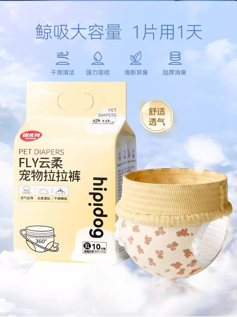 Hippie dog (hipidog) pet pull-up pants for male dogs and female dogs, aunt diapers, menstrual pants, deodorant absorbent diaper pads for dogs, female dog pull-up pants/XL 10 pieces, new customers trying it out, single package