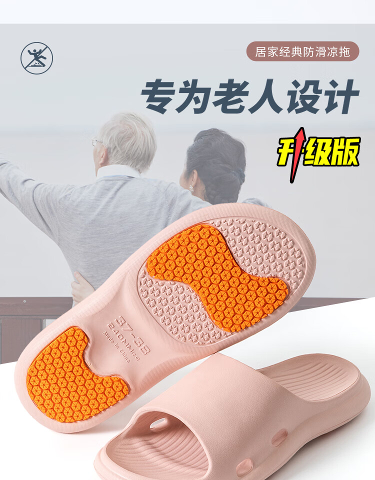 Jieliya elderly anti-slip slippers for women summer indoor home home elderly bathroom bath deodorant household slippers for women pink 37-38 (standard code)
