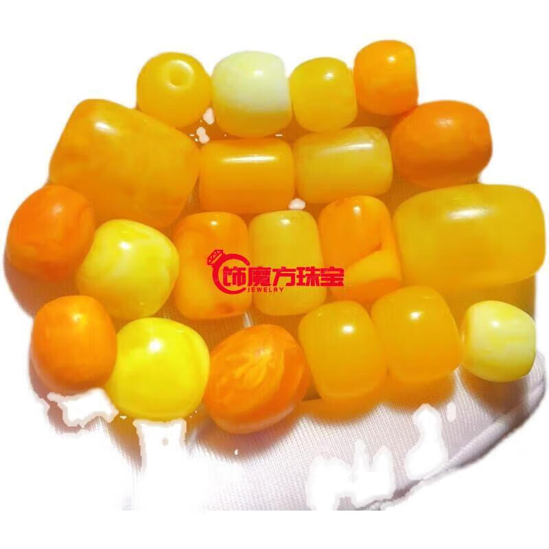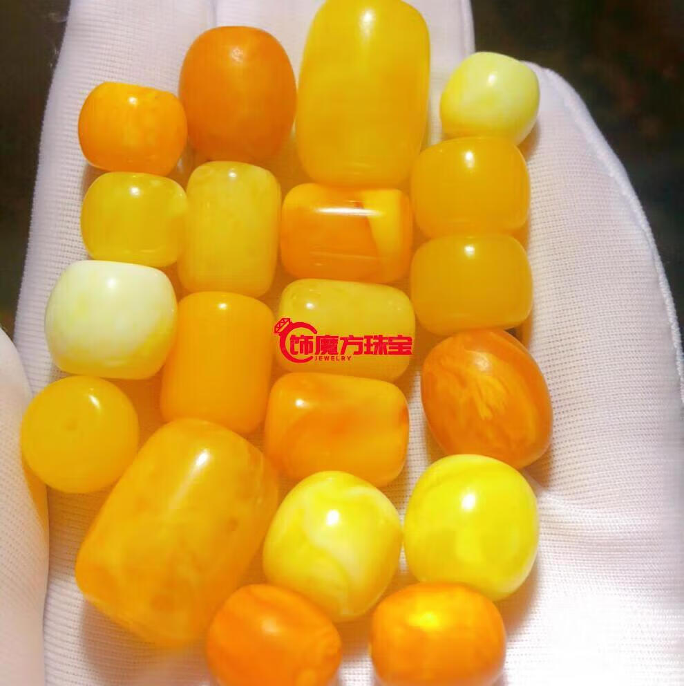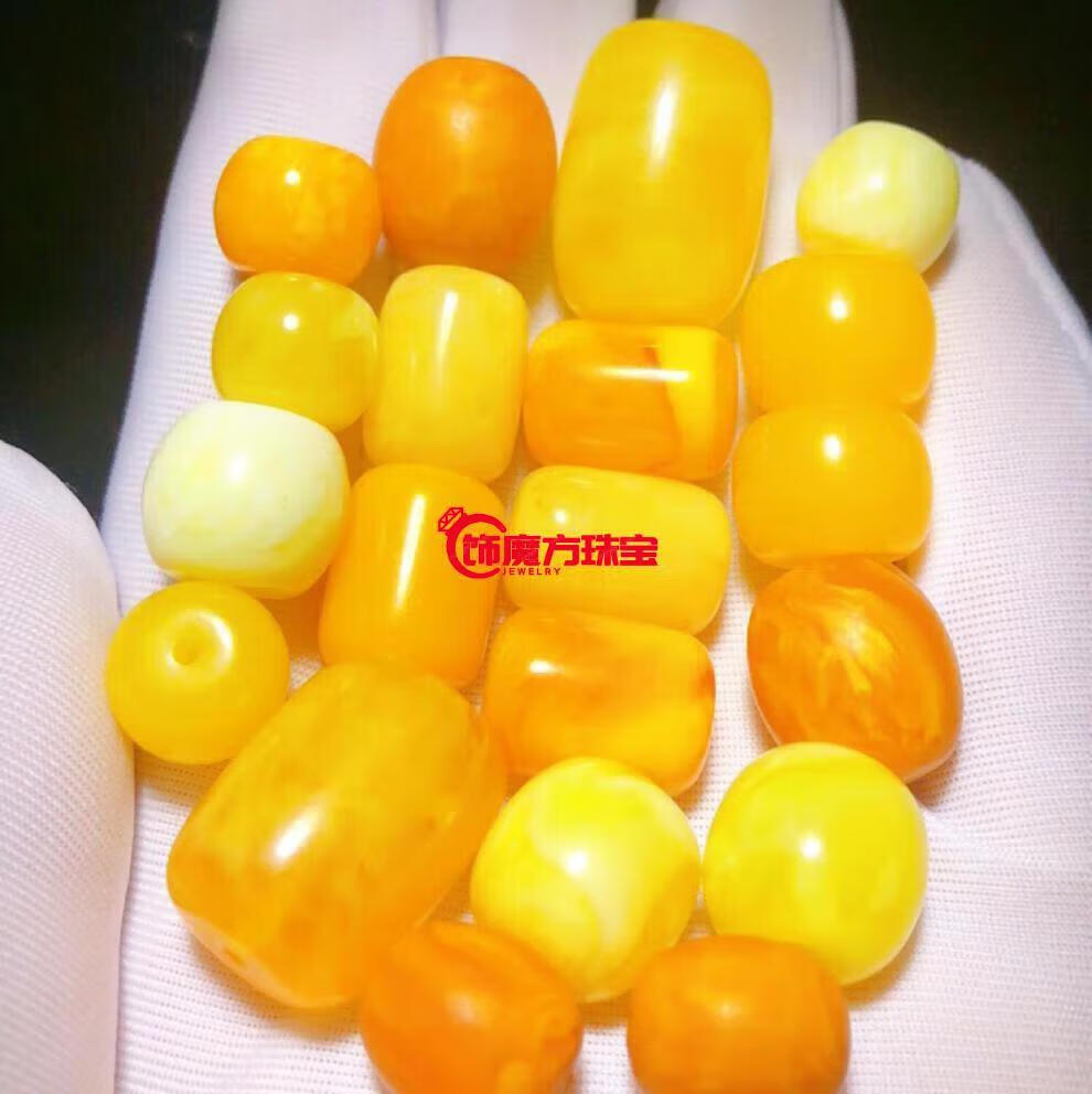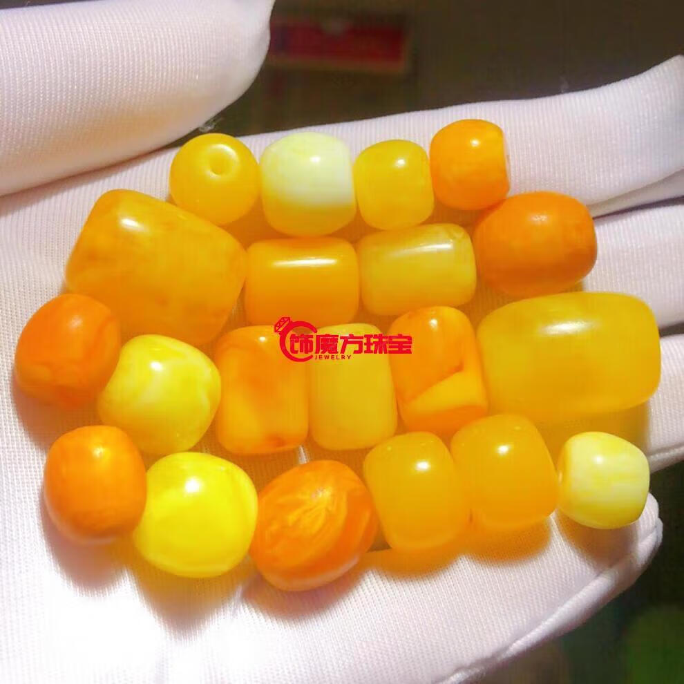 Guanpu Pavilion Fat Dong Lai's same style beeswax bucket beads single natural chicken fat yellow and white nectar old wax old type beads pier button button article old beeswax 10x8mm old type beads one