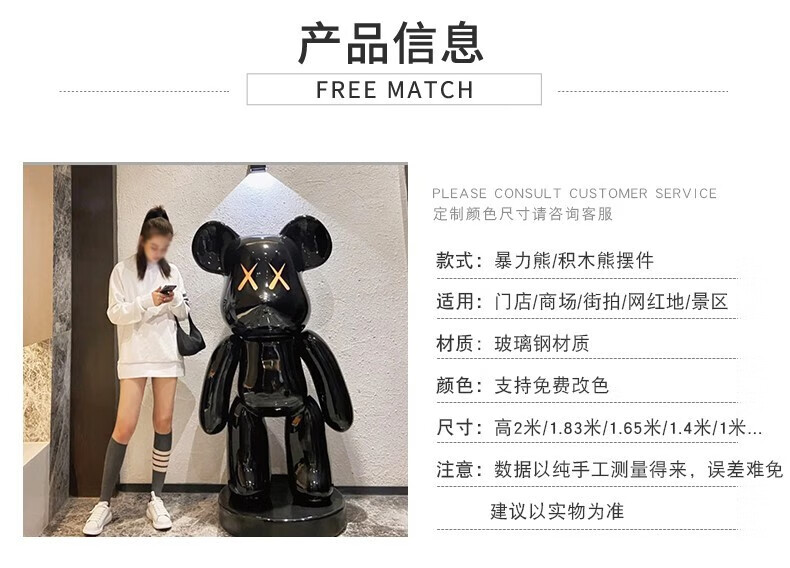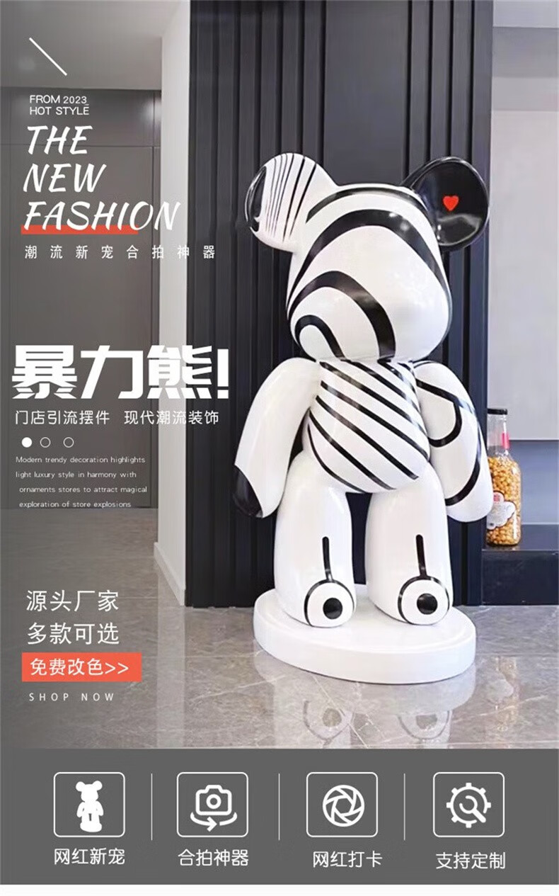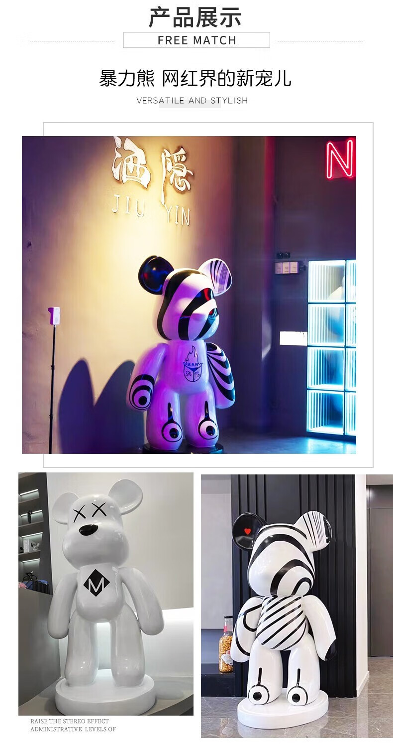 Juyanghui internet celebrity violent bear large ornament living room floor-standing piggy bank large cartoon doll shop hairdresser bar sculpture bubble color (door-to-door delivery) height 1.63m