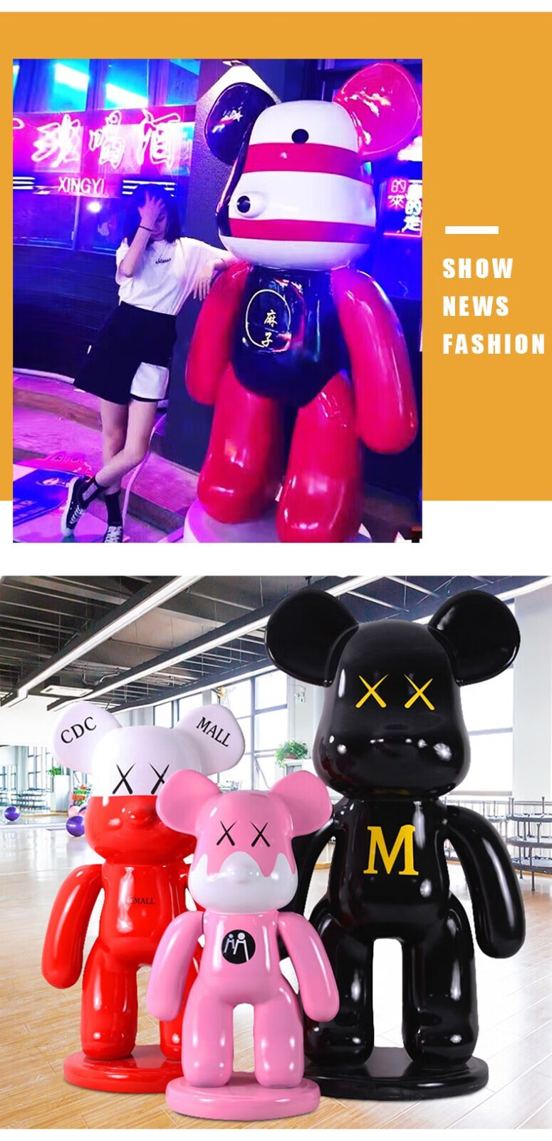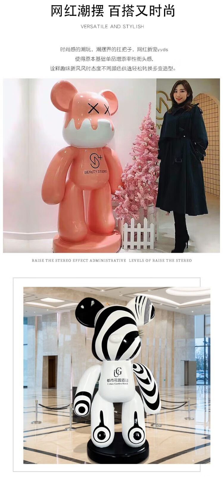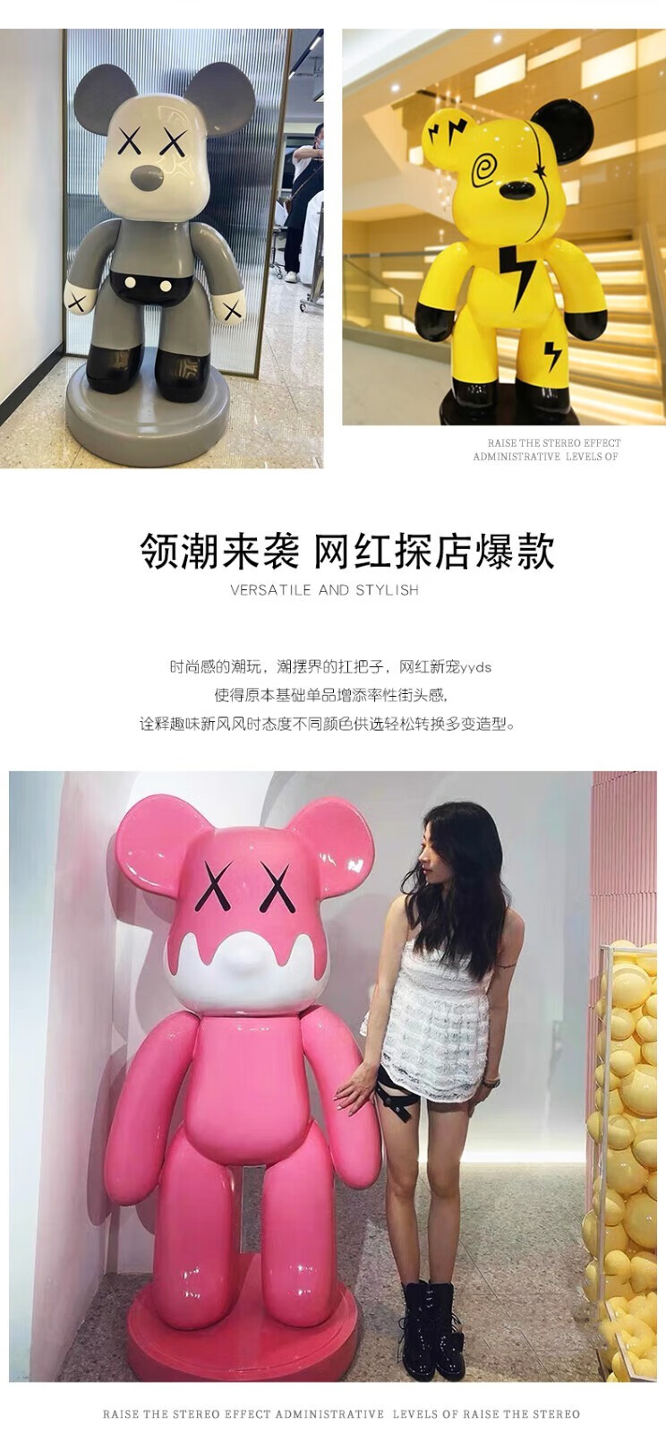Juyanghui internet celebrity violent bear large ornament living room floor-standing piggy bank large cartoon doll shop hairdresser bar sculpture bubble color (door-to-door delivery) height 1.63m