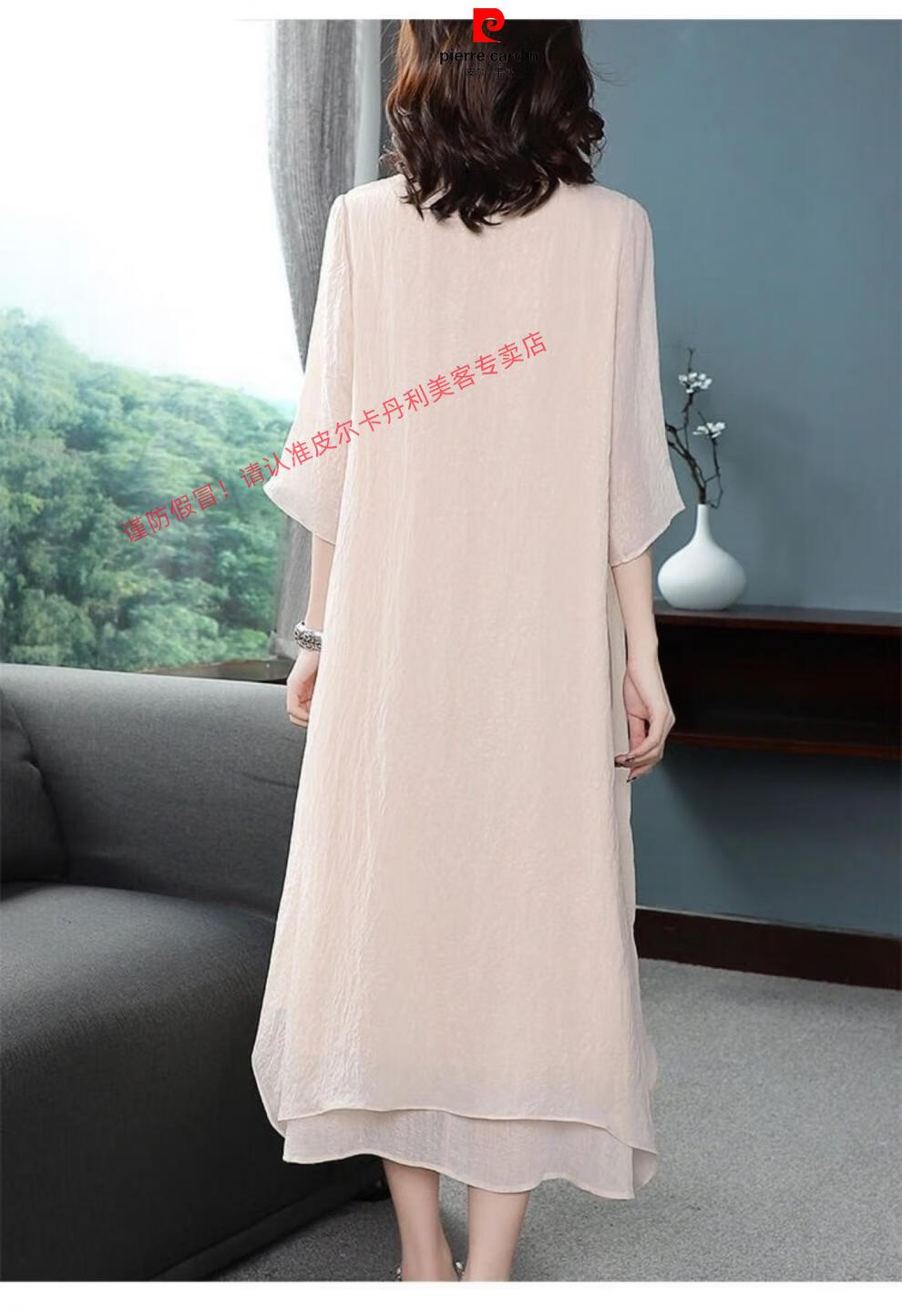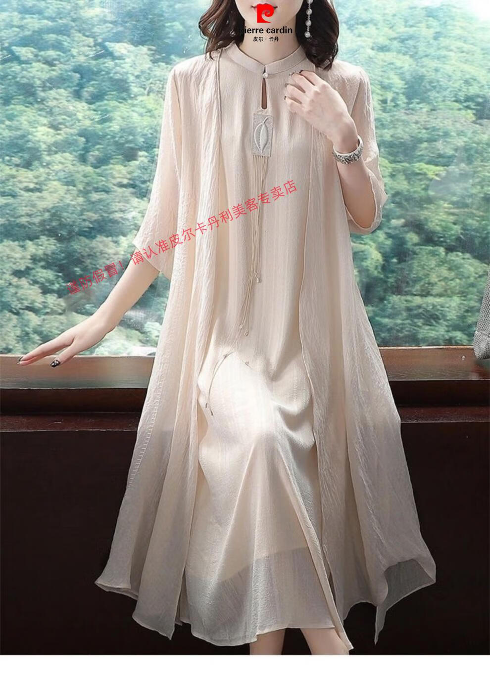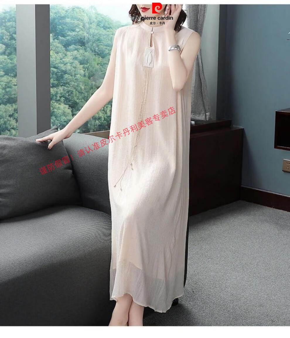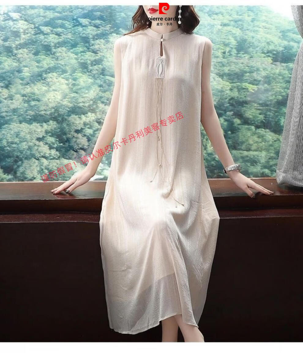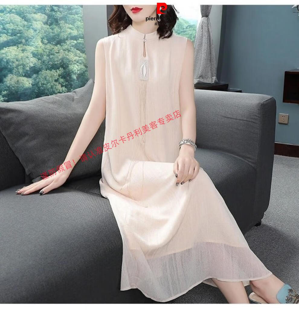 Pierre Cardin improved silk cheongsam for women summer new style fashionable Hanfu long skirt Chinese style retro mulberry silk dress apricot suit 2XL recommended 130-145Jin Jin equals 0.5 kg