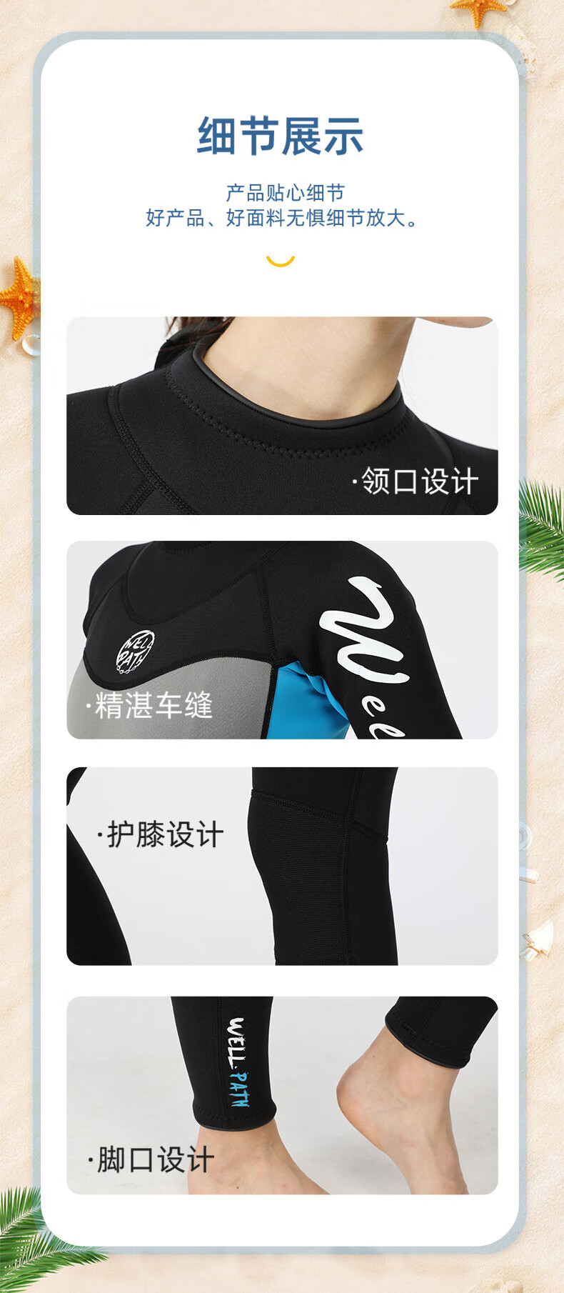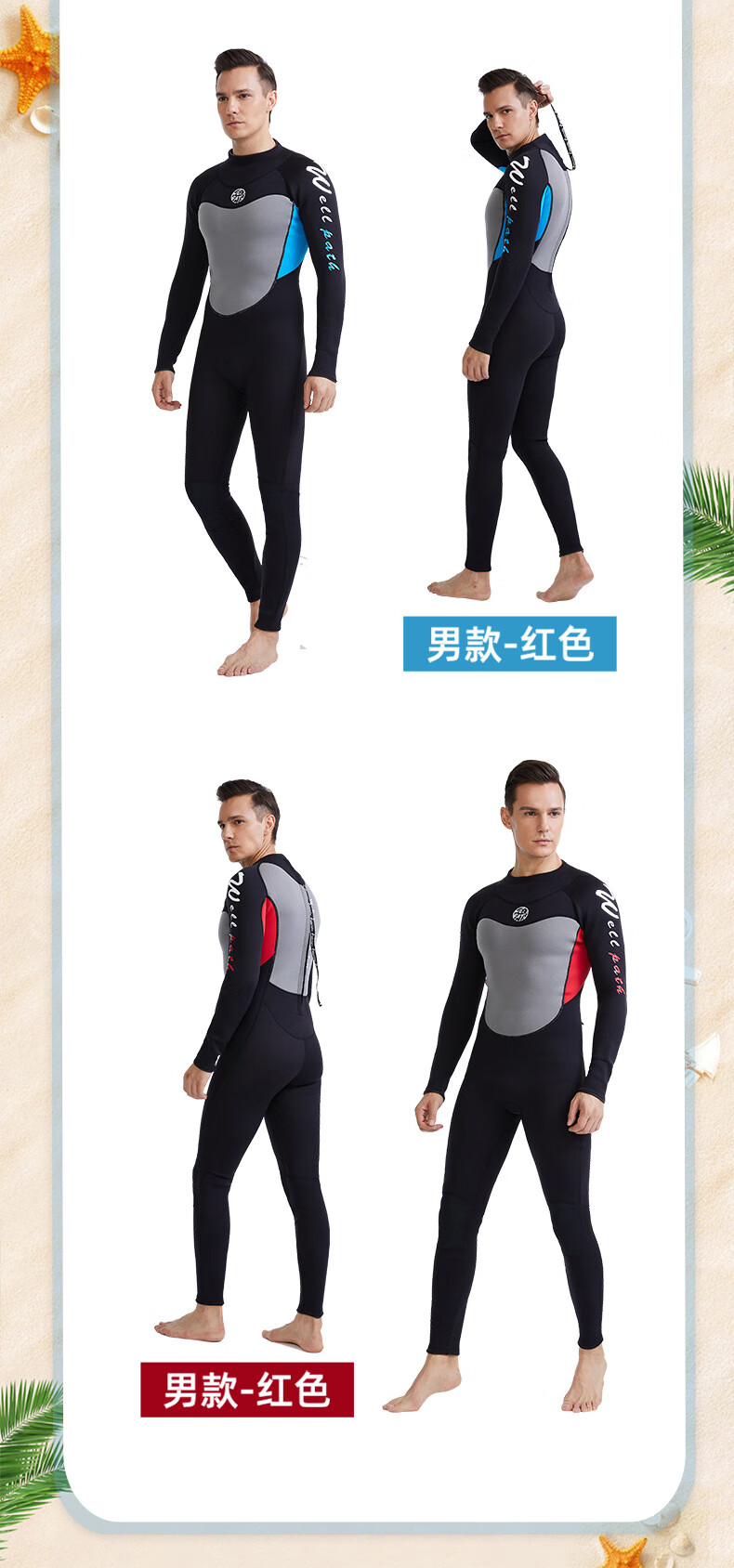 WELL PATH Vipas 3mm thickened cold-proof one-piece wetsuit swimsuit for women and men long-sleeved warm winter swimming wetsuit side blue-men's 2XL