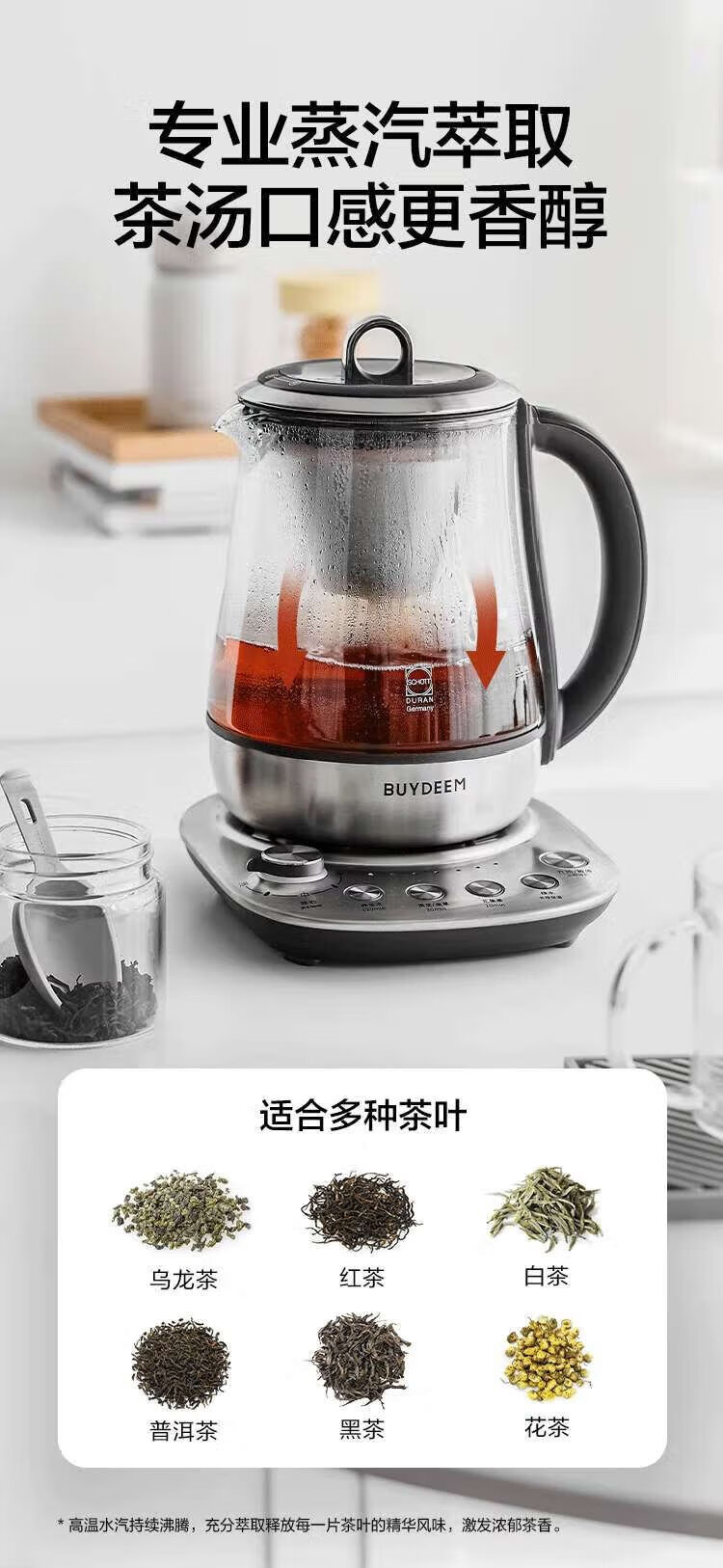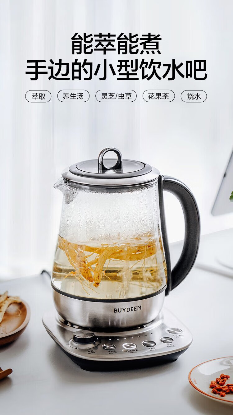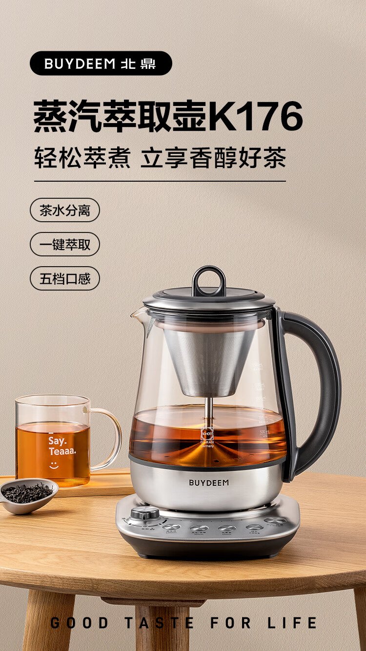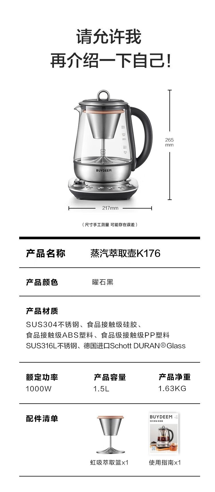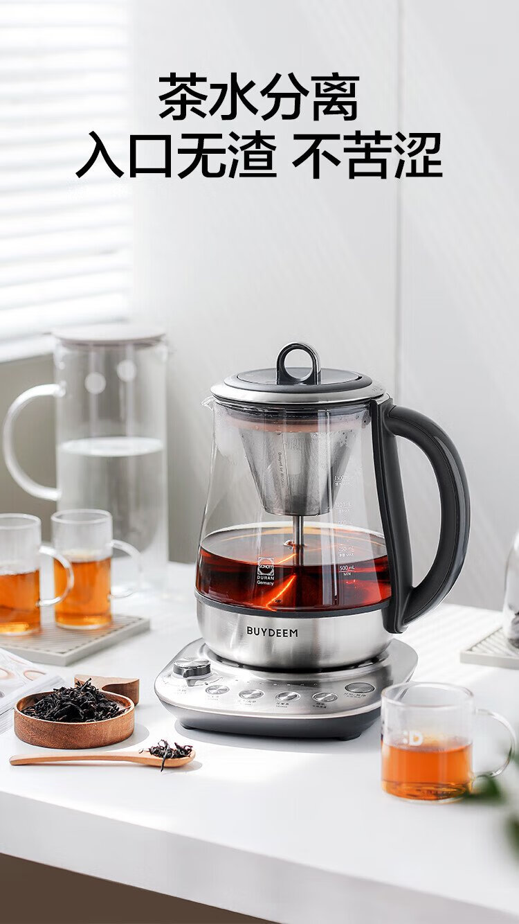 Buydeem health pot, spray-type tea and coffee extraction pot, multifunctional tea boiler, tea pot, intelligent decoction Chinese medicine pot, Ganoderma lucidum and cordyceps medicinal pot, electric kettle, holiday gift, tea basket set K176+tea basket 1.5L