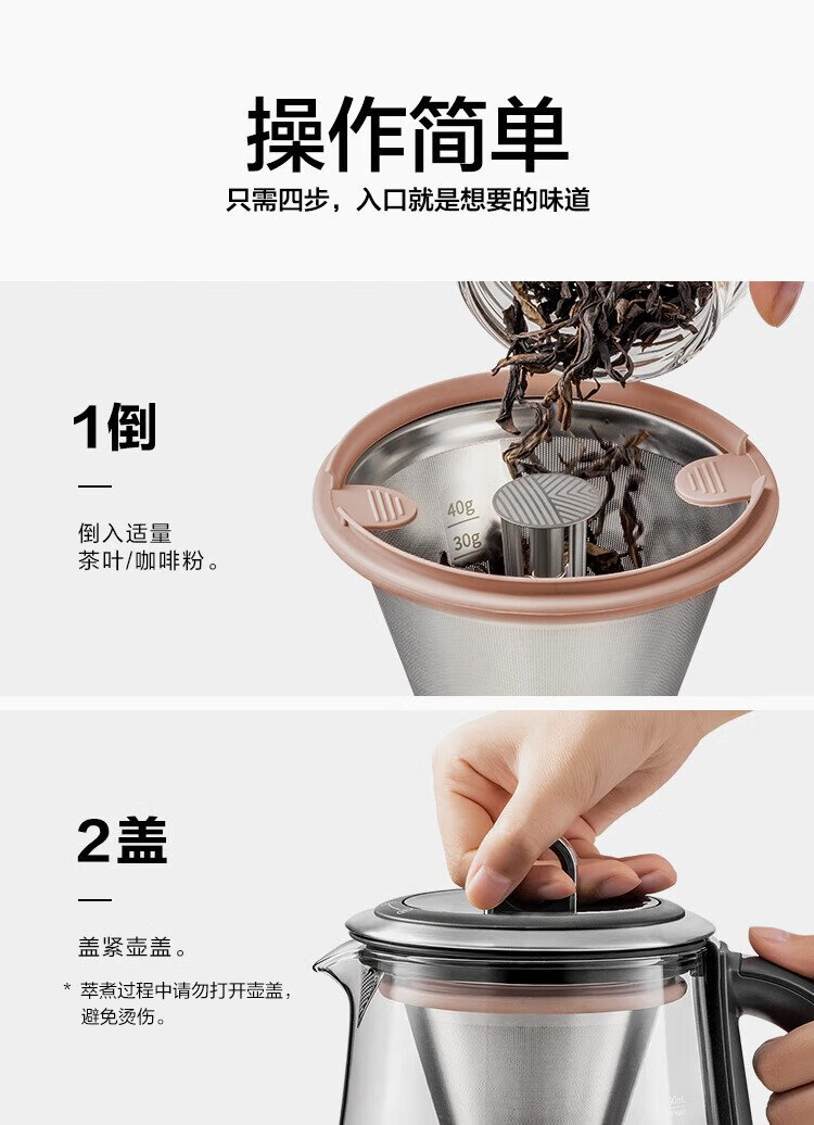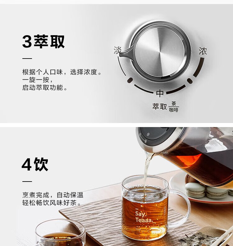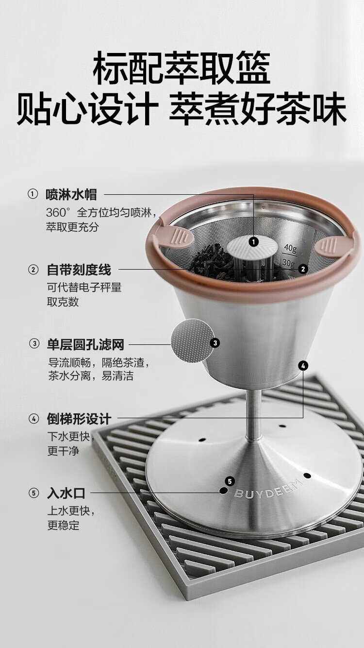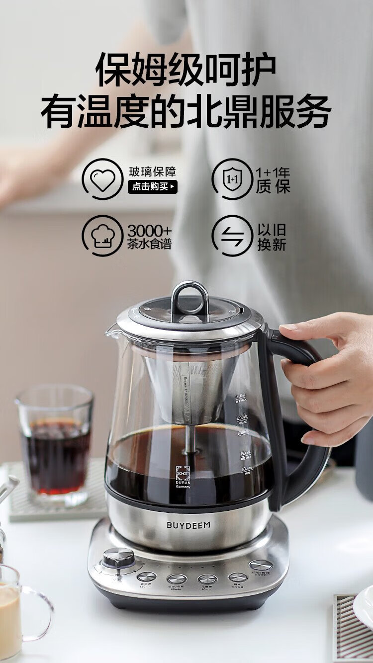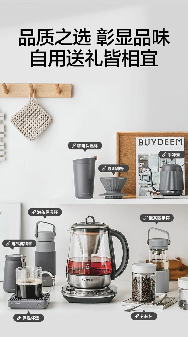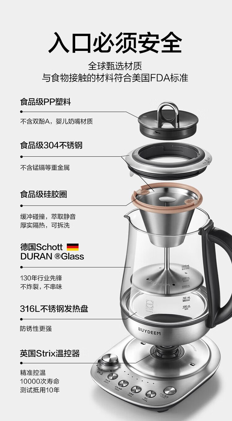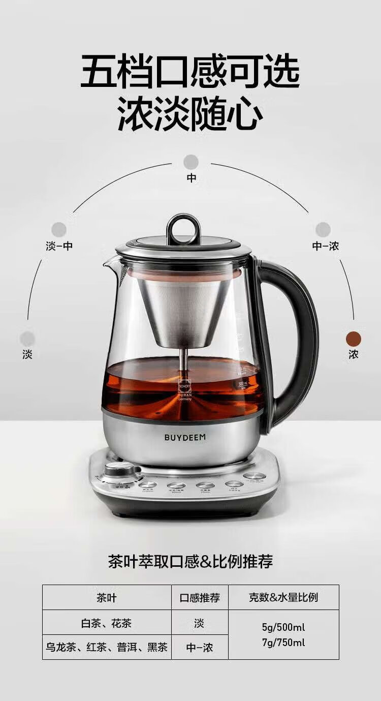 Buydeem health pot, spray-type tea and coffee extraction pot, multifunctional tea boiler, tea pot, intelligent decoction Chinese medicine pot, Ganoderma lucidum and cordyceps medicinal pot, electric kettle, holiday gift, tea basket set K176+tea basket 1.5L