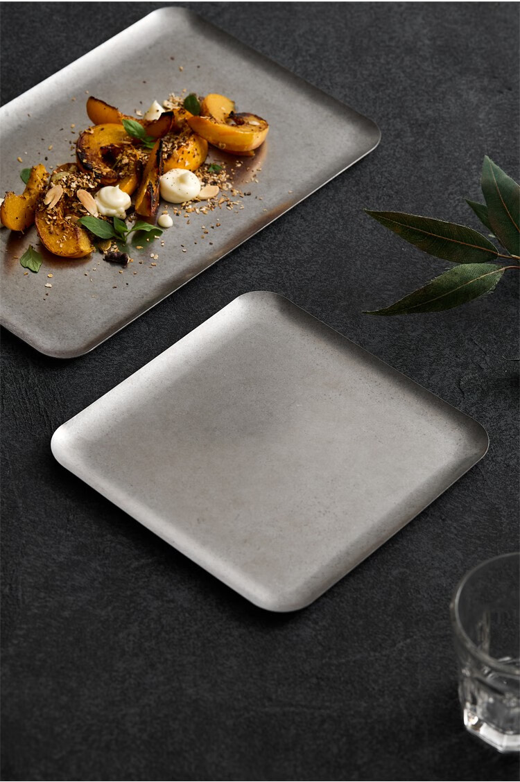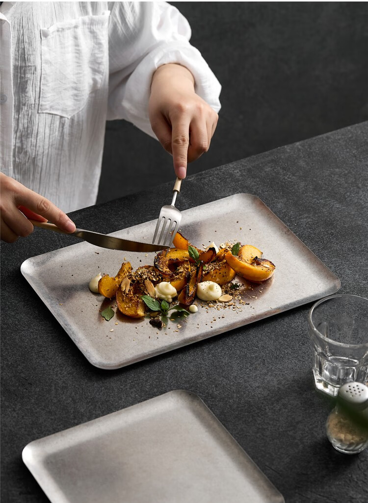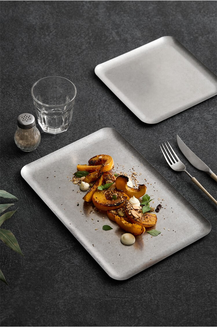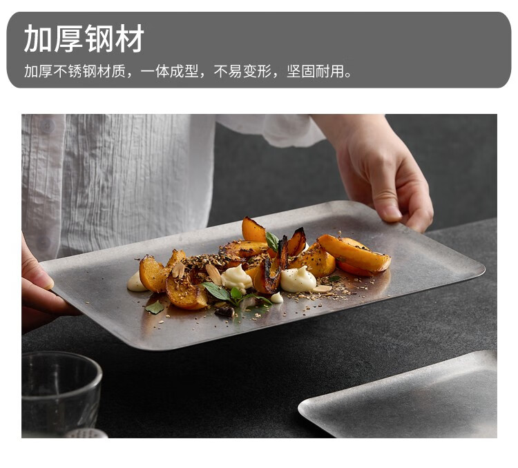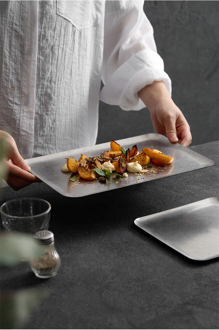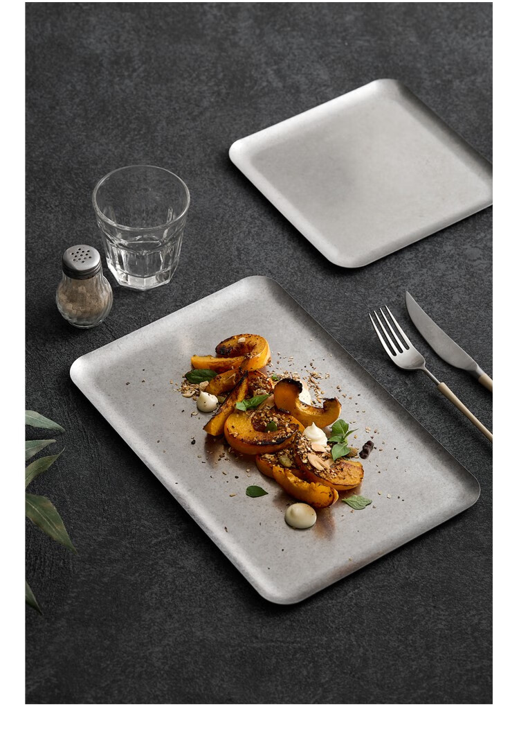 ZEROKY CLAN stainless steel rectangular plate Western food plate commercial dish plate cake bread fried chicken plate dinner plate fast food dry vegetable tray 12-inch stainless steel rectangular tray