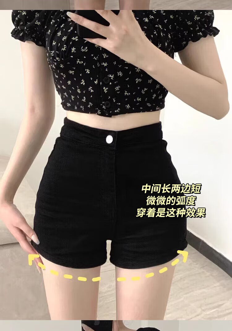 Miao Yijia black shorts for women in autumn and winter high waist denim shorts slimming girls hot pants with boots showing long legs hot girl shorts denim shorts black L