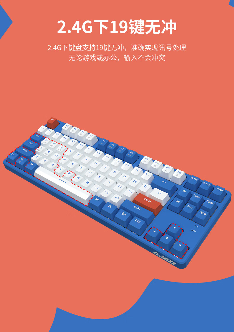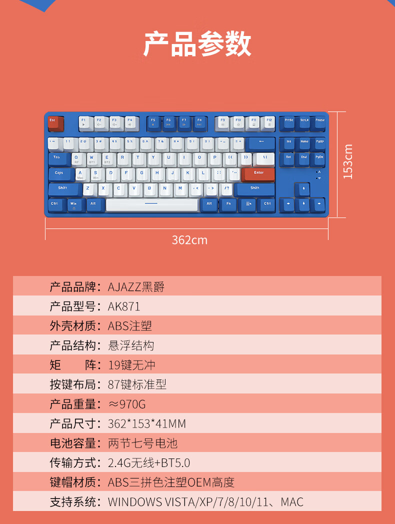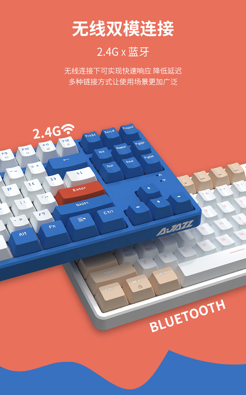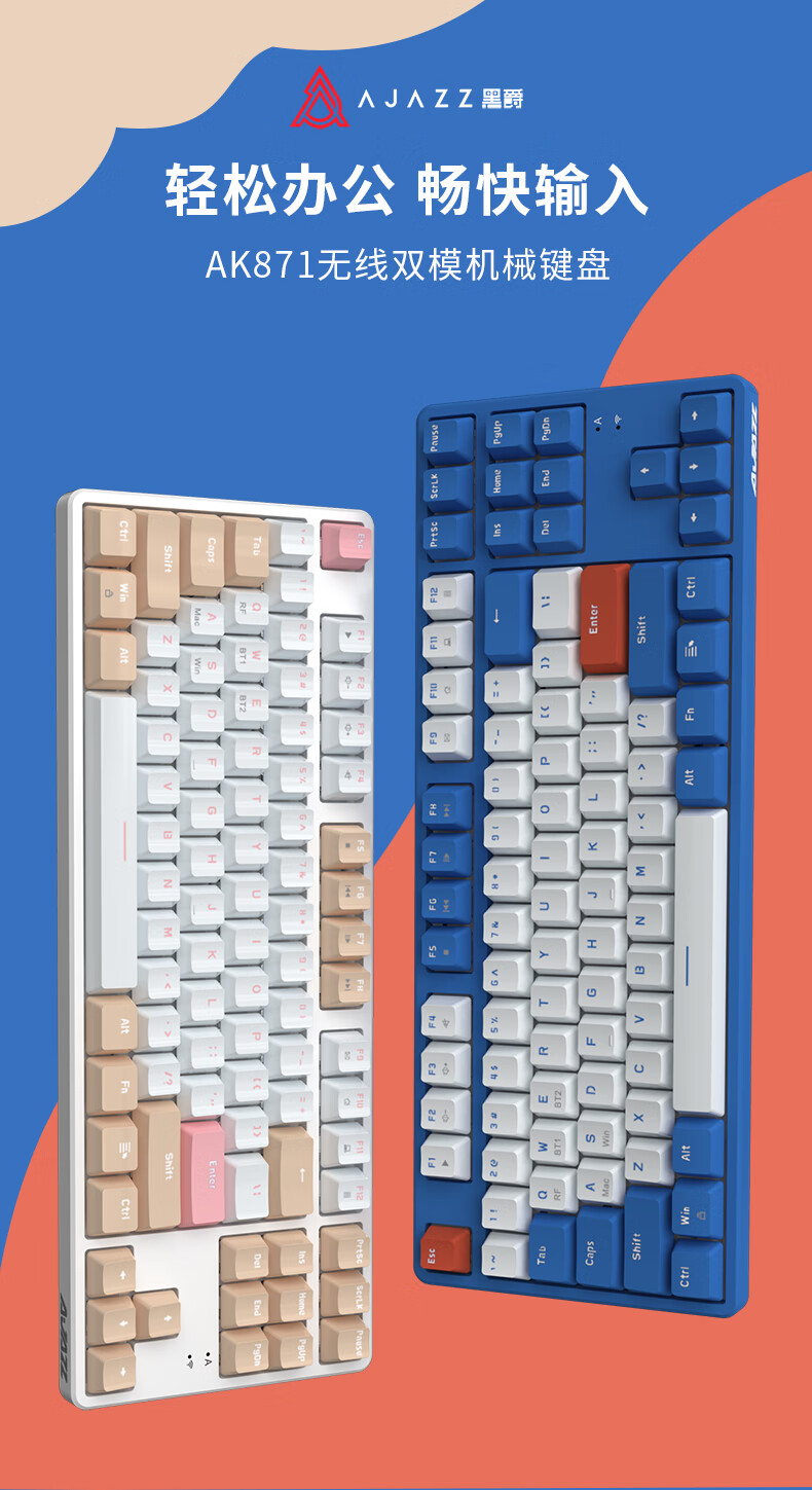 AJAZZ AK871 wireless dual-mode mechanical keyboard 2.4G/Bluetooth full-key hot-swappable office keyboard magnetic upper cover three-color keycaps white tea Qinghuan green axis 2.4G wireless Bluetooth dual-mode
