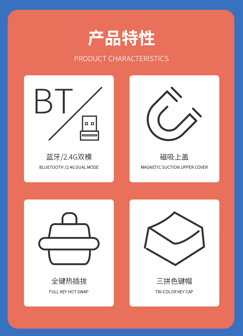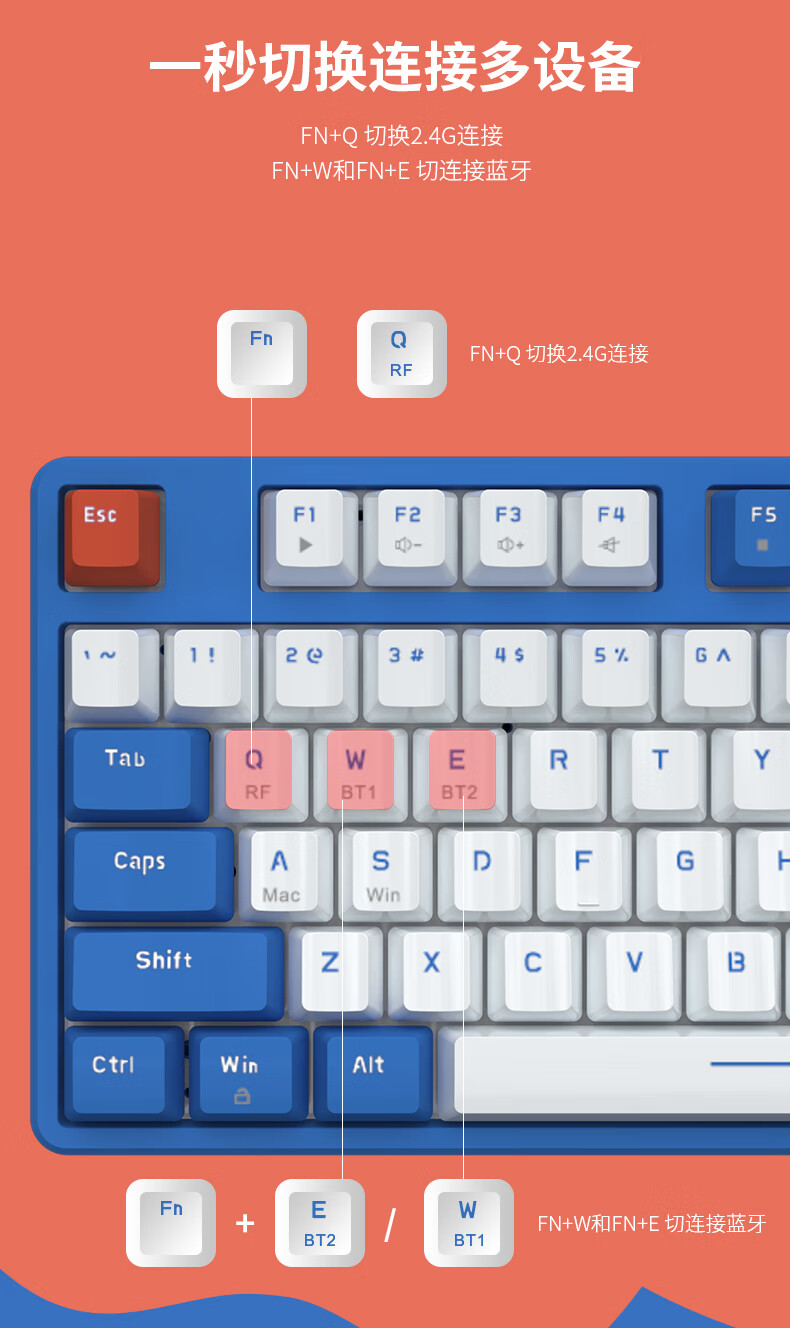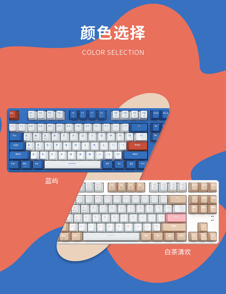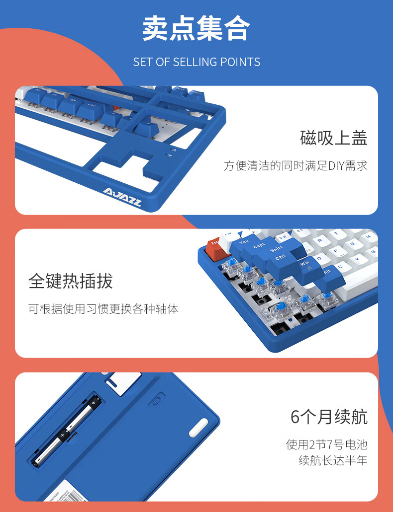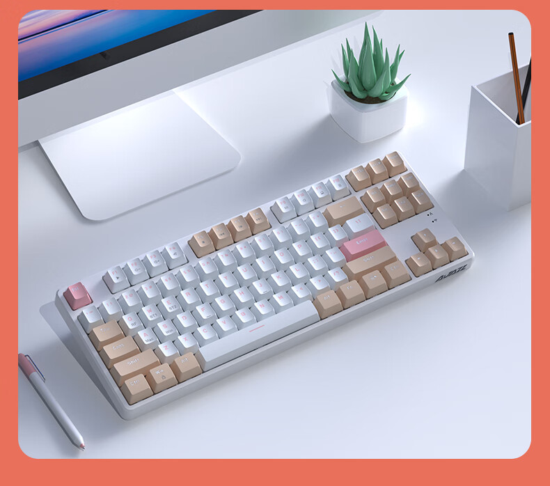AJAZZ AK871 wireless dual-mode mechanical keyboard 2.4G/Bluetooth full-key hot-swappable office keyboard magnetic upper cover three-color keycaps white tea Qinghuan green axis 2.4G wireless Bluetooth dual-mode