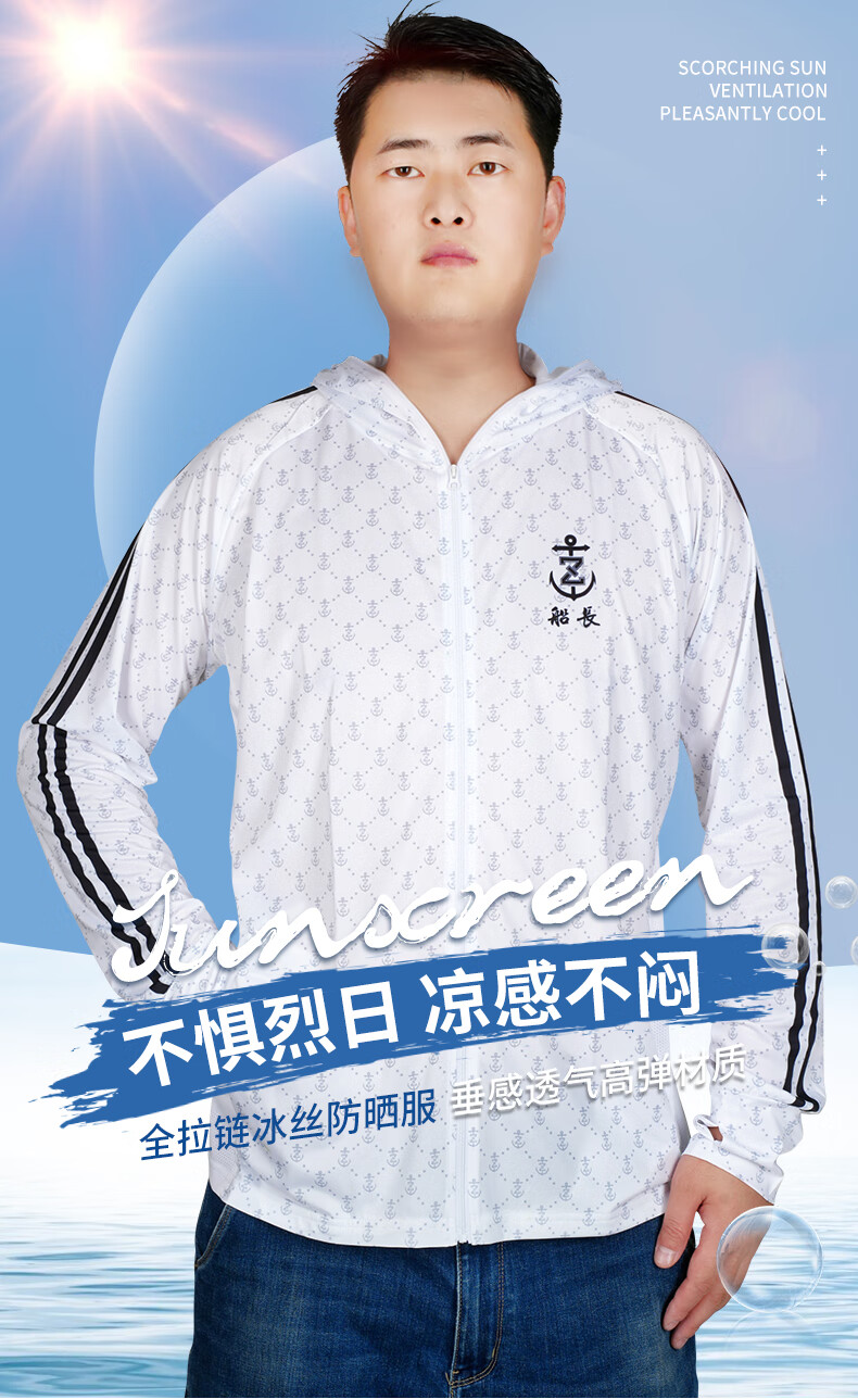Captain's Floating Captain's Sun Protection Clothing Summer Fishing Hooded Quick-drying Anti-mosquito Long Sleeve Thin Ice Silk Breathable Fishing Suit for Men and Women 24 Types of Sun Protection Clothing Tops White L