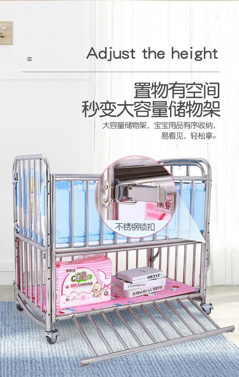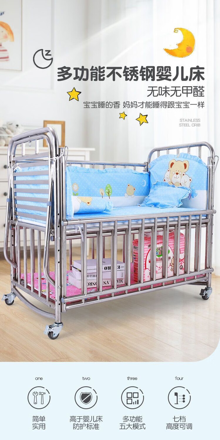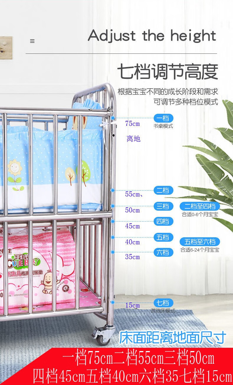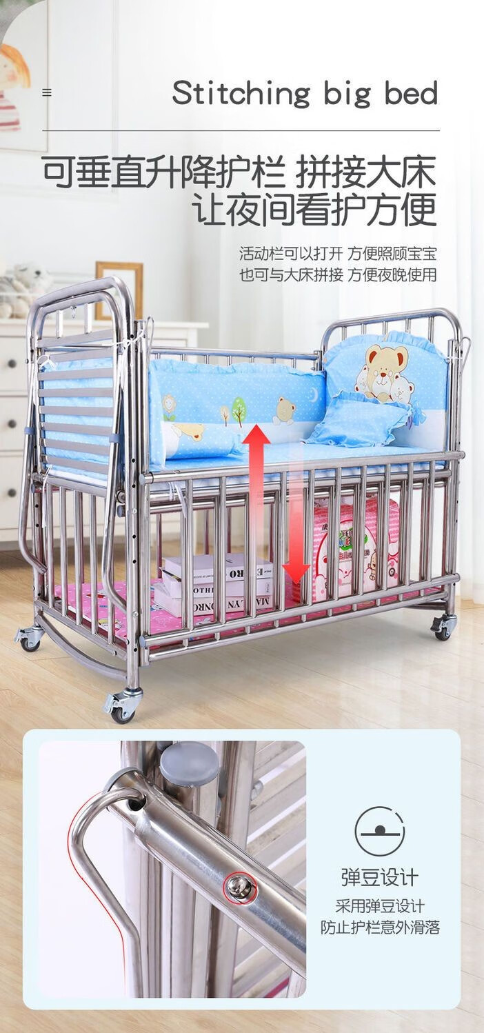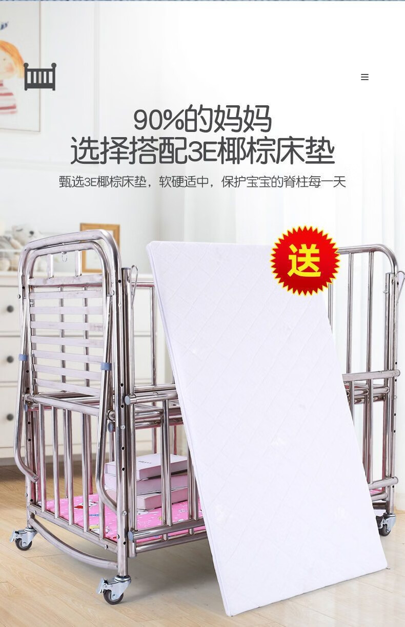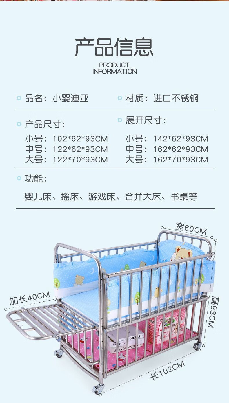 Xiaoyingdia stainless steel crib spliced large bed baby bed bb bed cradle bed removable toddler home bed welfare small bed (100*60cm) + brown board