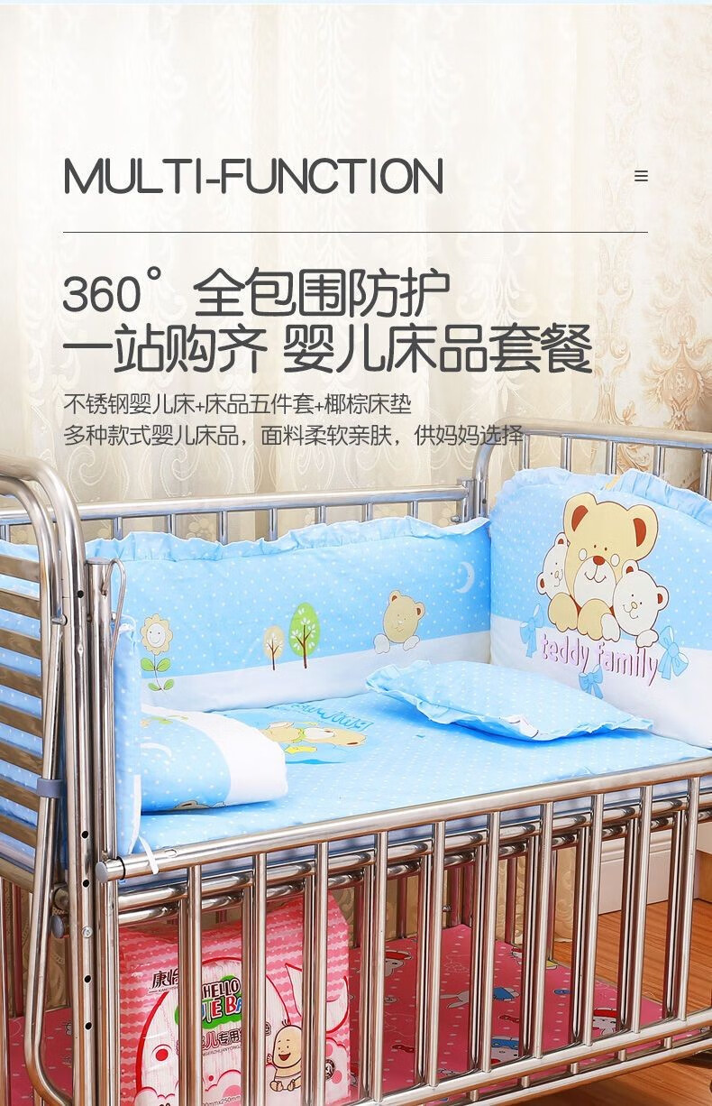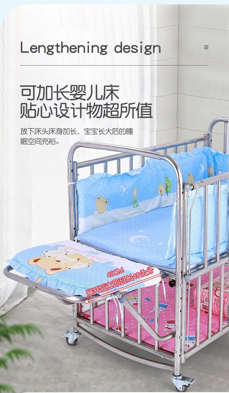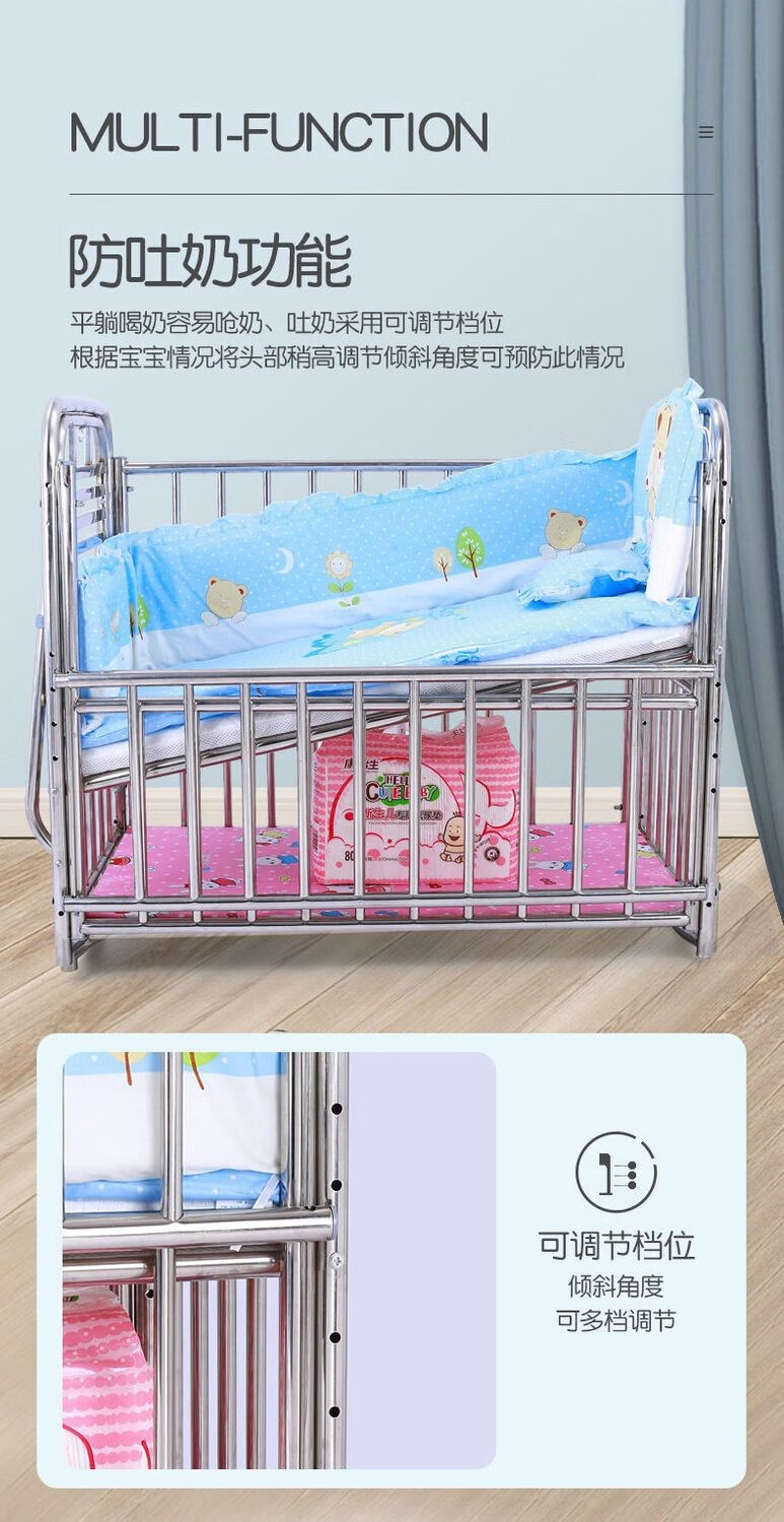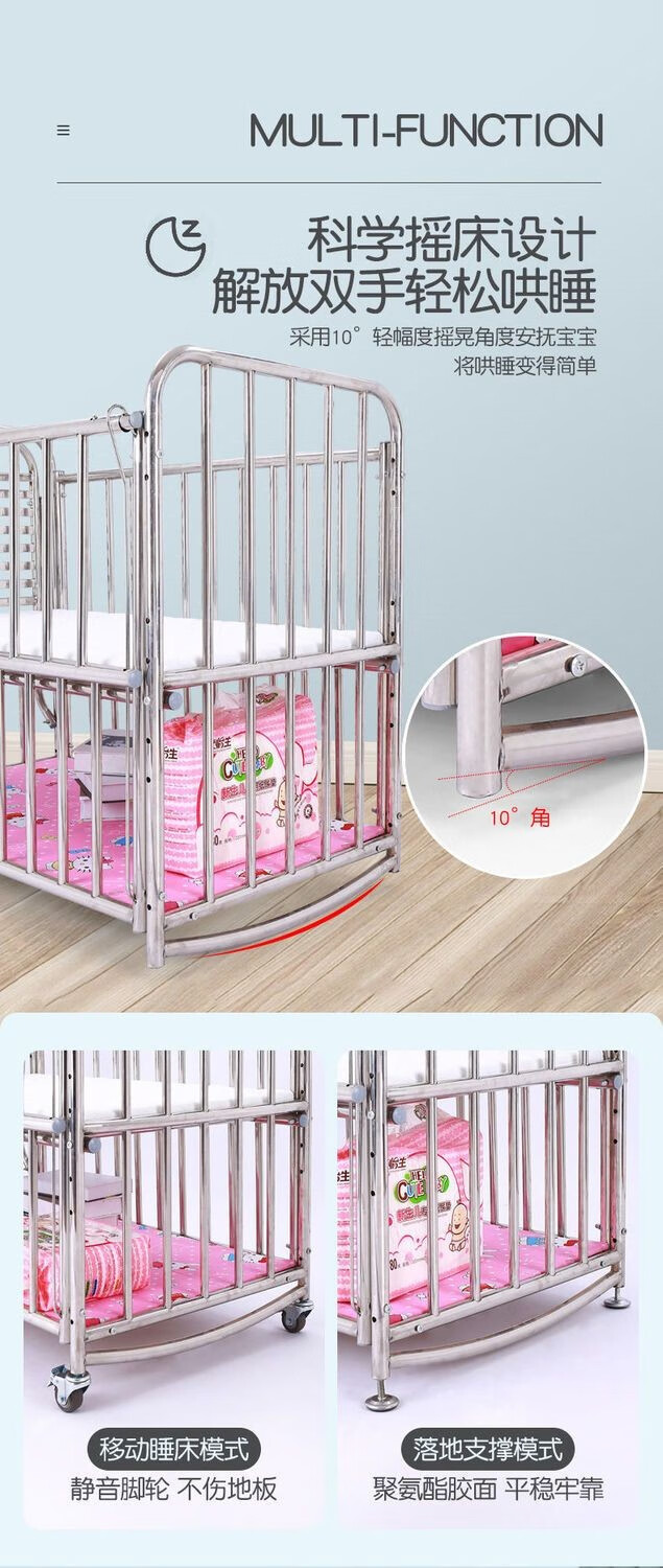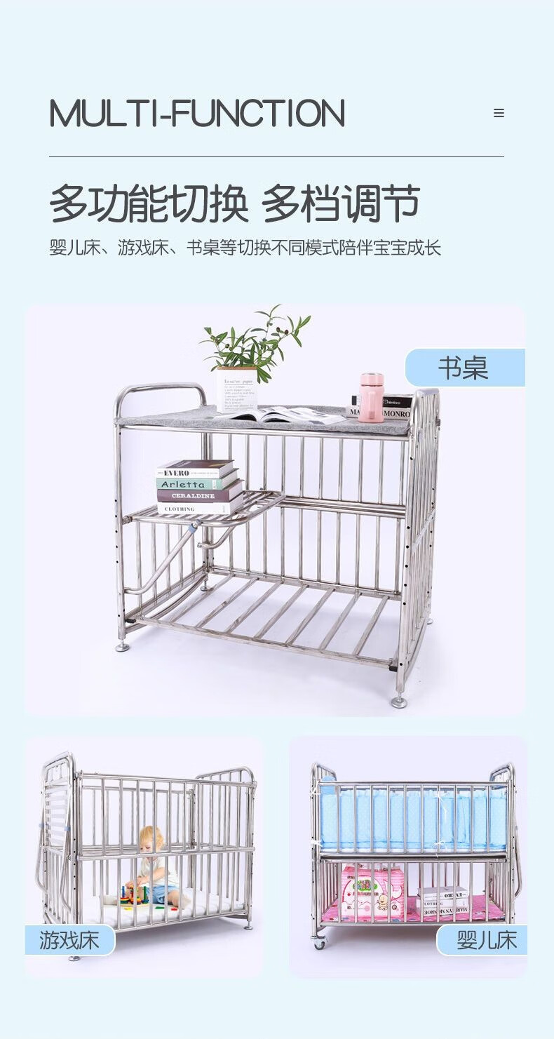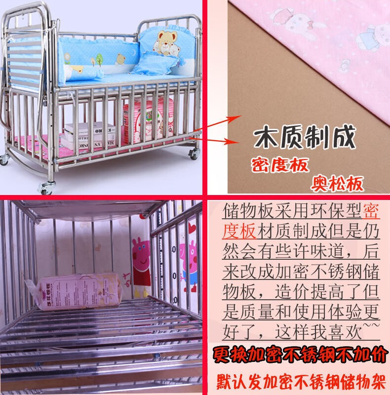 Xiaoyingdia stainless steel crib spliced large bed baby bed bb bed cradle bed removable toddler home bed welfare small bed (100*60cm) + brown board